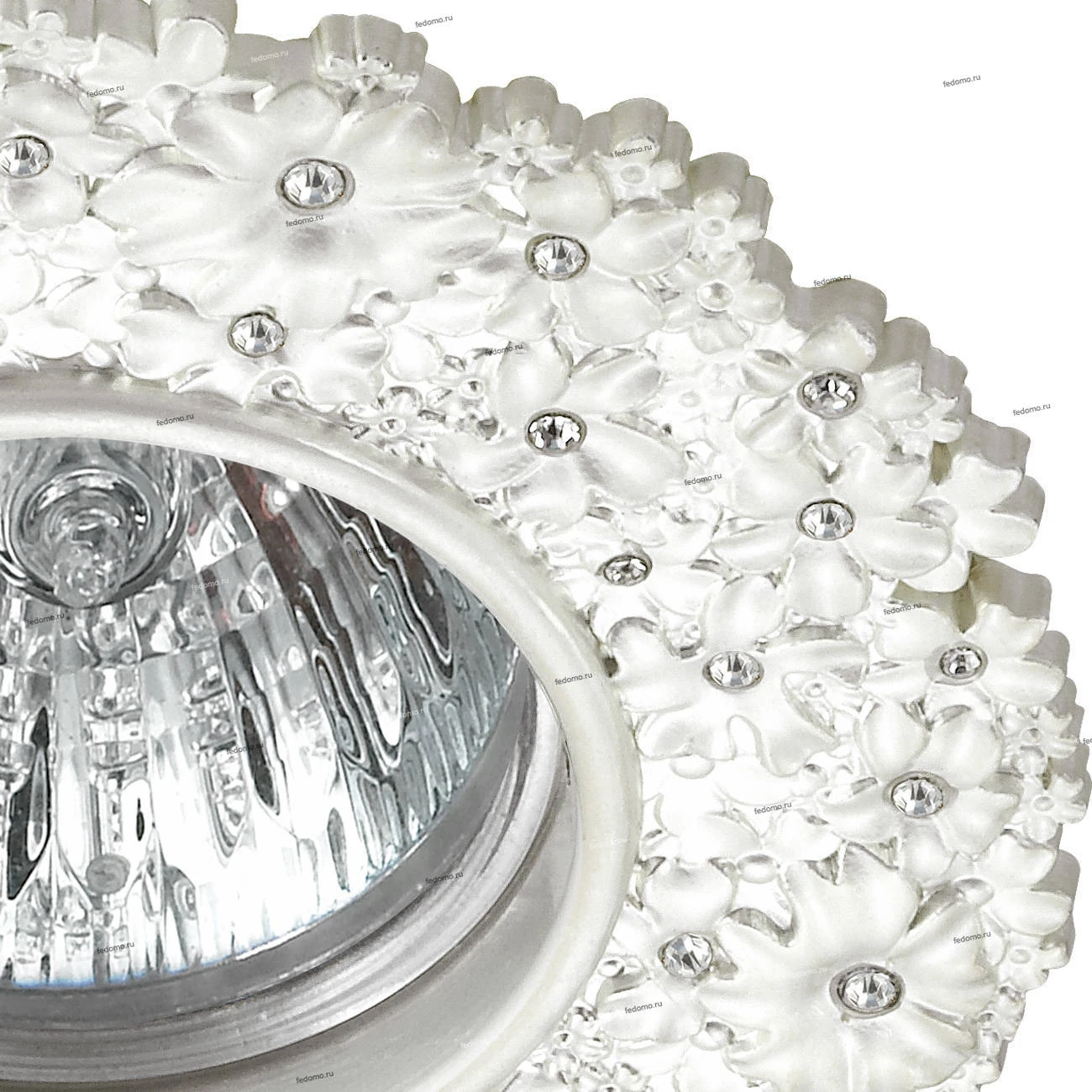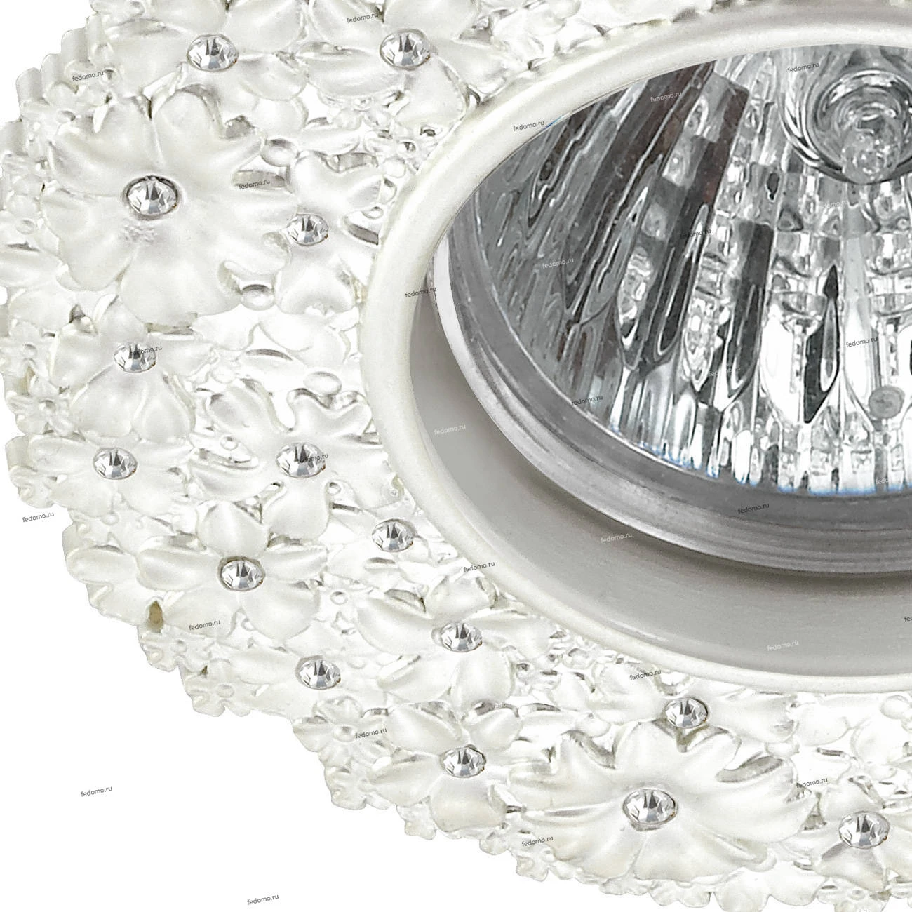 Материалы исполнения сплав цинка/хрусталь. Цвет арматуры белый. Плафон в цвете: белый. Классический встраиваемый светильник, выполнен в античном стиле. Он отличается простотой и ясностью композиции, а благодаря разнообразной цветовой гамме, он станут прекрасным украшением любого интерьера. Наименование 370335 NT17 267 перламутровый Встраиваемый декоративный светильник GX5.3 50W 12V CANDI.