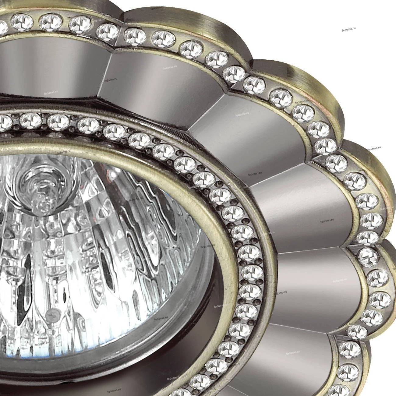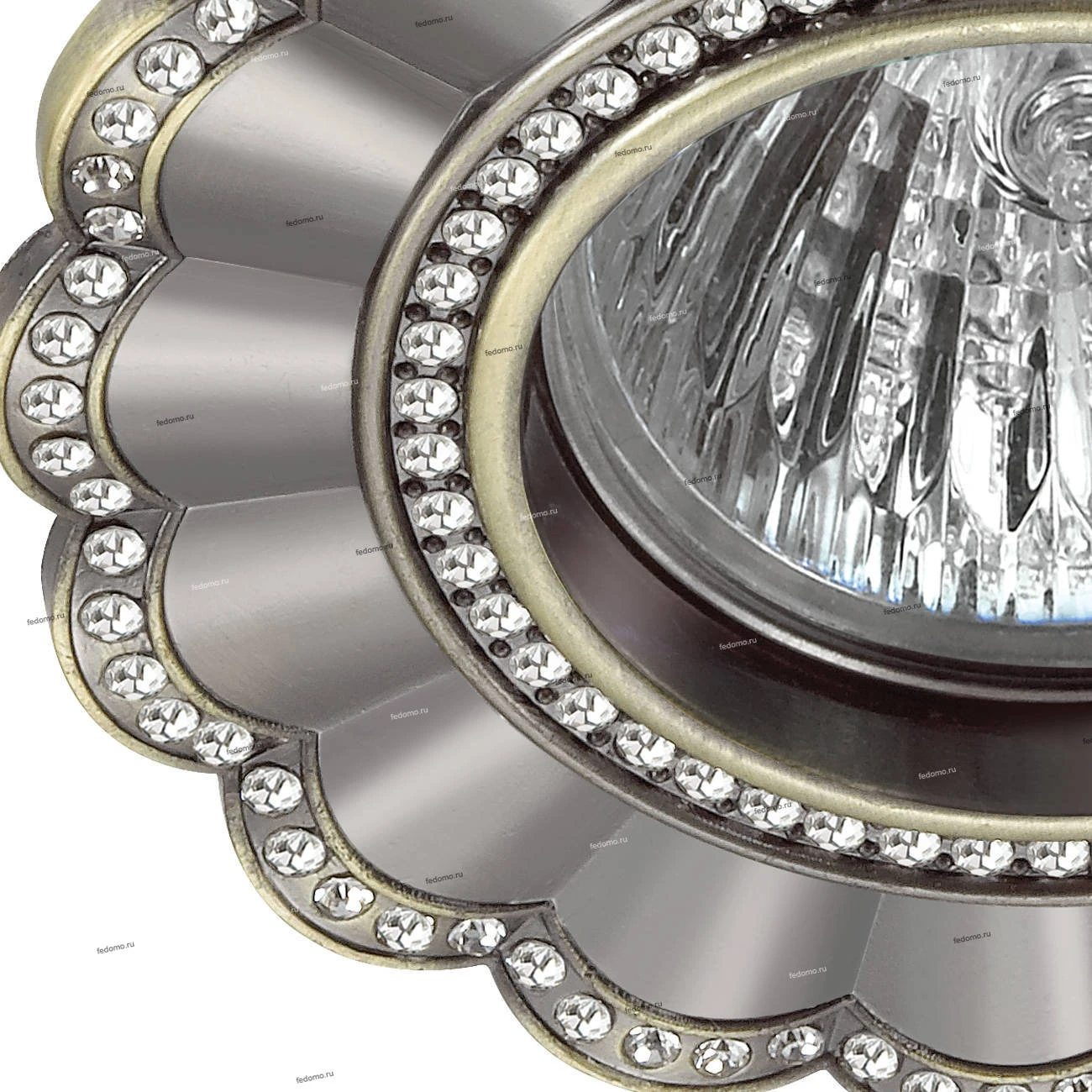 Материалы исполнения сплав цинка/хрусталь. Цвет арматуры бронза. Плафон в цвете: бронзовый. Классический встраиваемый светильник, выполнен в античном стиле. Он отличается простотой и ясностью композиции, а благодаря разнообразной цветовой гамме, он станут прекрасным украшением любого интерьера. Наименование 370346 NT17 269 бронза Встраиваемый декоративный светильник GX5.3 50W 12V CANDI.