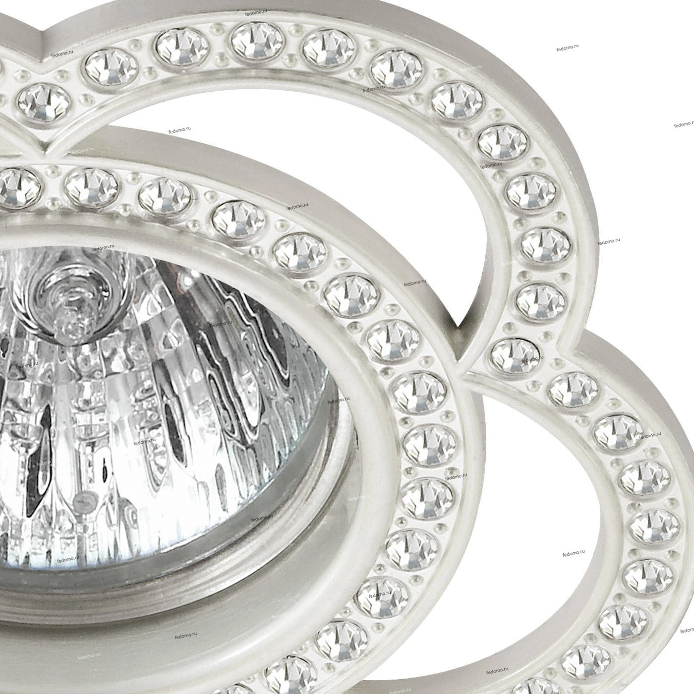 Материалы исполнения сплав цинка/хрусталь. Цвет арматуры белый. Плафон в цвете: белый. Классический встраиваемый светильник, выполнен в античном стиле. Он отличается простотой и ясностью композиции, а благодаря разнообразной цветовой гамме, он станут прекрасным украшением любого интерьера. Наименование 370350 NT17 264 перламутровый Встраиваемый декоративный светильник GX5.3 50W 12V CANDI.