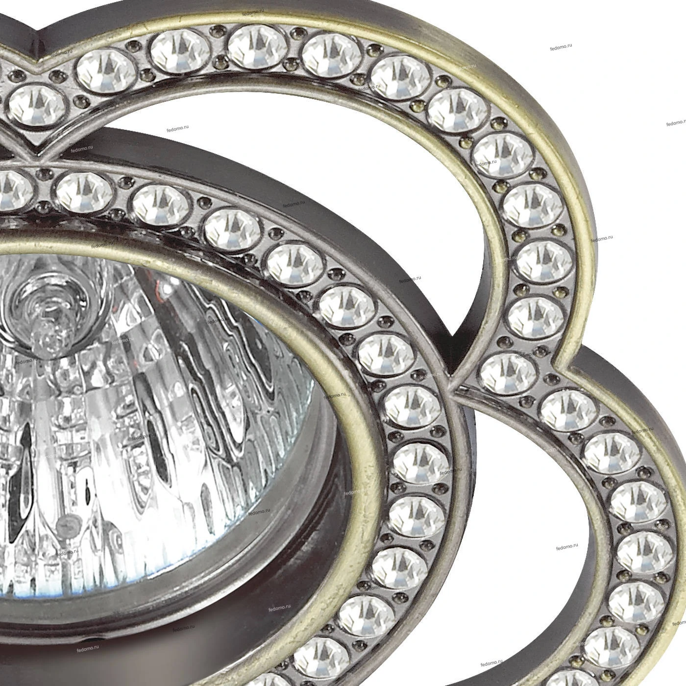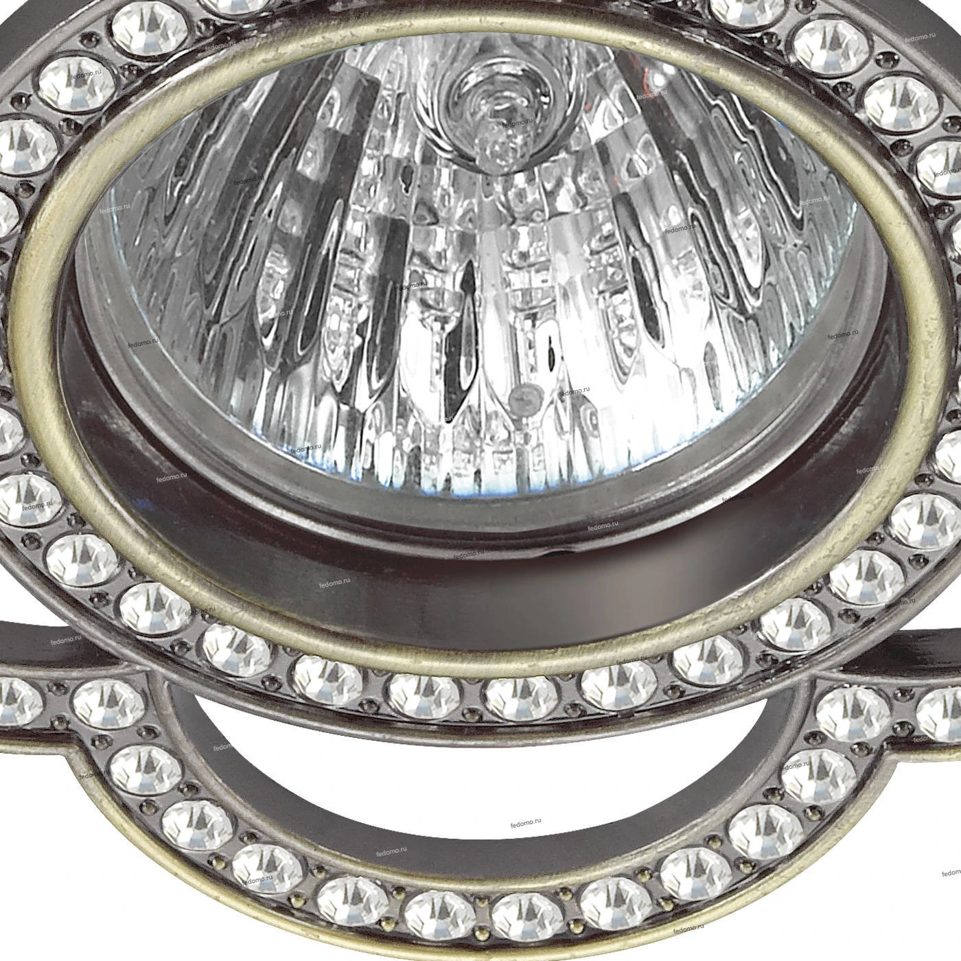 Материалы исполнения сплав цинка/хрусталь. Цвет арматуры бронза. Плафон в цвете: бронзовый. Классический встраиваемый светильник, выполнен в античном стиле. Он отличается простотой и ясностью композиции, а благодаря разнообразной цветовой гамме, он станут прекрасным украшением любого интерьера. Наименование 370351 NT17 264 бронза Встраиваемый декоративный светильник GX5.3 50W 12V CANDI.