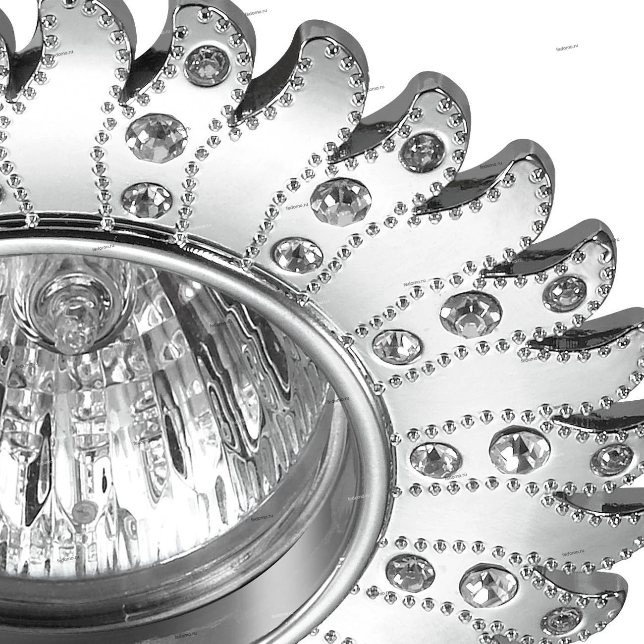 Материалы исполнения сплав цинка/хрусталь. Цвет арматуры хром. Плафон в цвете: хром. Классический встраиваемый светильник, выполнен в античном стиле. Он отличается простотой и ясностью композиции, а благодаря разнообразной цветовой гамме, он станут прекрасным украшением любого интерьера. Наименование 370353 NT17 265 хром Встраиваемый декоративный светильник GX5.3 50W 12V CANDI.
