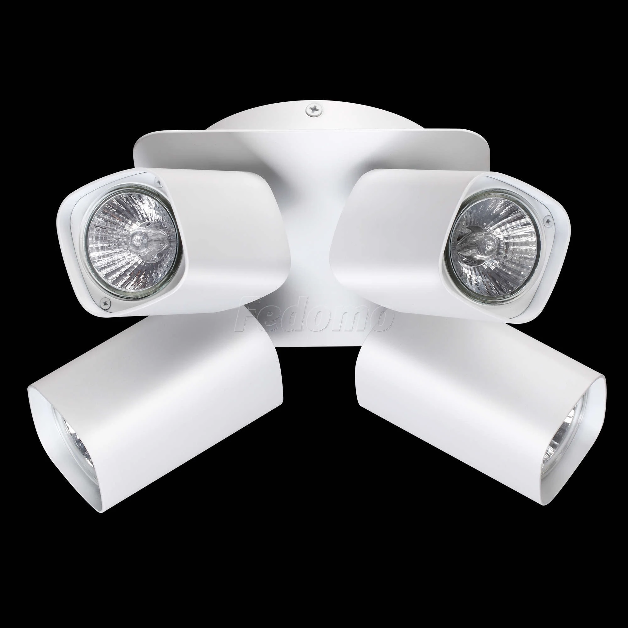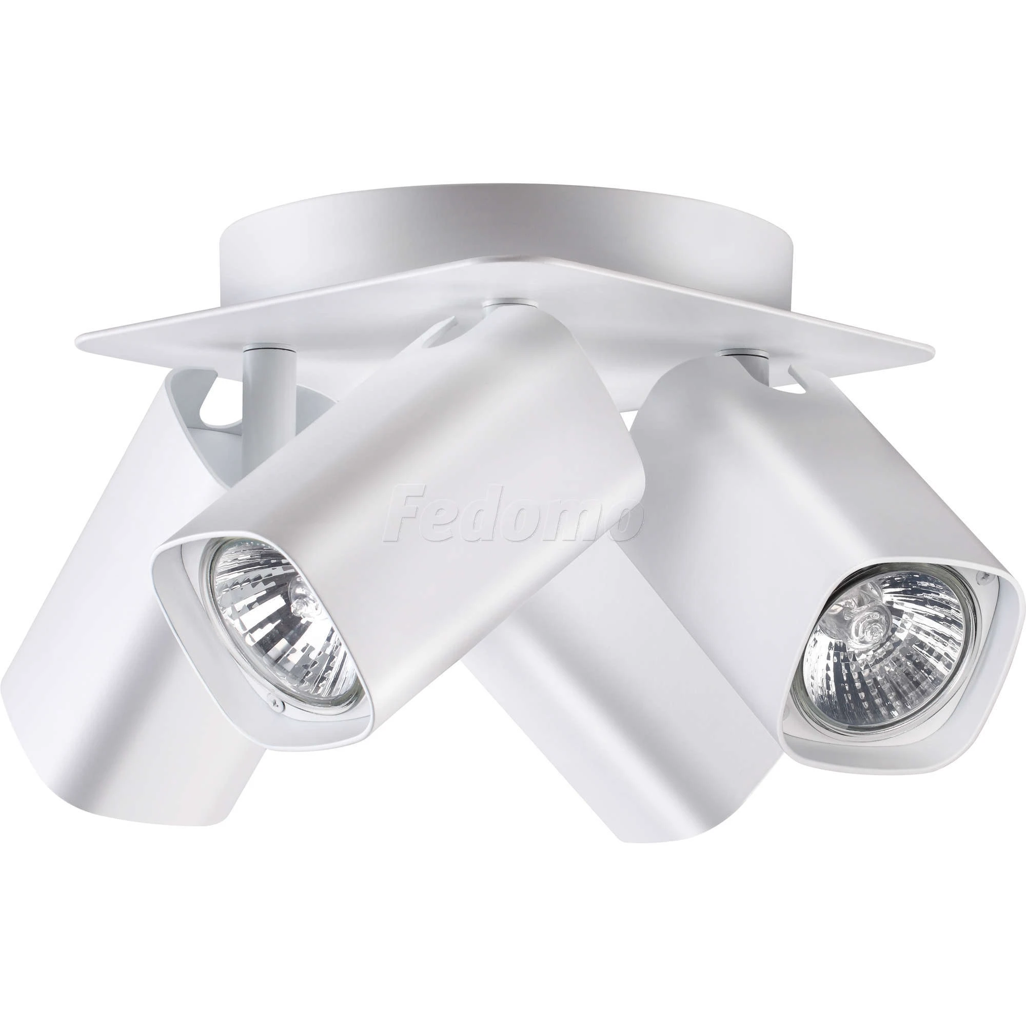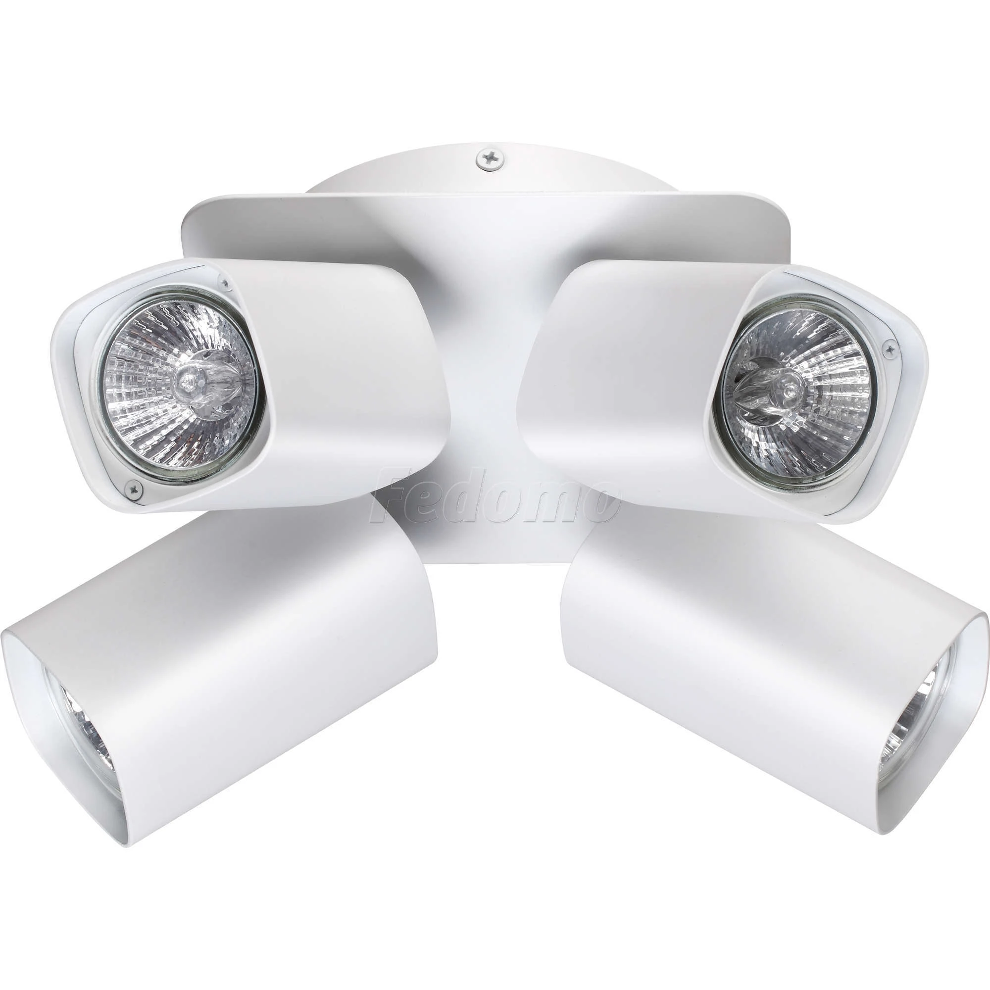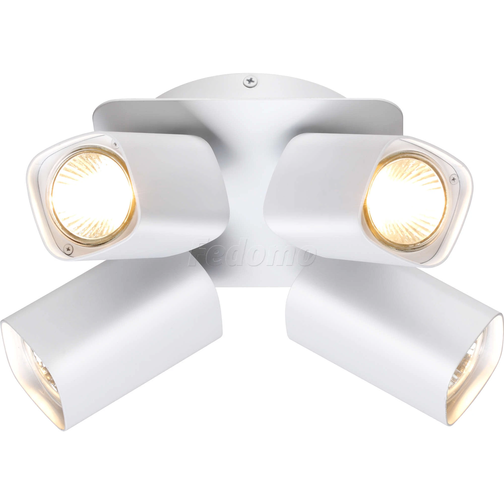 Материалы исполнения алюминий/металл. Цвет арматуры белый. Угол повората 90 градусов. Наименование 370556 NT19 203 белый Накладной светильник IP20 GU10 4*50W 230V GUSTO.