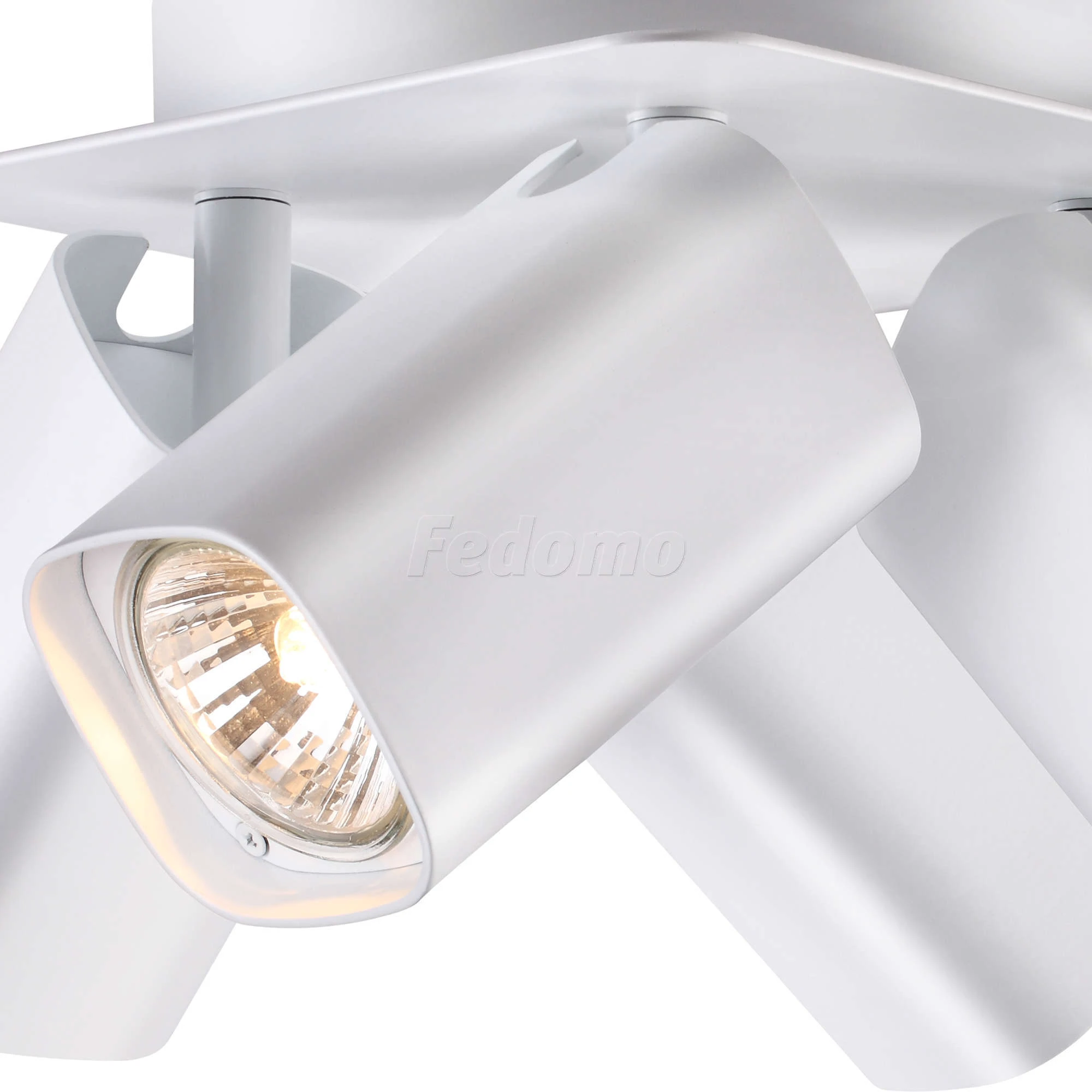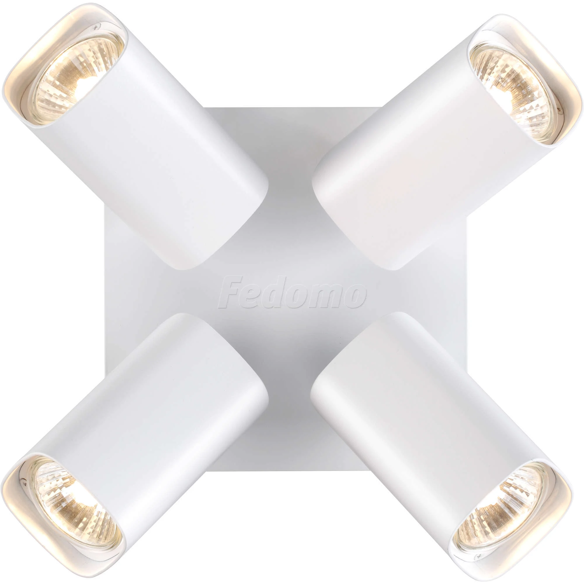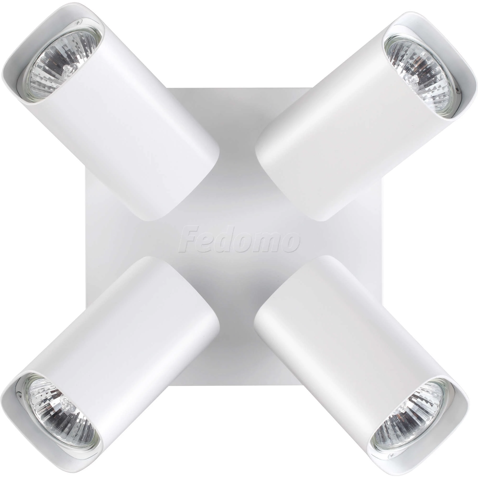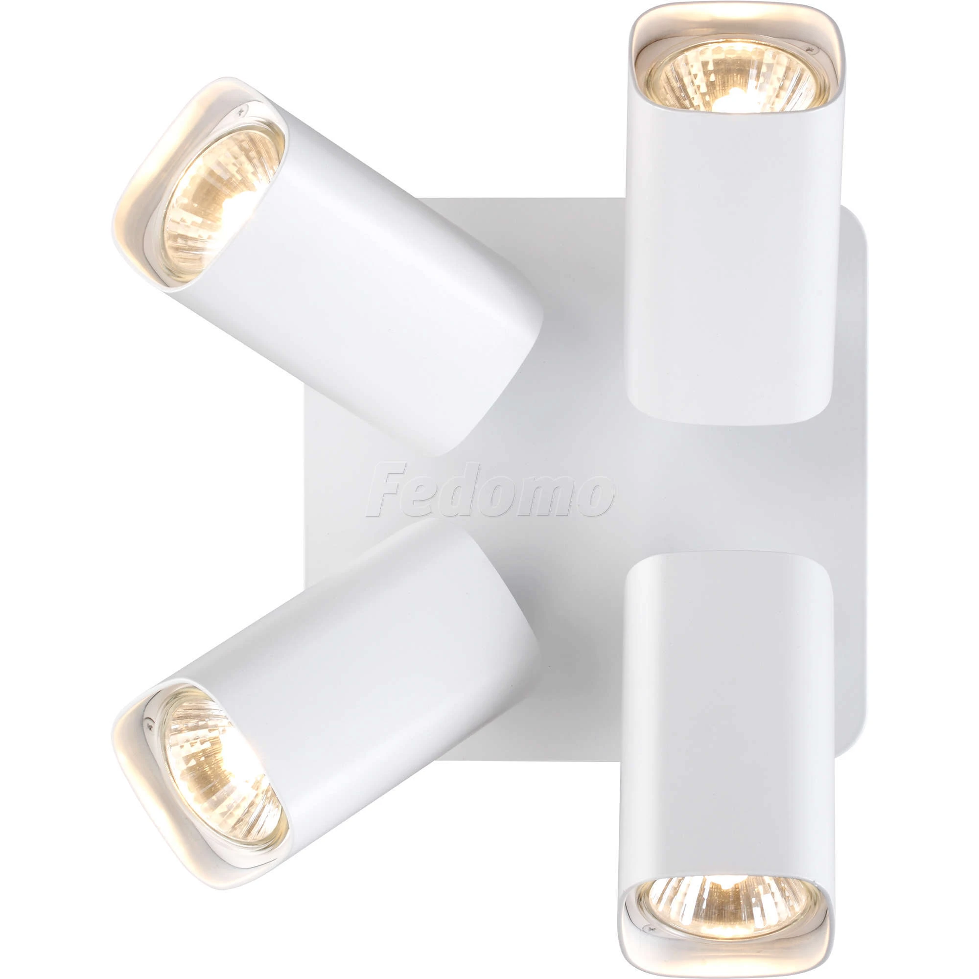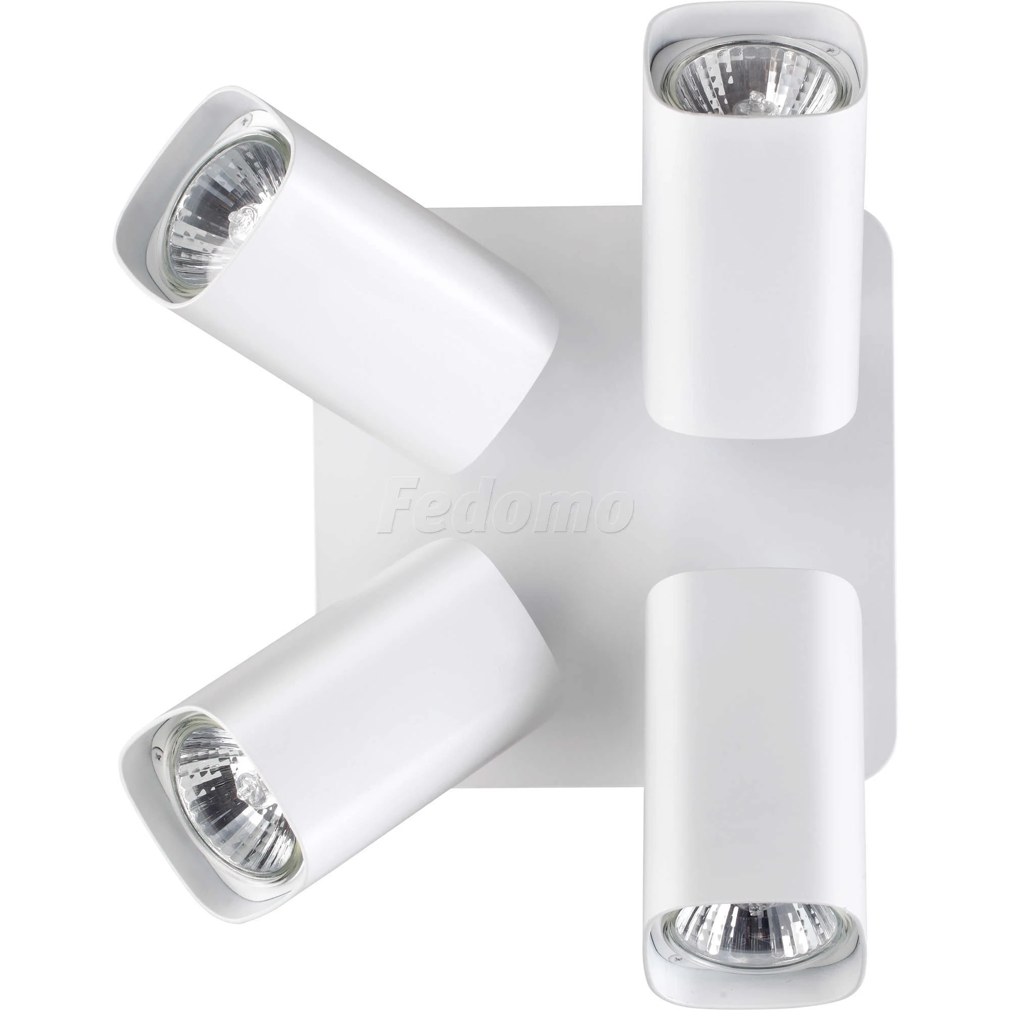 Материалы исполнения алюминий/металл. Цвет арматуры белый. Угол повората 90 градусов. Наименование 370556 NT19 203 белый Накладной светильник IP20 GU10 4*50W 230V GUSTO.
