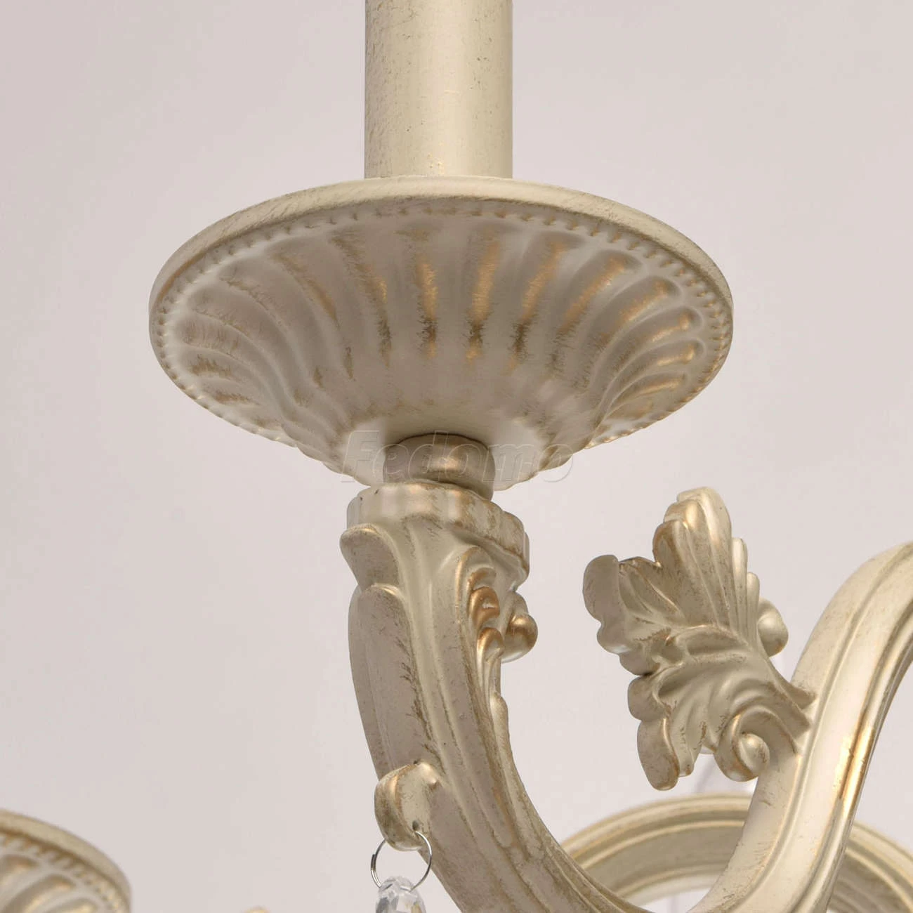 Античная грация, богатый декор и трендовые оттенки – люстра из коллекции «Аврора» сочетает в себе всё самое лучшее. Основание из металла цвета слоновой кости подчеркнуто эффектом золотого патинирования – оно оживляет композицию и придает ей особую торжест