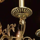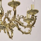 Античная грация и благородство привлекают в люстре из коллекции \Аврора". Металлическое основание цвета латуни дополнено патинированием. Грациозный изгиб рожка подчеркнут источниками света в виде свечей. Завершает композицию богатый декор: витые узоры из ""