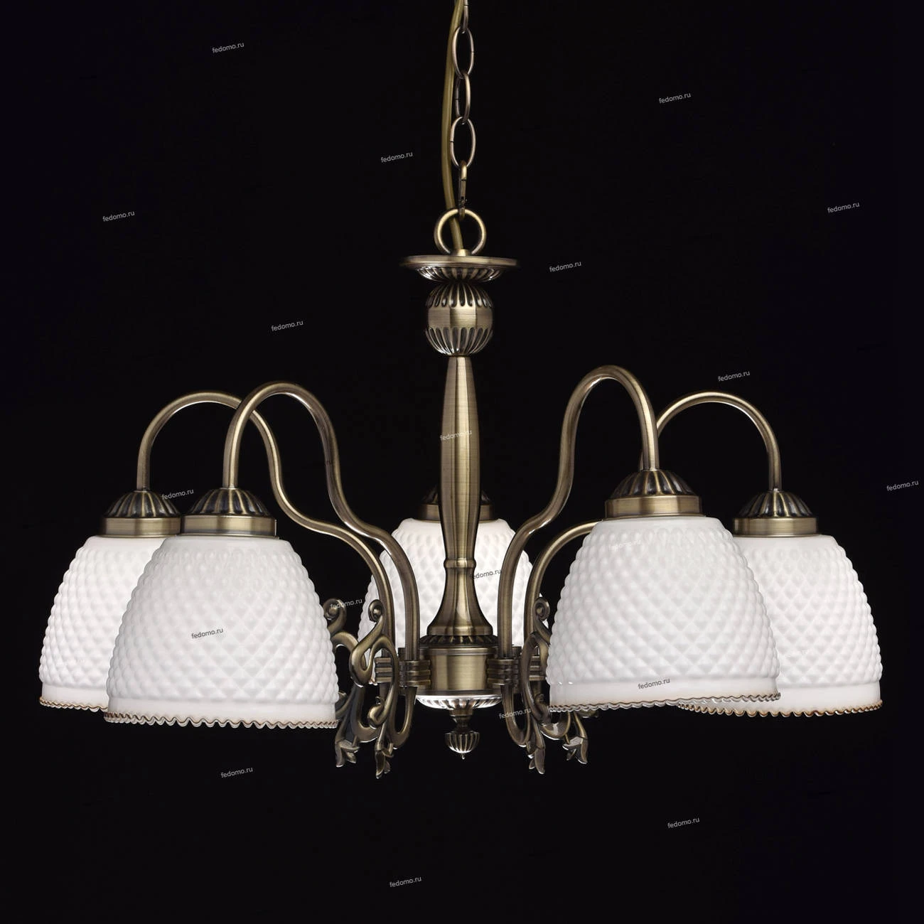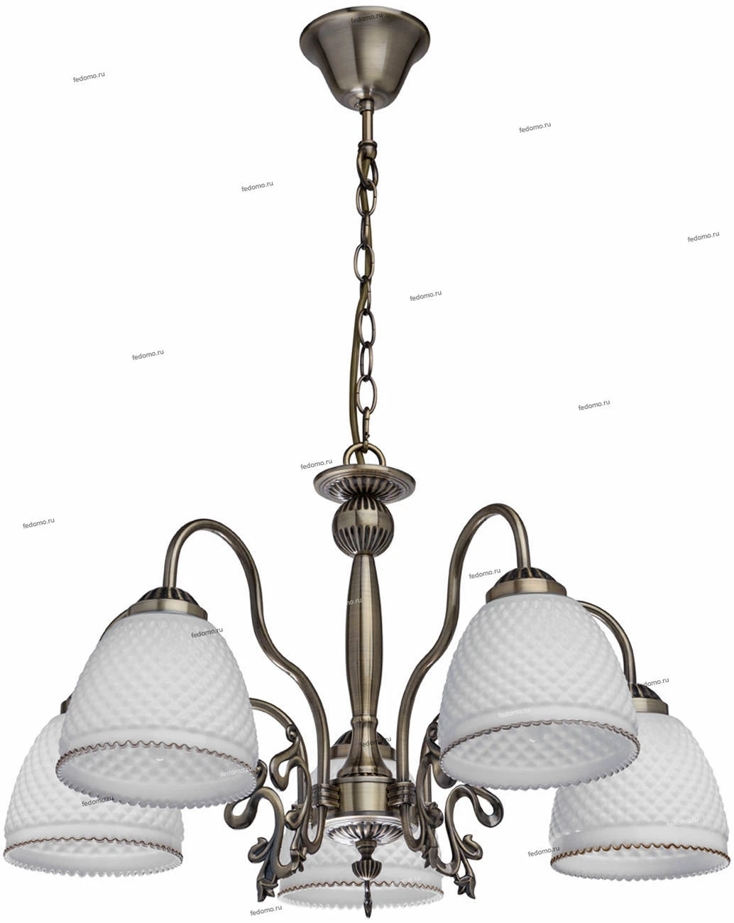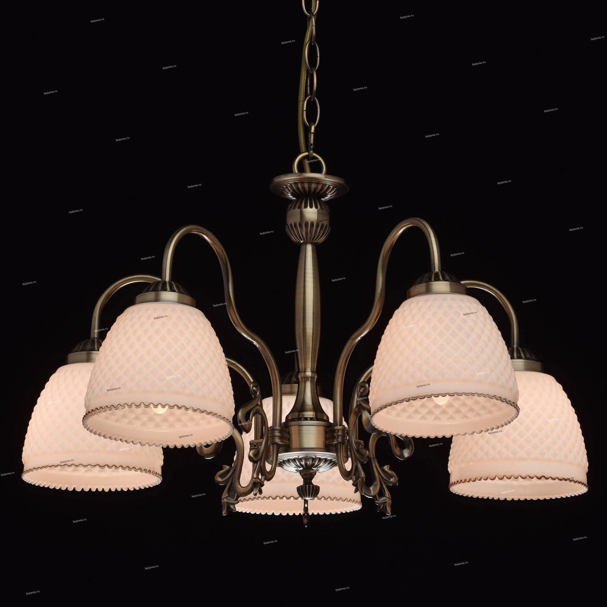 Конструкция подвесной люстры позволяет регулировать высоту изменением количества звеньев цепи.