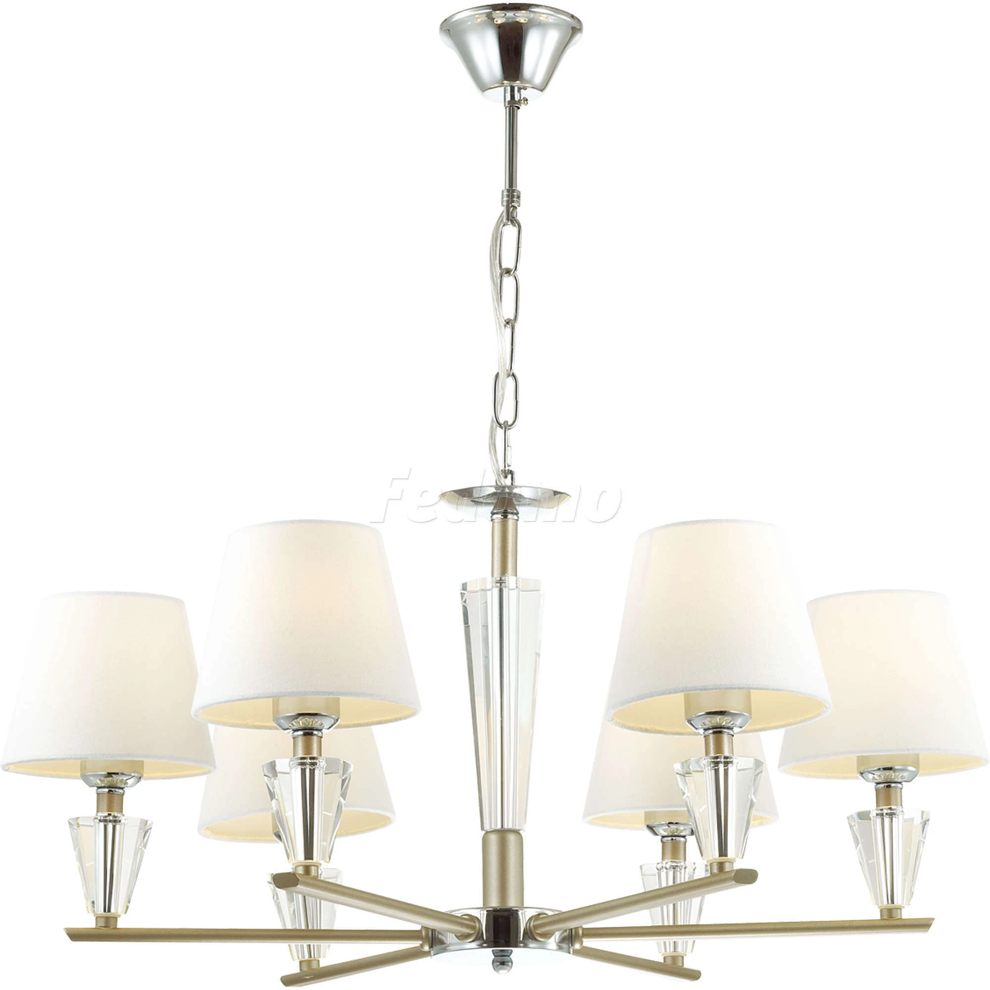 Материалы исполнения металл. Цвет арматуры хром, золотой. Плафон в цвете: белый. В эклектичную серию Loraine сложно не влюбиться с первого взгляда. Нежная, романтичная, и необычайно стильная - Loraine украсит любую спальню или гостиную. В основании эффектно комбинируются два цвета, хром и матовое золото, абажуры выполнены из белой натуральной ткани. Ярким акцентом стали декоративные подставки из стекла необычной формы. Наименование 3733/6 LN19 186 хром, матовое золото Люстра E27 6*60W 220V LORAINE.