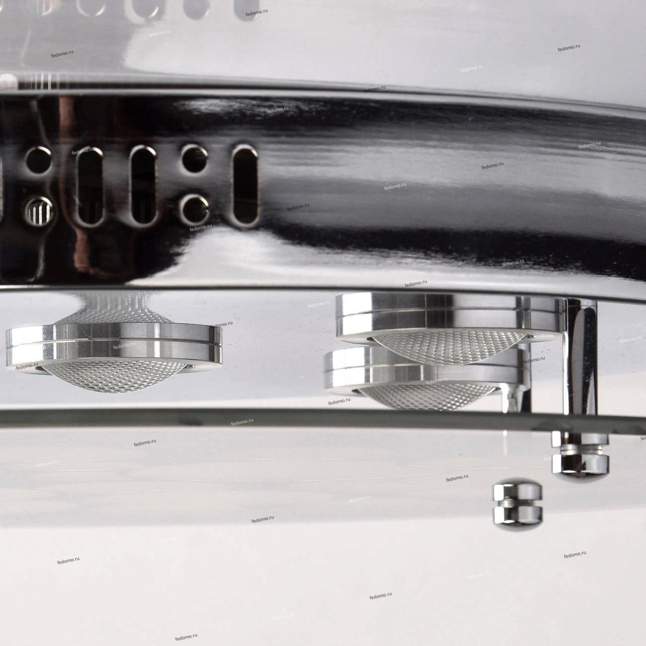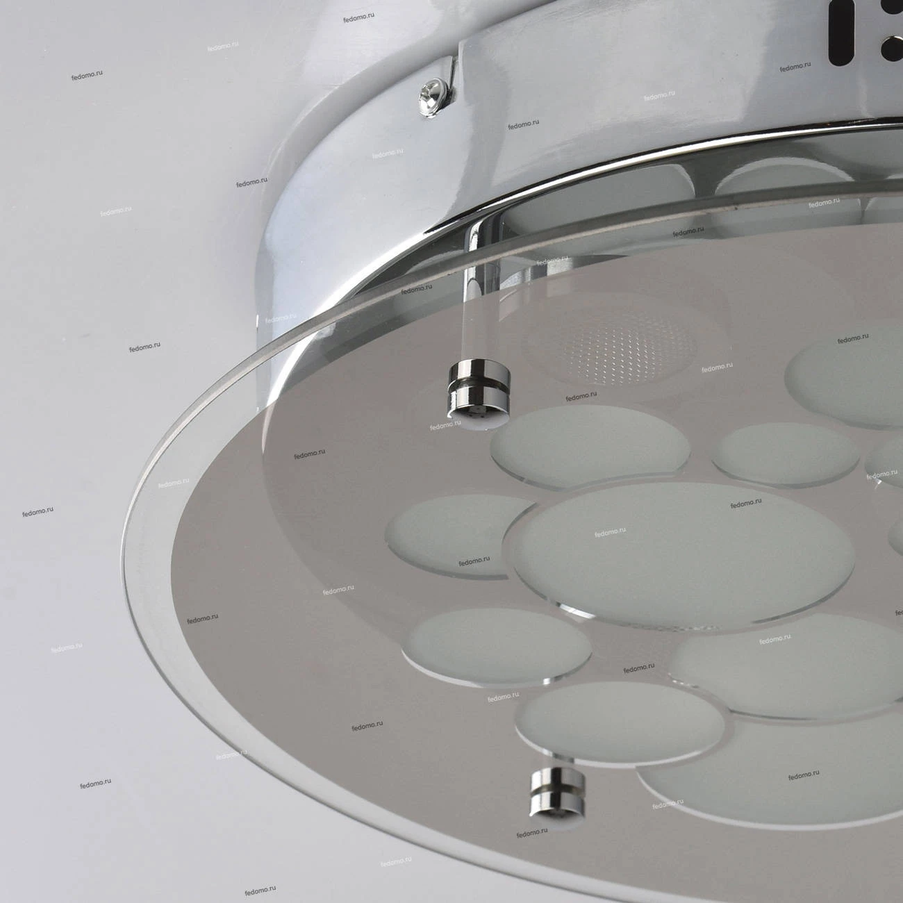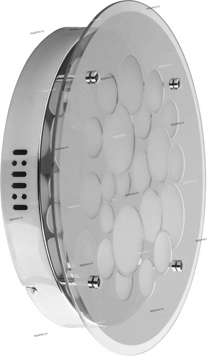 Минимализм, практичность и стиль – все эти качества отличают потолочный светильник из коллекции «Премьера». Основание из металла цвета хрома подчеркнуто оригинальным декором источников света-светодиодов. Они скрыты под плоской вставкой из гальванизированн