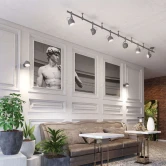 Материалы исполнения металл. Цвет арматуры серый. Плафон в цвете: серый. Для стиля лофт, где часто применяются фактурные рельефные стены, окрашенные под бетон или штукатурку, идеально подойдут наши светильники Graffito в матовом графитовом цвете. Графитовые, каменные и асфальтовые оттенки прекрасно впишутся в интерьер большой и просторной кухни, современного коридора или мужской брутальной студии. Серия комплектуется поворотным настенным светильниками. Наименование 3803/6TR ODL19 167 серый/металл Гибкий трек GU10 6*50W 3000х114х294 GRAFFITO.