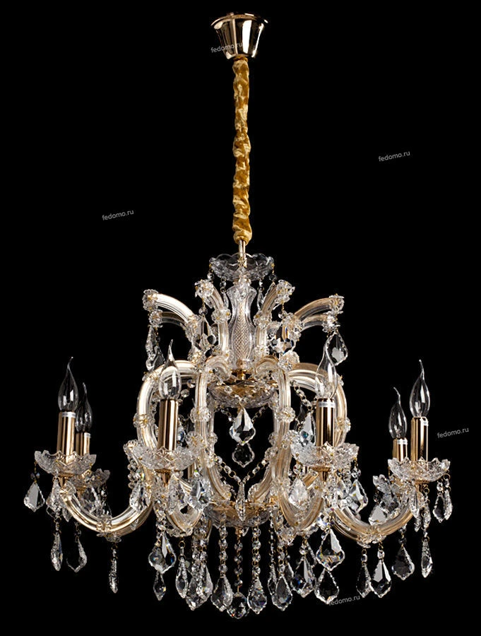 Люстра подвесная 383010308 из серии Луиза от компании Chiaro регулируется по высоте и устанавливается на металлический крюк. Классическая люстра в виде подсвечника прекрасно подойдет в качестве источника основного света для гостиной, холла, оформленных в стиле арт-деко, барокко. Основной цвет модели - желтый, золото, материал арматуры - металл, стекло. Материал плафона - . Модель оснащена цоколем E14 (8хE14), имеет 8 лампочек с общей мощностью 480W и напряжением 220V. Светильник поддерживает подключение диммера. Габариты: высота - 1100 мм, диаметр - 790 мм, длина подвеса - 500 мм. Лампочки в комплект не входят. Лучшая цена и условия доставки на Chiaro 383010308 в интернет-магазине Fedomo.ru.
