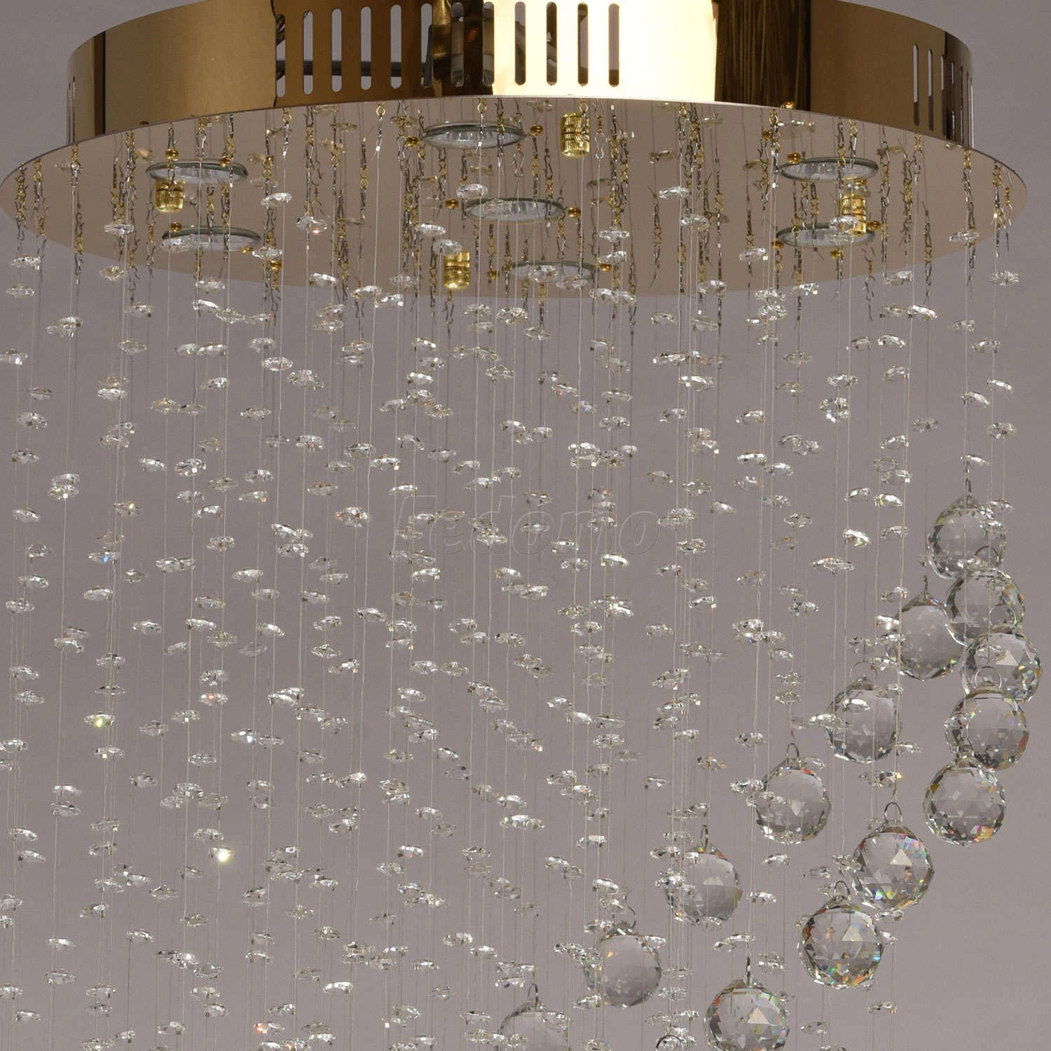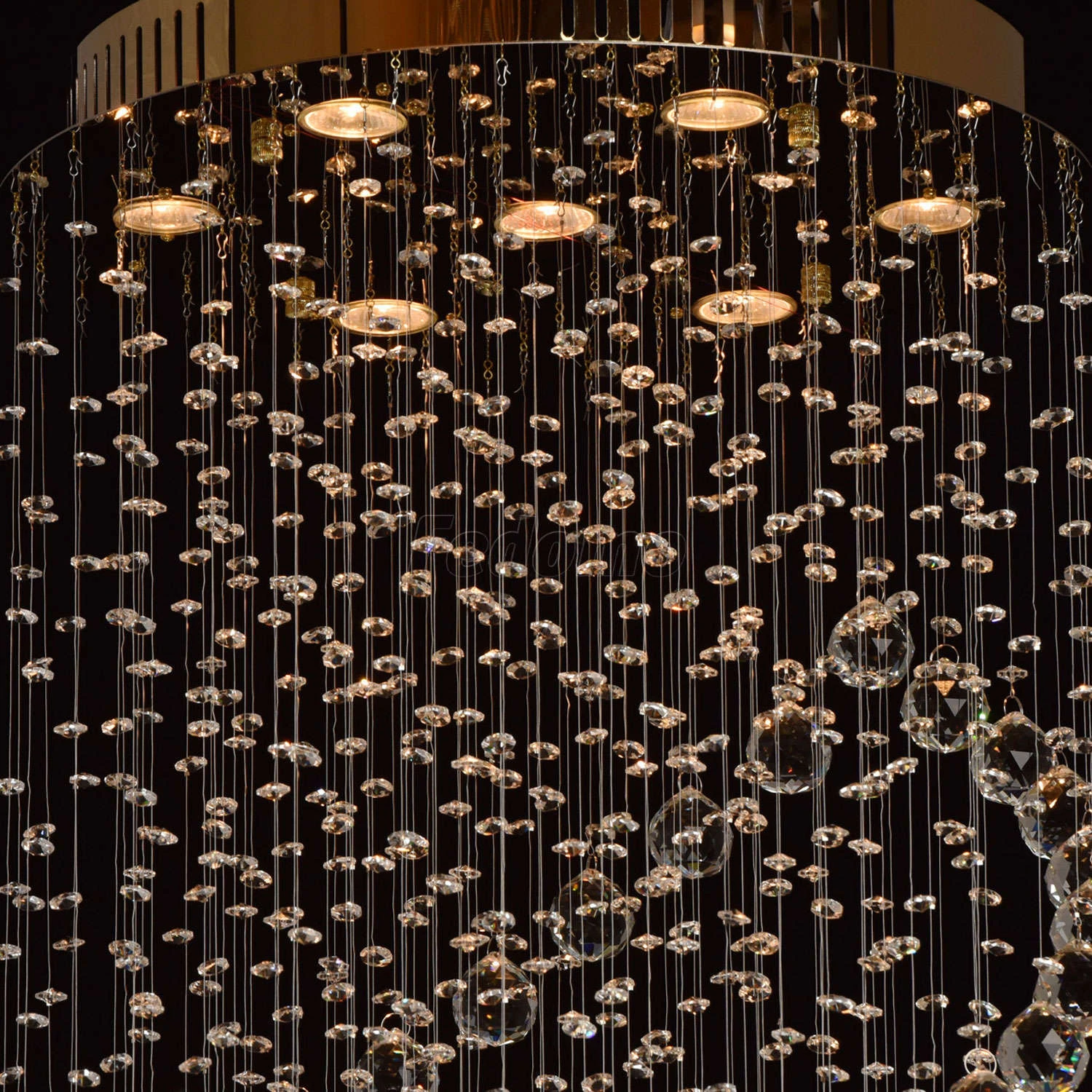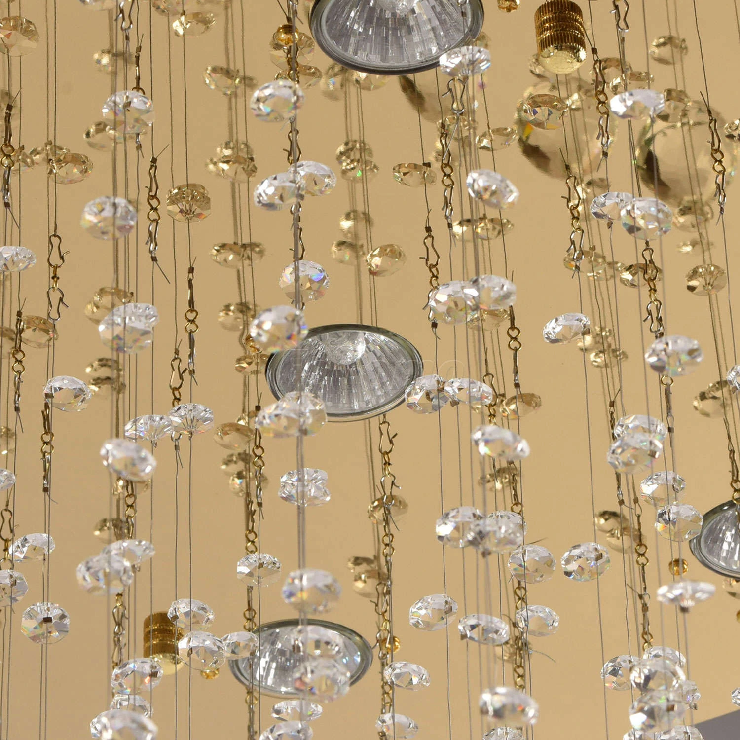 Люстра из коллекции «Каскад» завораживает и приковывает взгляды своим необычным исполнением. От глянцевого металлического основания насыщенного золотого оттенка плавно спускаются струящиеся хрустальные подвески. Переплетаясь, они создают причудливые изогн