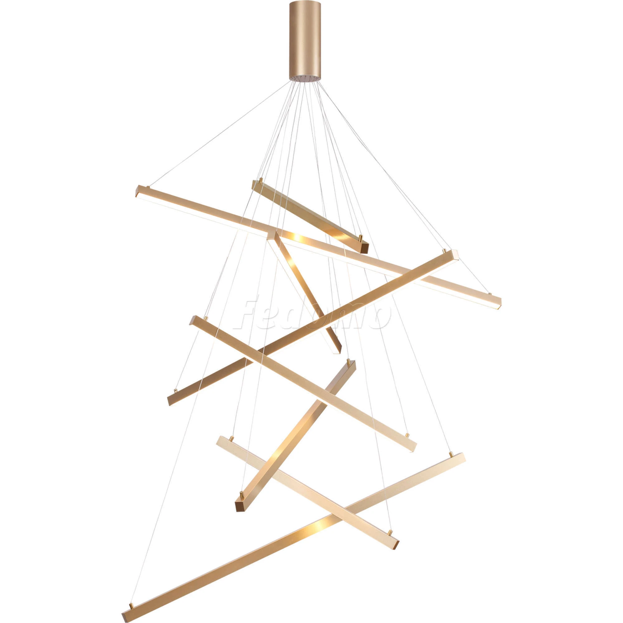 Материалы исполнения металл. Цвет арматуры золото. Плафон в цвете: золото. Суперсовременная серия Cometa - это эффектная и стильная инсталляция, элементы которой выполнены в трендовом золотистом матовом цвете. Светильник создает вокруг себя строго выверенное геометрическое пространство, и одновременно с этим свободную и воздушную конструкцию. Наименование 3860/96L ODL19 053 золото Подвесной светильник LED 96W 5190Лм 3000К 220V COMETA.