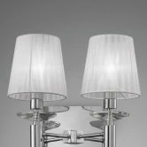 Бра 3863 из серии Tiffany от компании Mantra отлично подойдет в качестве дополнительного источника света для прихожей и коридора, кафе, кухни, выполненных в стиле классический, арт-деко. Основной цвет модели - белый, материал арматуры - металл. Двухрожковое бра имеет 4 лампочки, оснащено цоколем E14 с общей мощностью 52W и напряжением 220V. Абажуры направлены вверх, материал изготовления - органза. Лампочки в комплект не входят. Лучшая цена и условия доставки на Mantra 3863 в интернет-магазине Fedomo.ru.