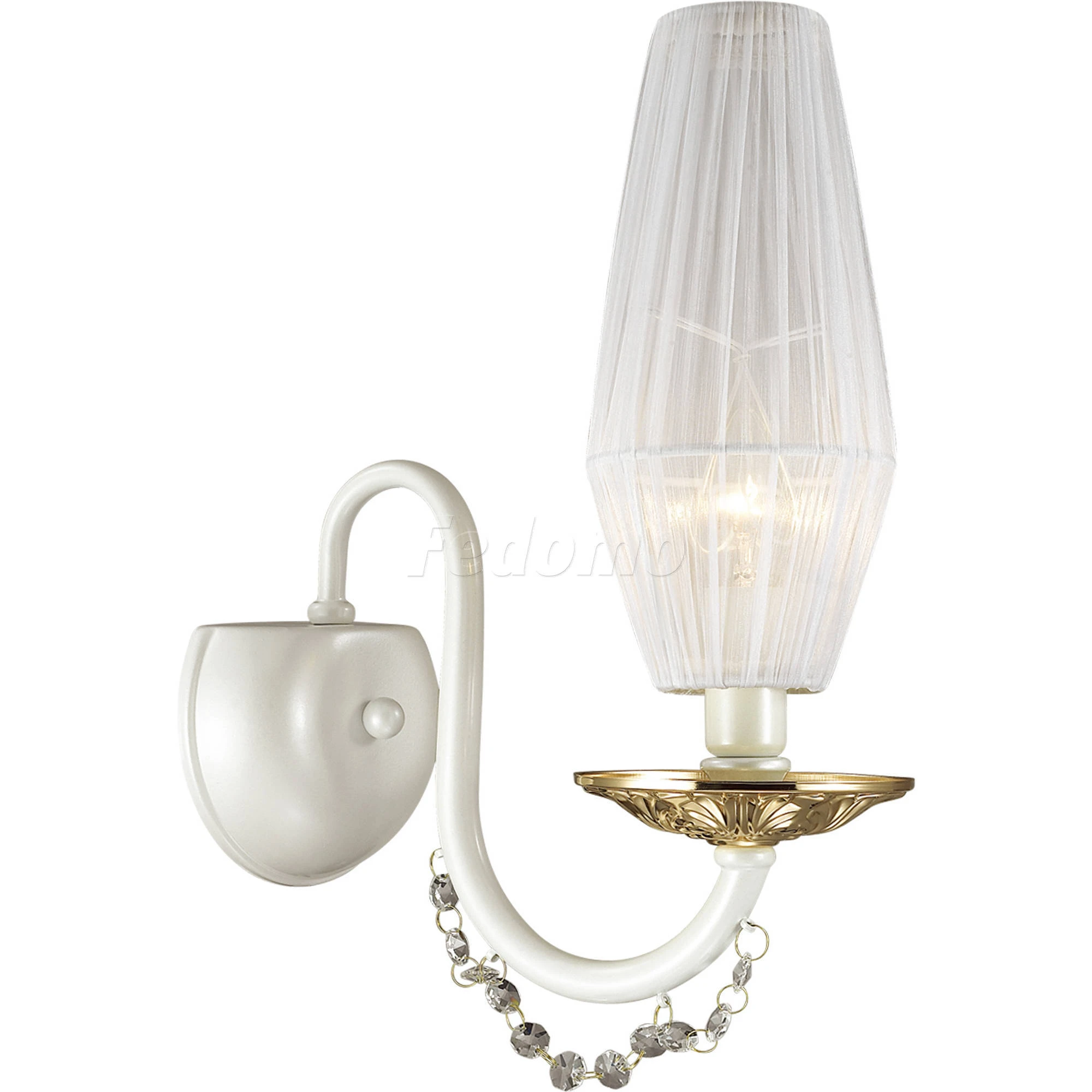 Материалы исполнения арматура, декор: металл, хрусталь; абажур: ткань. Цвет арматуры белый. Плафон в цвете: белый. Особенность: для использования со скрытой проводкой. Декор подвеска, материал декора хрусталь, цвет прозрачный. Бра 3919/1W серии Felicia выполнено в классическом стиле. Основание светильника окрашено в изысканный перламутровый цвет. Бра украшает утонченный белоснежный абажур, изящный металлический декор в золотом цвете, а также хрусталь высшего качества в цвете шампань. Все это придает светильнику роскошный, но в то же время очень нежный и утонченный образ. Цоколь E14. Мощность 1*40W. Нет ламп в комплекте. Наименование 3919/1W ODL18 366 перламутр/зол/ткань/хрусталь Бра IP20E14 40W 220V FELICIA.