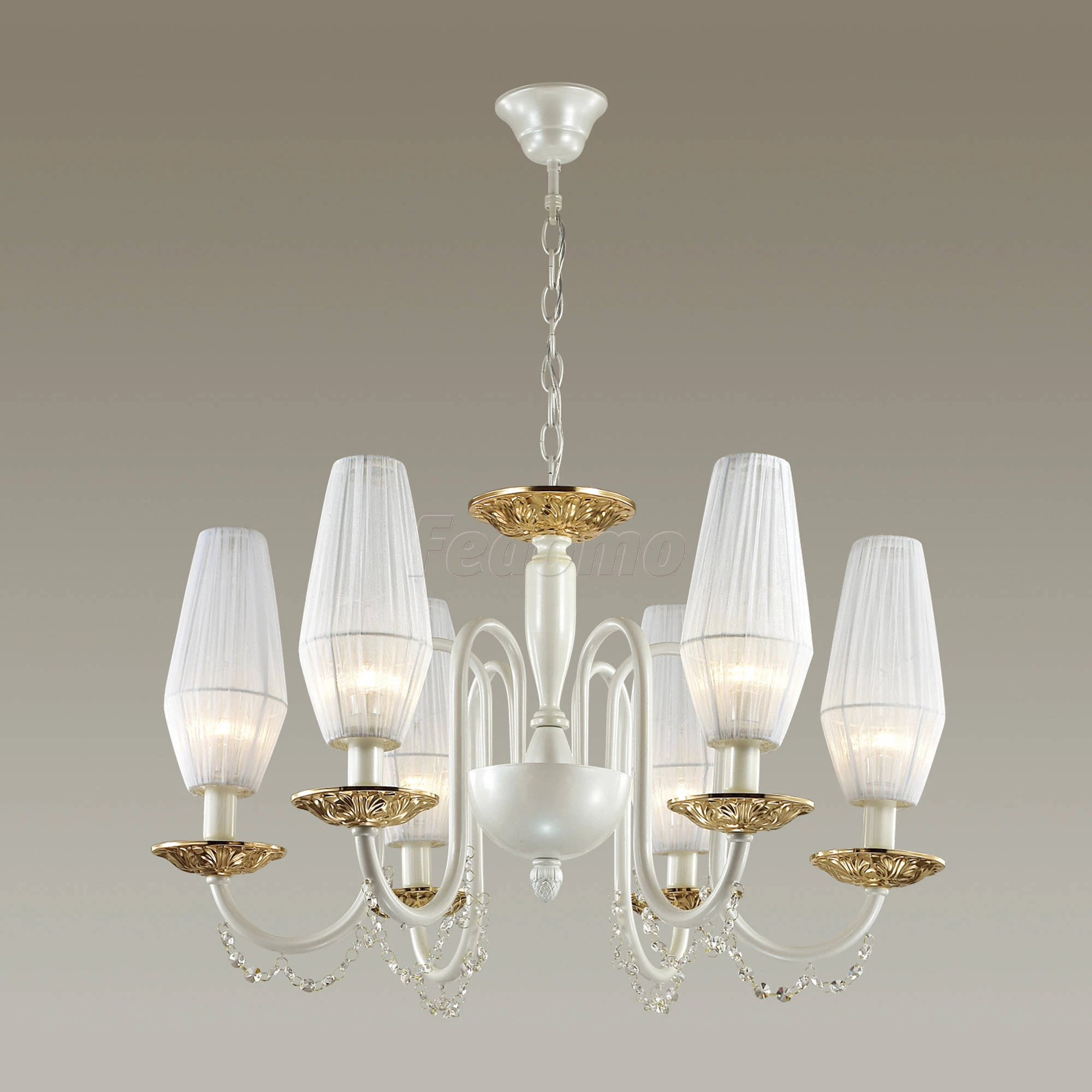 Люстра подвесная хрустальная 3919/6 из серии Felicia от компании Odeon Light устанавливается на металлический крюк. Люстра украшена хрустальными подвесками и прекрасно подойдет в качестве источника основного света для гостиной, спальни, оформленных в стиле модерн, ар нуво, Яркий. Основной цвет модели - белый, материал арматуры - металл. Люстра имеет 6 абажуров со свечением вверх, материал изготовления - матовая ткань. Модель оснащена цоколем E14 (6xE14), имеет 6 лампочек с общей мощностью 240W и напряжением 220V. Светильник поддерживает подключение диммера. Габариты: длина - 718 мм, ширина - 718 мм, высота - 430 мм. Лампочки в комплект не входят. Лучшая цена и условия доставки на Odeon Light 3919/6 в интернет-магазине Fedomo.ru.