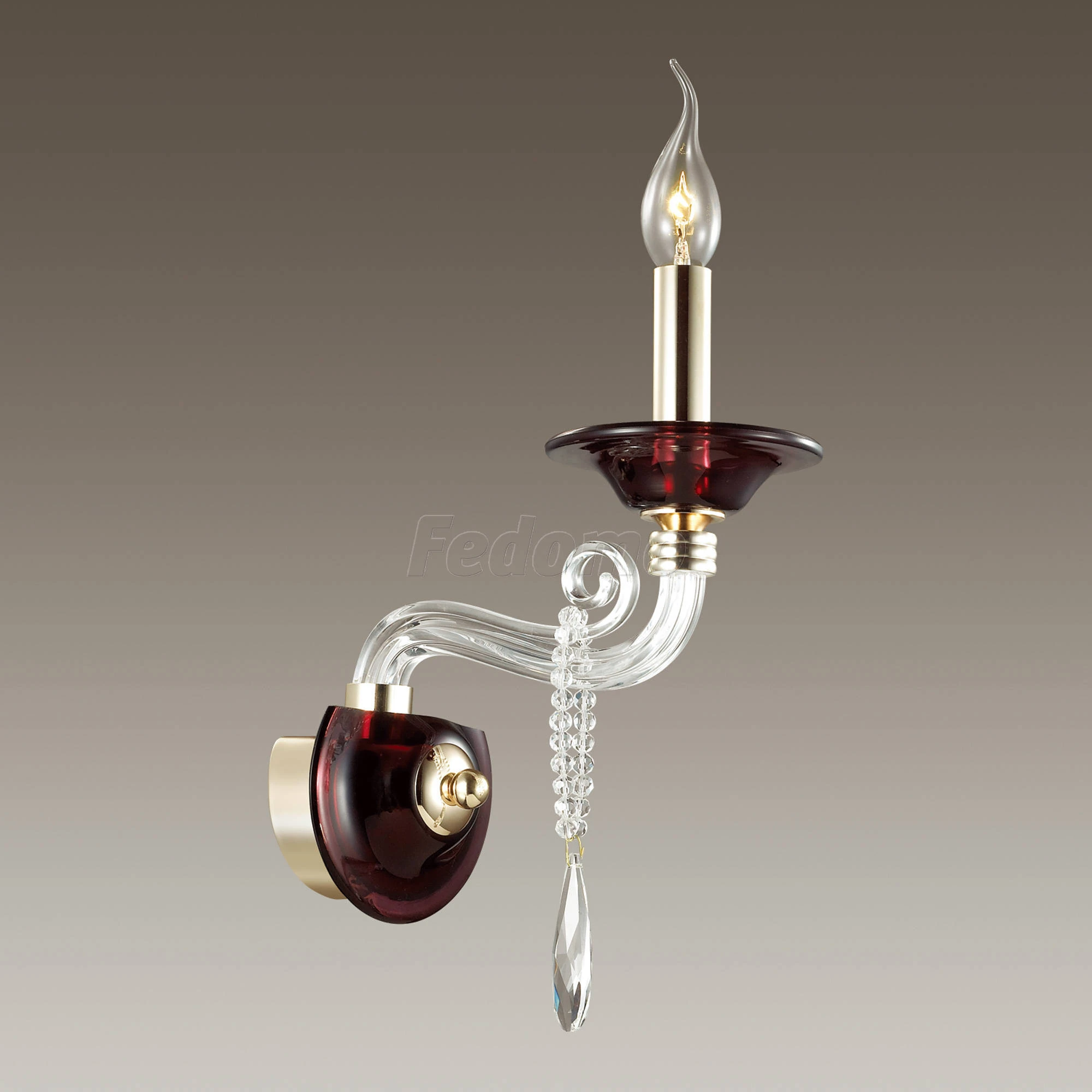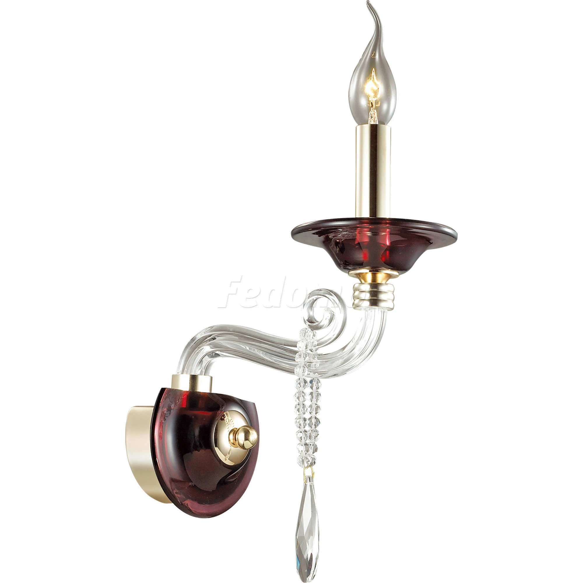 Материалы исполнения арматура, декор: металл, стекло, хрусталь, хрустальное стекло. Цвет арматуры красный. Особенность: для использования со скрытой проводкой. Декор подвеска, материал декора хрусталь, цвет прозрачный. Бра 3928/1W серии Amarone выполнено из красивейшего стекла насыщенного винного оттенка в сочетании с прозрачным. Выполненное из дорогих материалов, богато украшенное стеклянными декоративными элементами в виде изящно изогнутых рожков и подвесок, чаши из чистого хрусталя, а также золотыми декоративными вставками, бра смотрится невероятно роскошно и благородно. Цоколь E14. Мощность 1*40W. Нет ламп в комплекте. Наименование 3928/1W ODL18 292 зол./бордов./прозрачн./хруст.стекло/хрусталь Бра IP20 E14 40W 220V AMARONE.