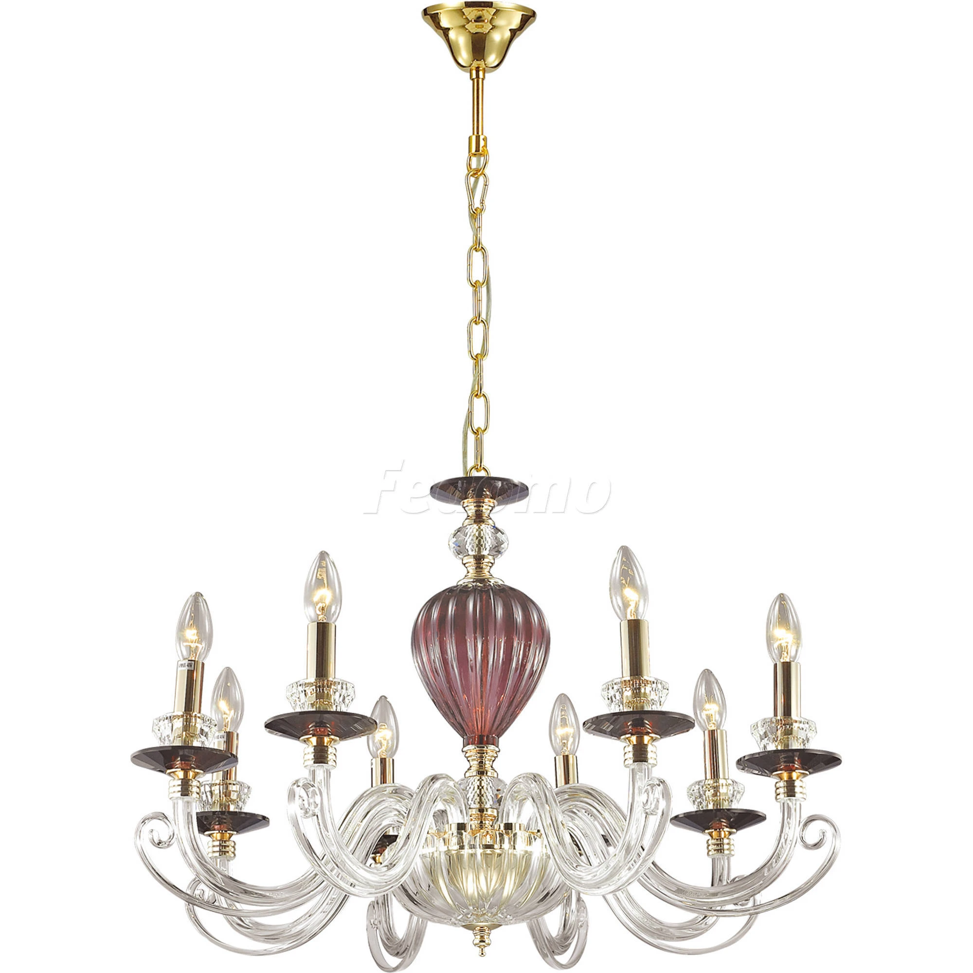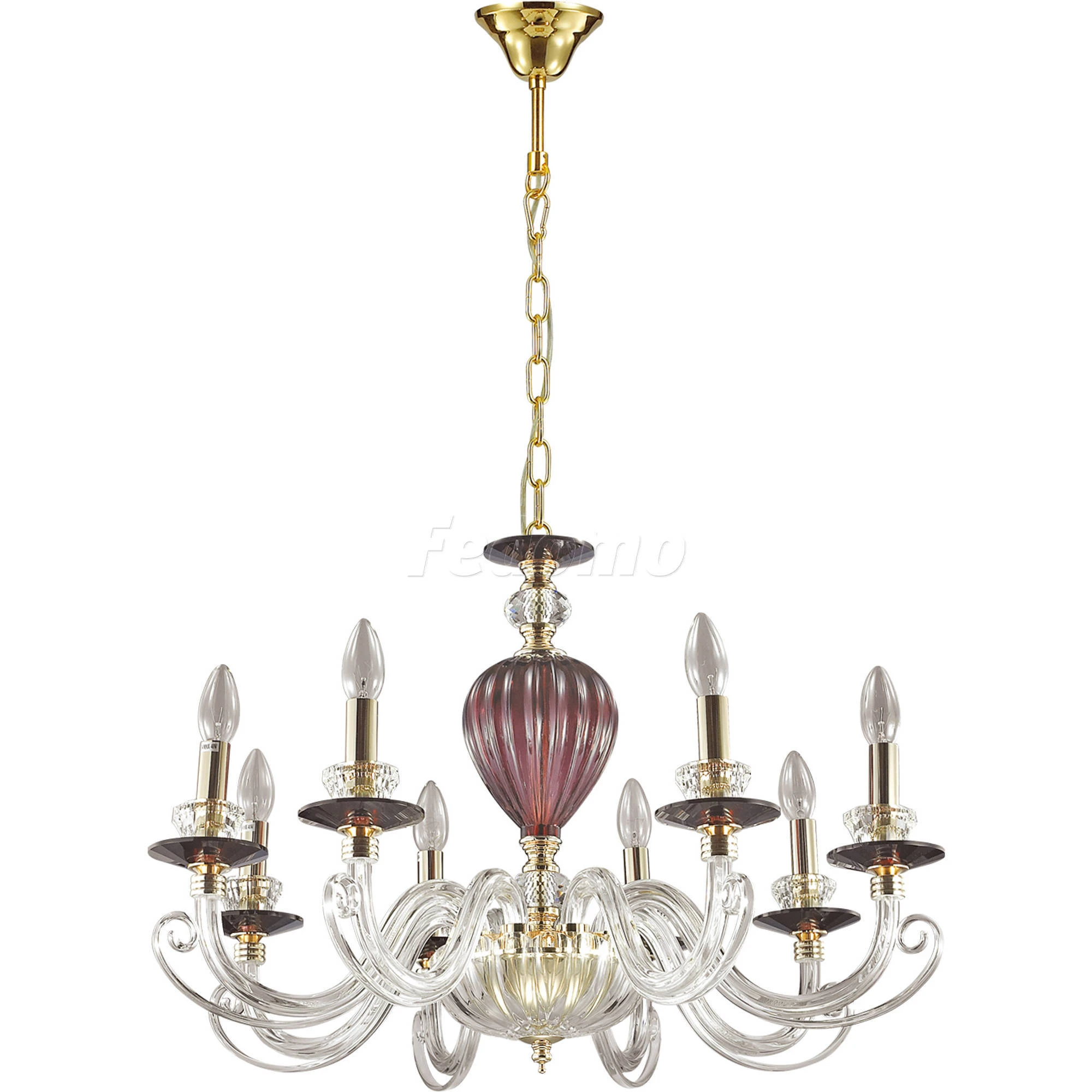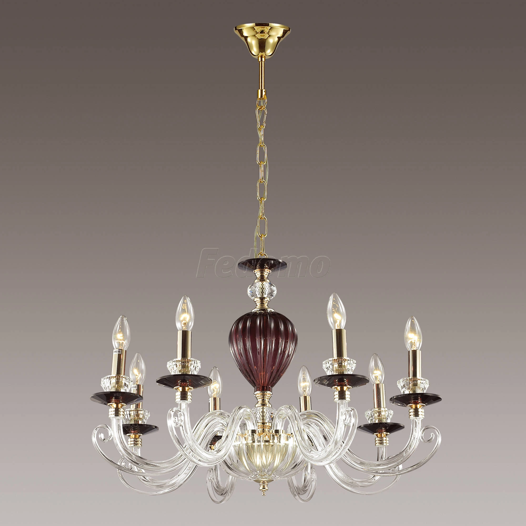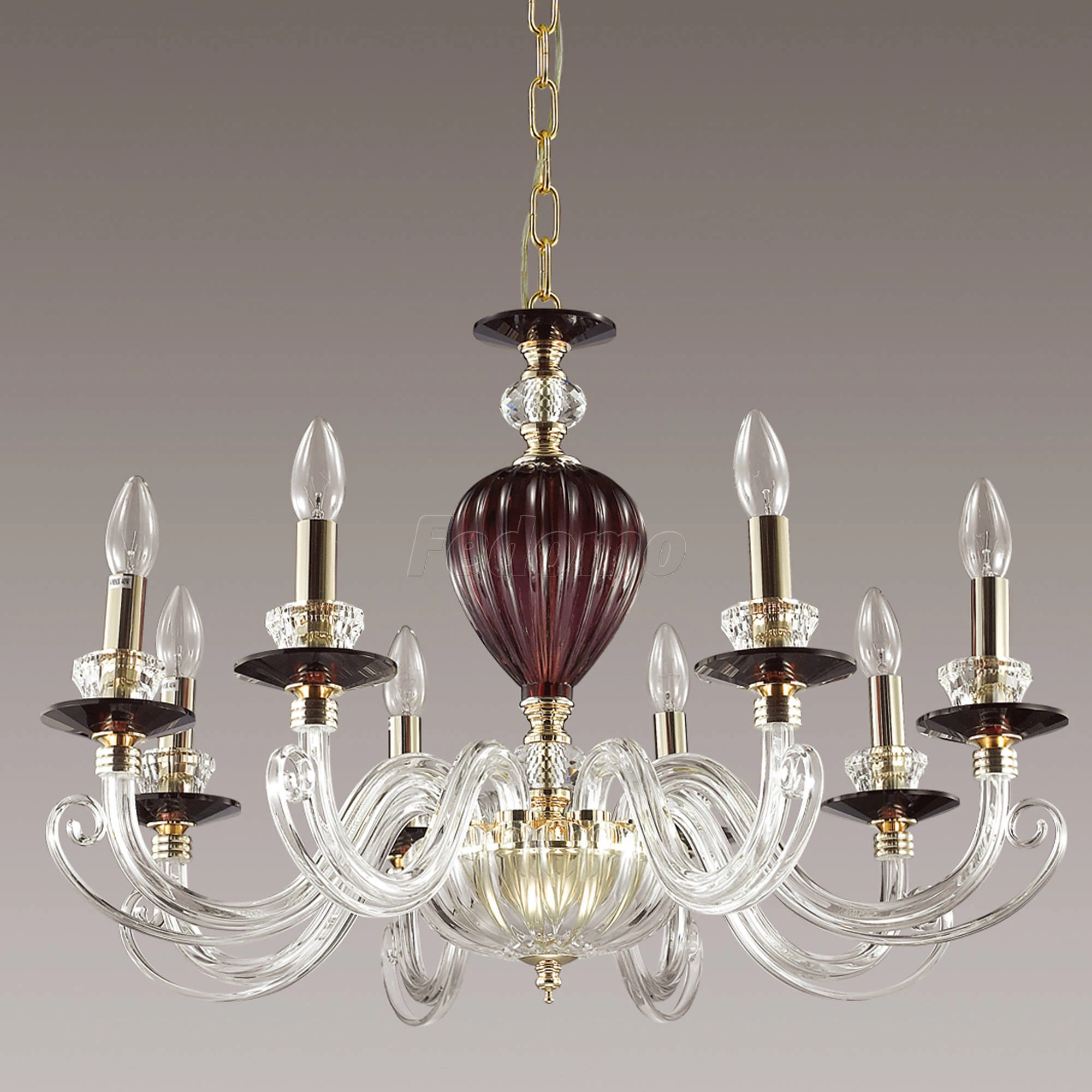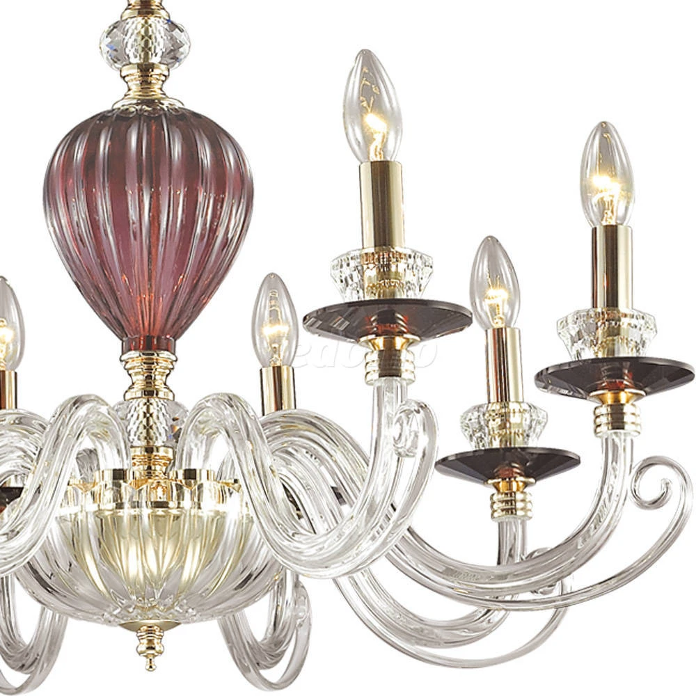 Материалы исполнения арматура, декор: металл, стекло, хрусталь, хрустальное стекло. Цвет арматуры красный. Декор декоративная арматура, материал декора стекло, цвет прозрачный. Нарядная и очень элегантная люстра 3929/8 серии Siena выполнена в классическом стиле. Люстра выполнена из красивого дорогого стекла двух цветов: винного и прозрачного. Люстра украшена хрустальными чашами-подсвечниками, а также изящной подвеской на основании с хрусталем ярко-красного цвета, придающего богатой и роскошной люстре особую привлекательность и пикантность. Цоколь E14. Мощность 8*40W. Нет ламп в комплекте. Наименование 3929/8 ODL18 291 зол./прозрачн./бордов./красн./хруст.стекло/хрусталь Люстра IP20 E14 8*40W 220V SIEN.