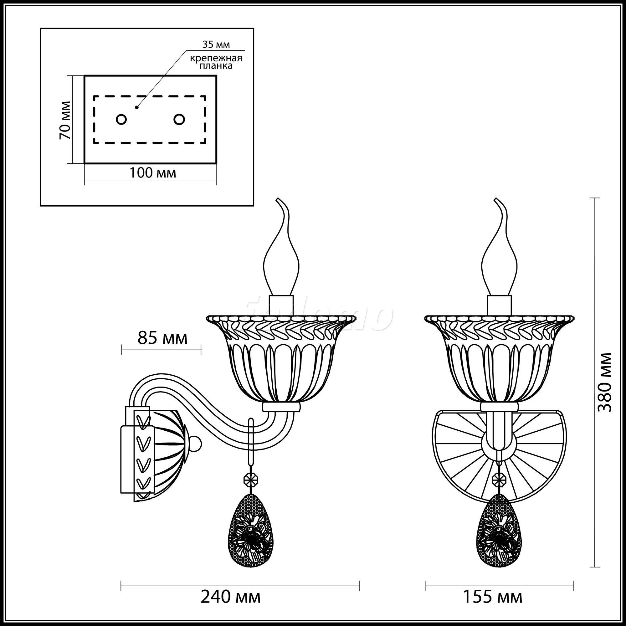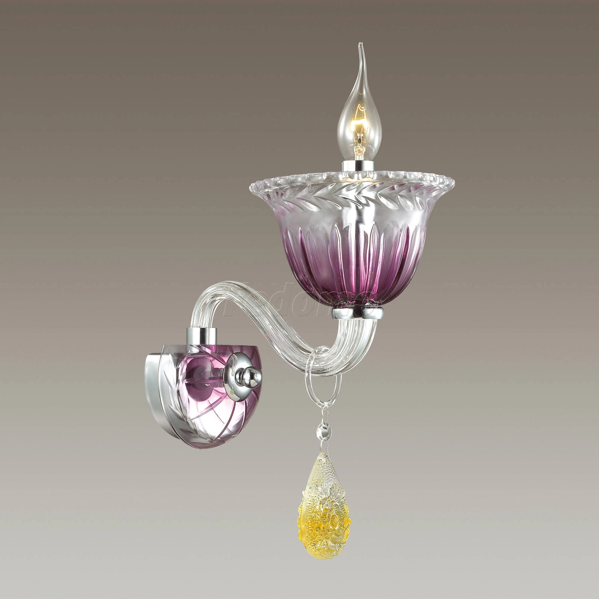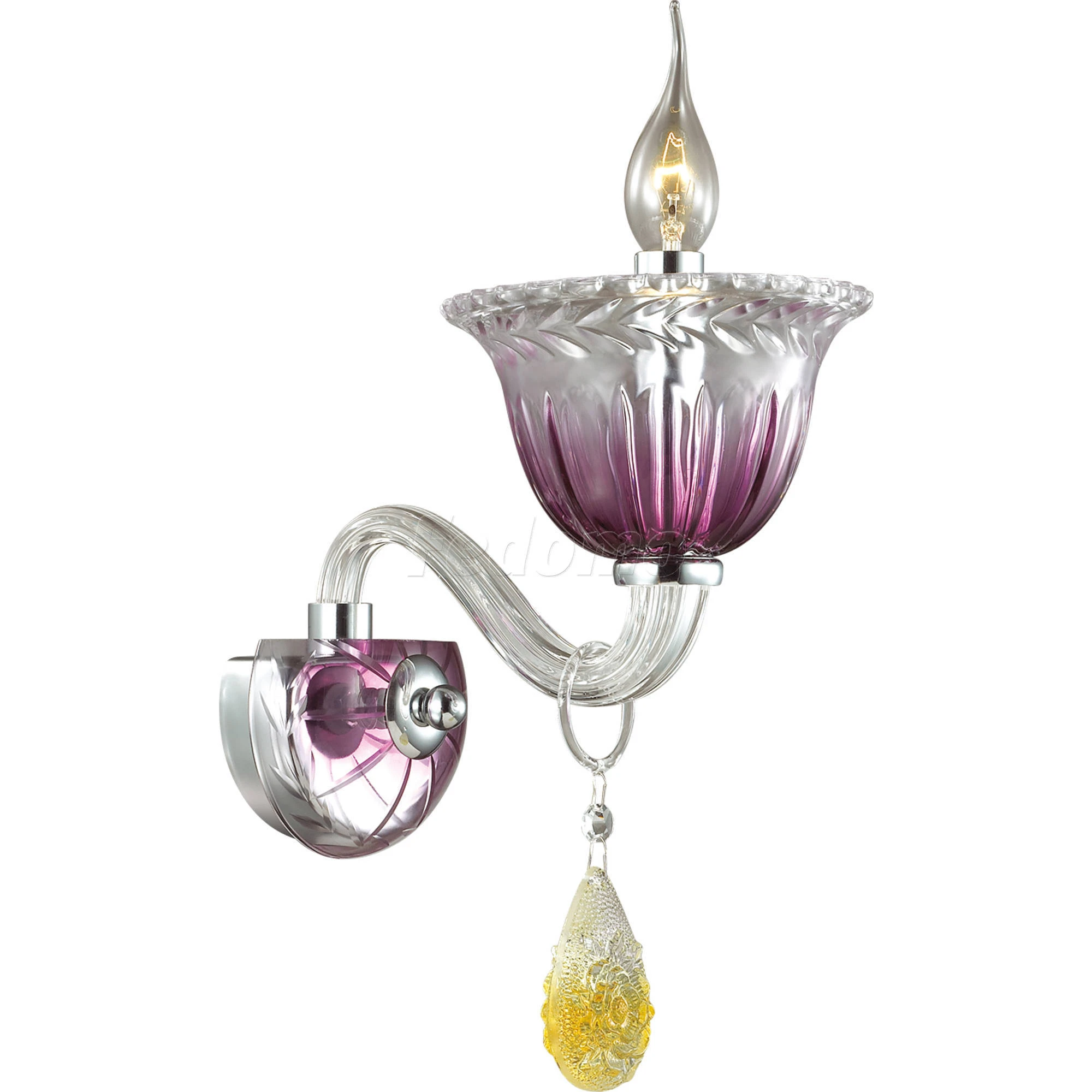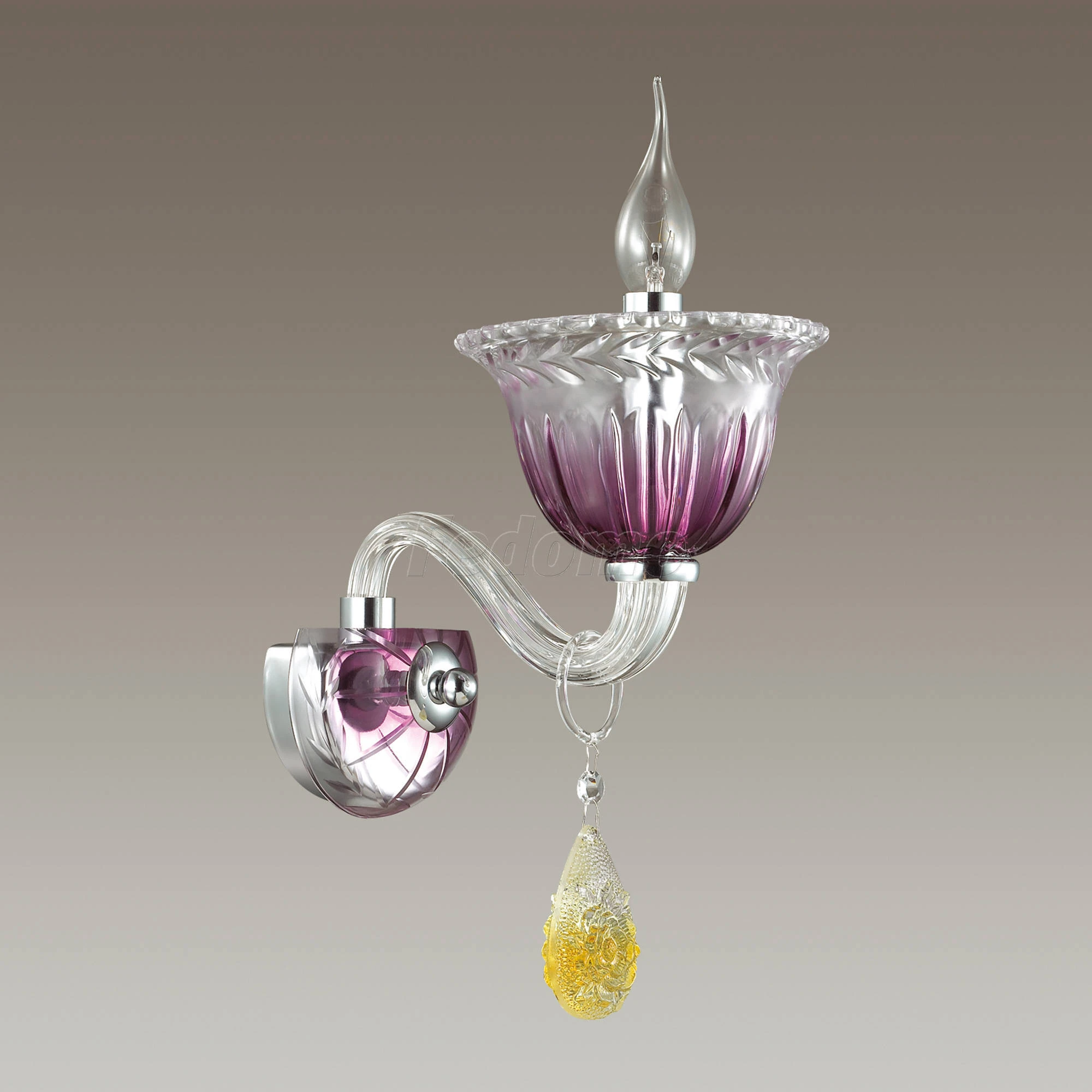 Материалы исполнения арматура, декор: металл, стекло, хрусталь; плафон: стекло. Цвет арматуры фиолетовый. Особенность: для использования со скрытой проводкой. Декор подвеска, материал декора хрусталь, цвет желтый. Необычайно красивое и нежное бра 3930/1W серии Olica оформлено в классическом стиле. Бра украшает дорогое выдувное стекло с декоративным орнаментом. Но основной изюминкой и украшением этого стекла является цветовое сочетание прозрачного и насыщенного темно-лилового, два чистых и контрастных цвета, плавно переходящих из одного в другой, и идеально гармонирующих друг с другом. Данную нежную и свежую композицию оживляют крупные хрустальные подвески с теплым янтарным оттенком, красиво украшающие низ люстры. Цоколь E14. Мощность 8*40W. Нет ламп в комплекте. Наименование 3930/1W ODL18 307 хром/прозрачн./лиловый/хрусталь Бра IP20 E14 40W 220V OLICA.