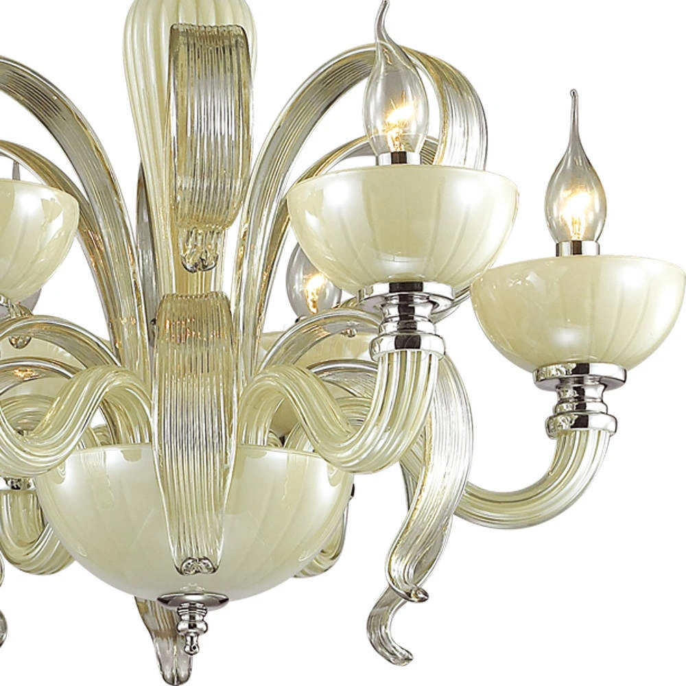 Материалы исполнения арматура, декор: металл, стекло; плафон: стекло. Цвет арматуры желтый. Декор декоративная арматура, материал декора стекло, цвет золото. Эффектная люстра 3934/6 серии Caramella выполнена в классическом стиле. Красивое выдувное стекло, выполненное в оригинальных формах и с глянцевым покрытием, идеально сочетается с нежным цветом "шампань" и хромовыми вставками. Теплый оттенок люстры будет смотреться нарядно и элегантно, идеально подойдет для оформления светлых интерьеров, а также гармонично впишется в темные интерьеры, делая их теплее. Цоколь E14. Мощность 6*40W. Нет ламп в комплекте. Наименование 3934/6 ODL18 314 хром/шампань/белый Люстра IP20 E14 6*40W 220V CARAMELLA.