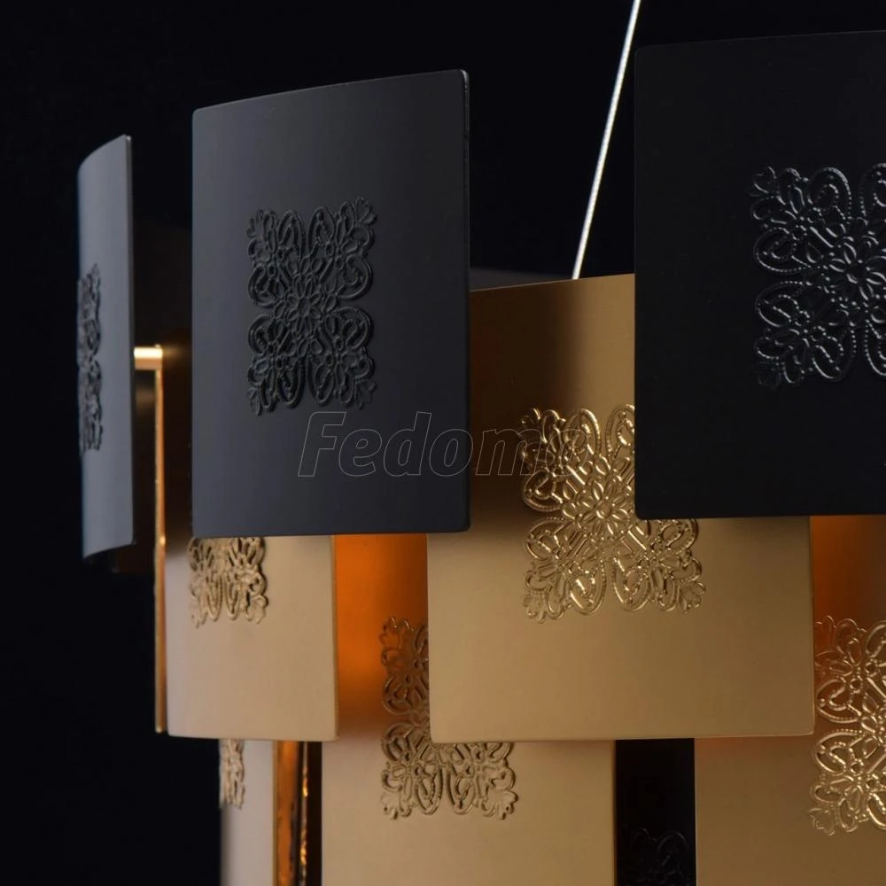 Пластины матового золотого и черного - модный тренд сезона дополняют гламурный образ модели в стиле ар-деко.