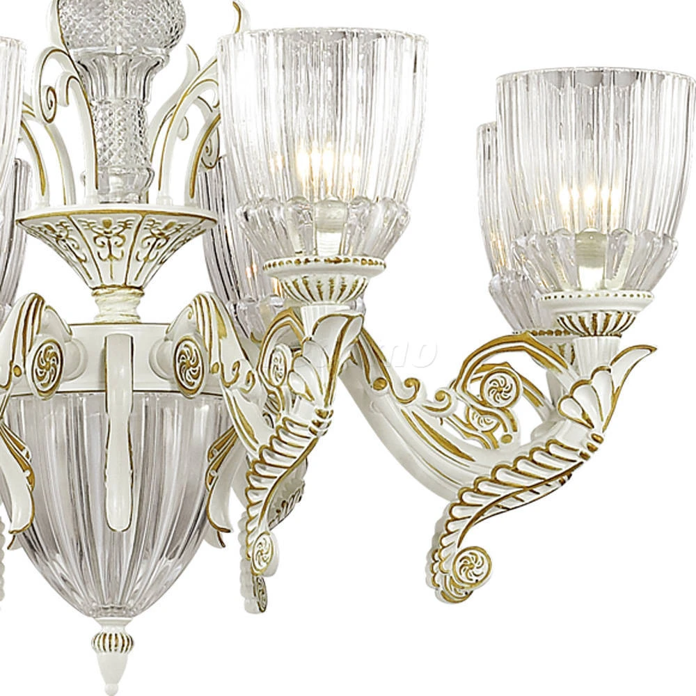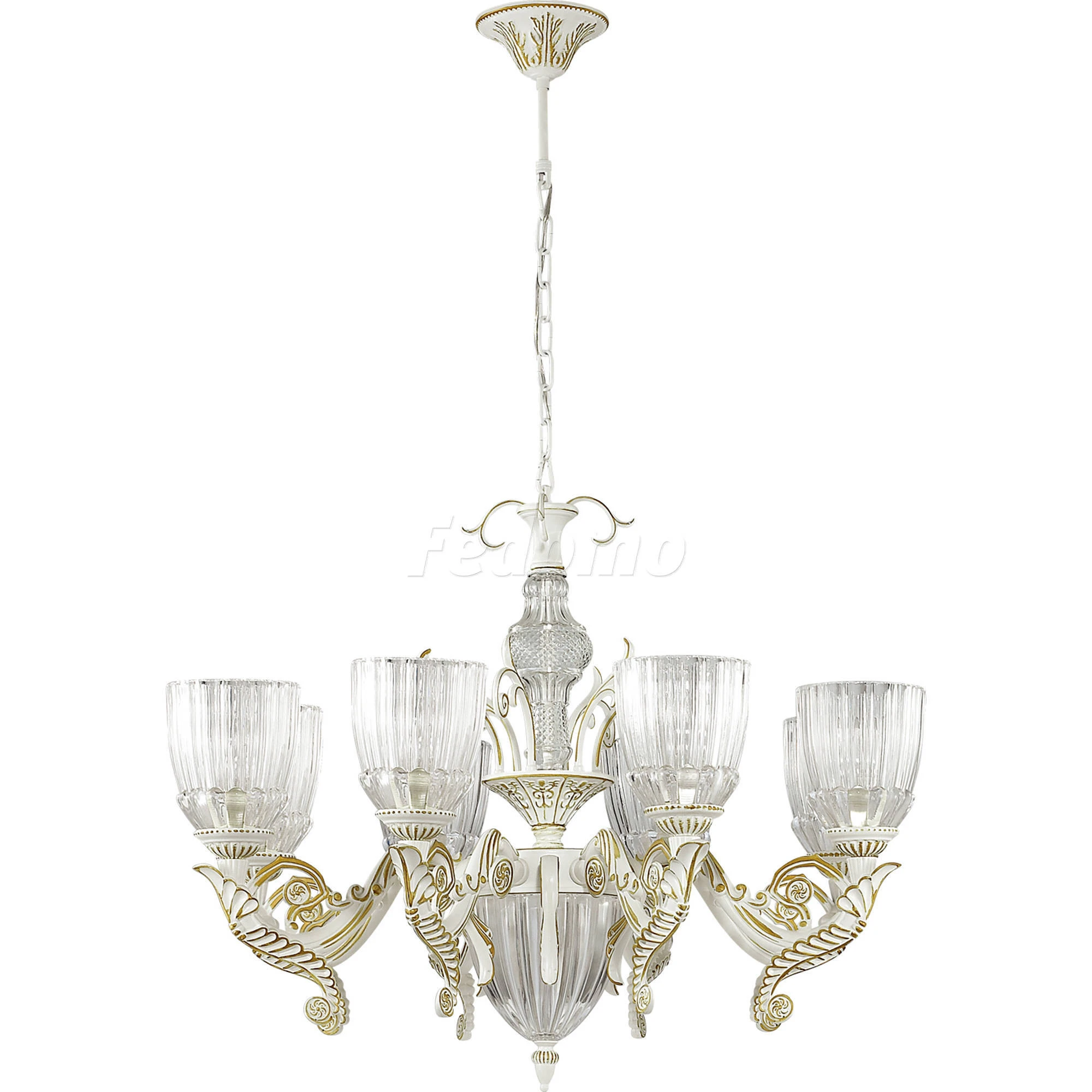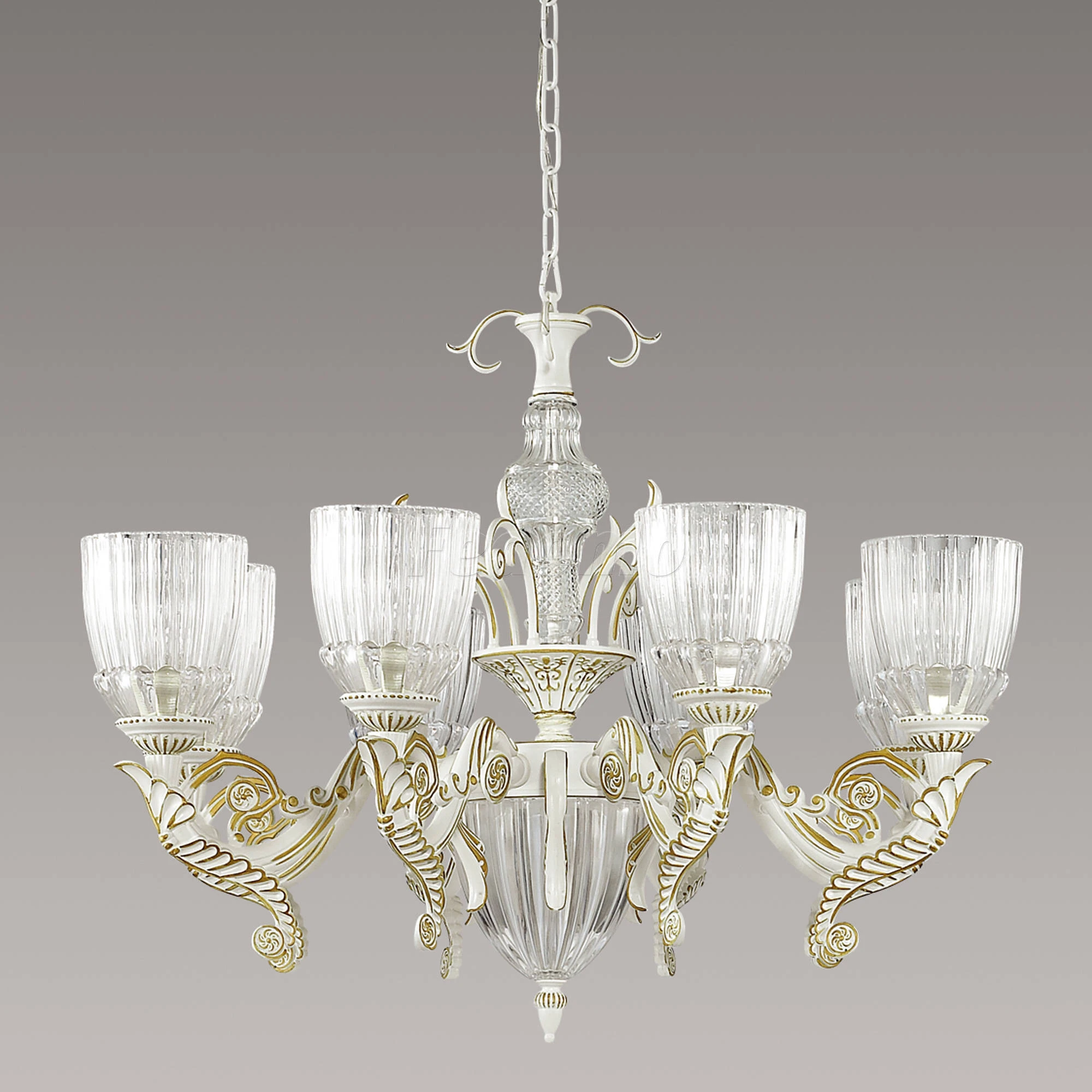 Материалы исполнения арматура, декор: металл, резные элементы на рожках; плафон: стекло. Цвет арматуры белый. Плафон в цвете: прозрачный. Декор декоративная арматура, материал декора полирезина, цвет белый. Эффектная люстра 3942/8 серии Capri в греческом стиле - это классика, не теряющая актуальности. Арматура светильника, а также массивные фигурные рожки окрашены в белый цвет и покрыты золотой патиной. Люстру украшают крупный декор в виде листьев, стилизованных под античность. Плафоны, выполненные из дорогого рифленого стекла, напоминают о древних чашах для вина. Бело-золотистая гамма цветов в сочетании с прозрачным стеклом смотрится легко, гармонично, и способна украсить своим видом любое помещение. Цоколь E14. Мощность 8*40W. Нет ламп в комплекте. Наименование 3942/8 ODL18 379 бел/зол.патина/прозрачн Люстра IP20 E14 8*40W 220V CAPRI.