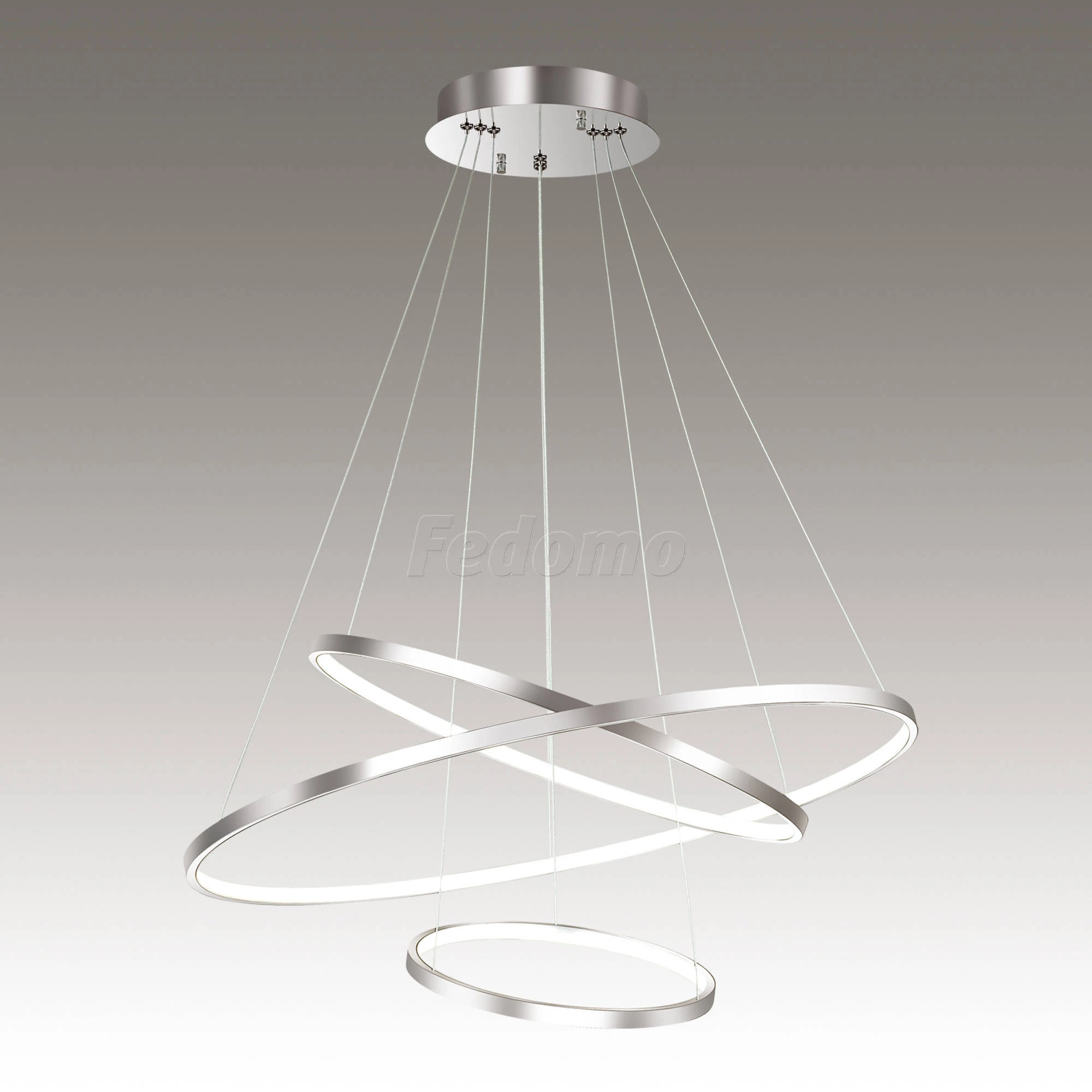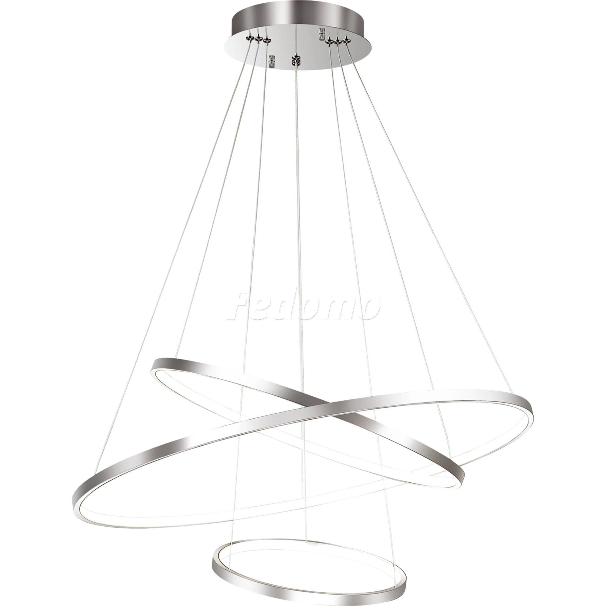 Материалы исполнения арматура: металл; плафон: алюминий. Цвет арматуры хром. Плафон в цвете: хром. Люстра 3963/99L серии Saturno выполнена из металла и имеет три кольца разного диаметра, свисающие на тонких нитях с металлического основания. Конструкция светильника на вид необычайно проста и одновременно удивительна. Парящие, словно в невесомости, тонкие кольца обладают мягким фантастическим светом, который придает помещению уютную атмосферу и неповторимый вид. Люстра станет отличным дополнением и самым оригинальным предметом декора в стиле хай-тек. Цоколь LED. Мощность 114W. Наименование 3963/99L ODL18 038 хром Люстра IP20 LED 114W SATURNO.