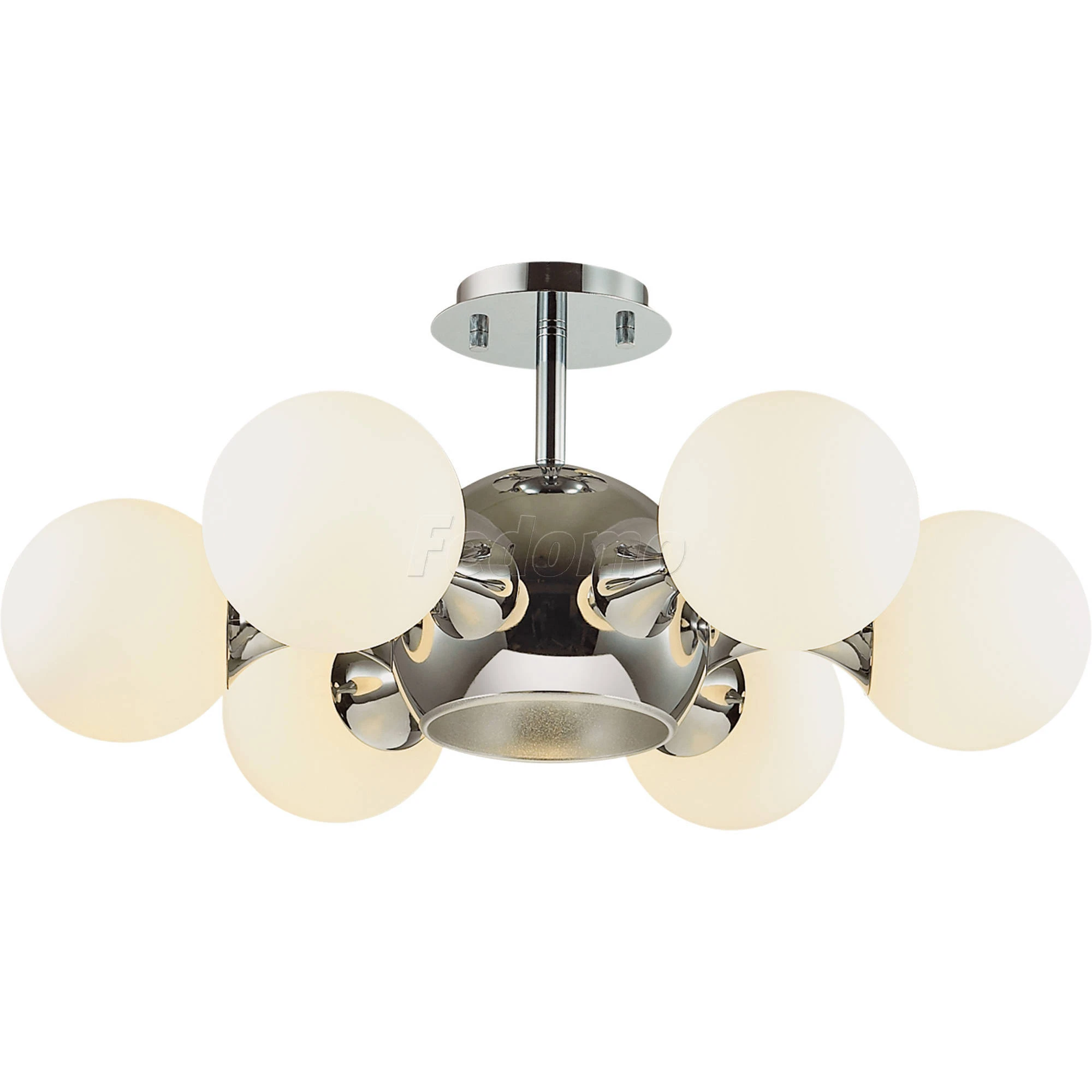Материалы исполнения арматура: металл; плафон: стекло. Цвет арматуры хром. Плафон в цвете: белый. Люстра 3972/7C серии Molla состоит из хромированной металлической арматуры и белых плафонов из стекла с матовым напылением. Люстра обладает эффектным цветовым сочетанием и ярким, запоминающимся дизайном. Элементы в виде сфер на основании с глянцевым хромовым блеском дополнены круглыми плафонами, что делает светильник интересным, модным и актуальным. Цоколь E27. Мощность 1*60W. Цоколь E14. Мощность 6*40W. Нет ламп в комплекте. Наименование 3972/7C ODL18 144 хром/белый Люстра потолочная IP20 E27, E14 60W, 6*40W 220V MIOLLA.