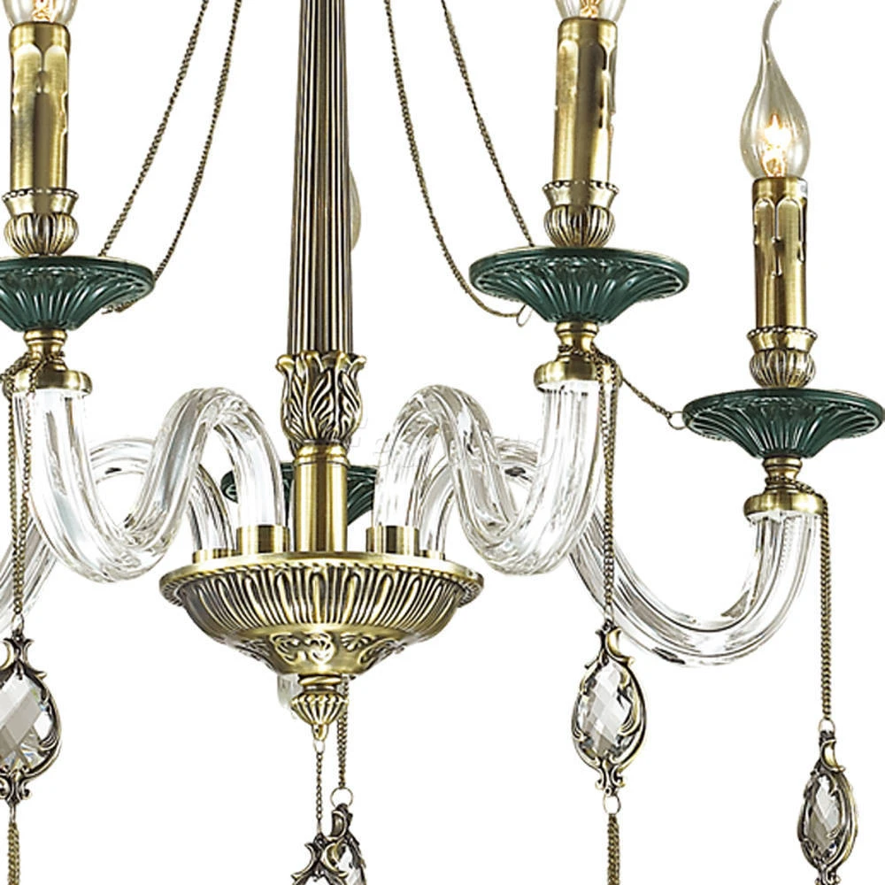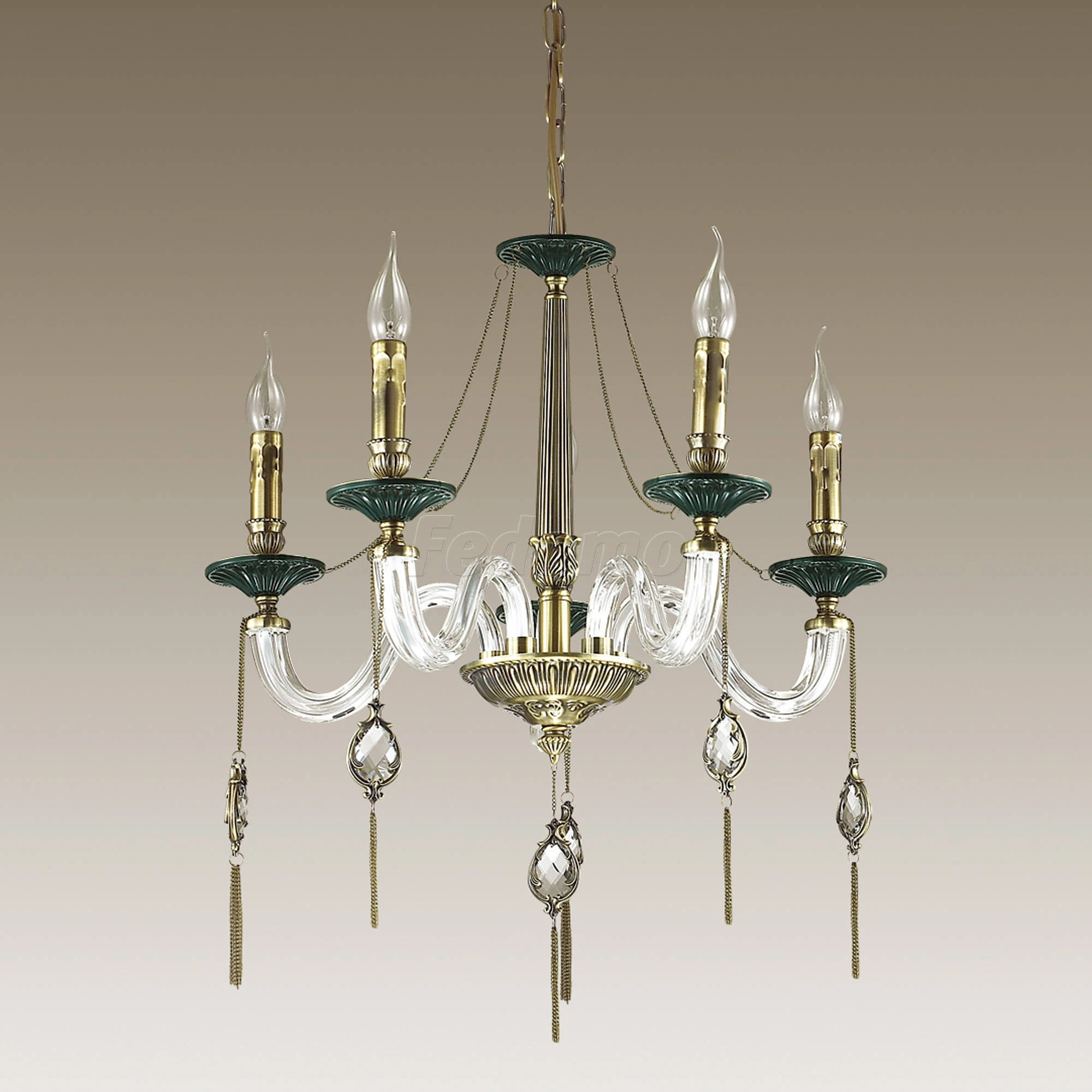 Материалы исполнения арматура, декор: металл, стекло, хрусталь, металлические подвески. Цвет арматуры золото. Декор подвеска, материал декора металл, хрусталь, цвет прозрачный. Грациозная люстра 3984/5 серии Vienna выполнена в классическом стиле. Люстру украшают прозрачные стеклянные элементы, металлическая арматура цвета золото, а также тонкие декоративные цепочки, придающие светильнику легкость, изящество и особое очарование. Темно-зеленые декоративные вставки - важный элемент и главная изюминка светильника, придающая ему невероятную выразительность, индивидуальность и шик. Цоколь E14. Мощность 5*40W. Нет ламп в комплекте. Наименование 3984/5 ODL18 373 бронзов/прозрачн/зелен/хрусталь/металл.подв Люстра IP20 E14 5*40W 220V VIENNA.