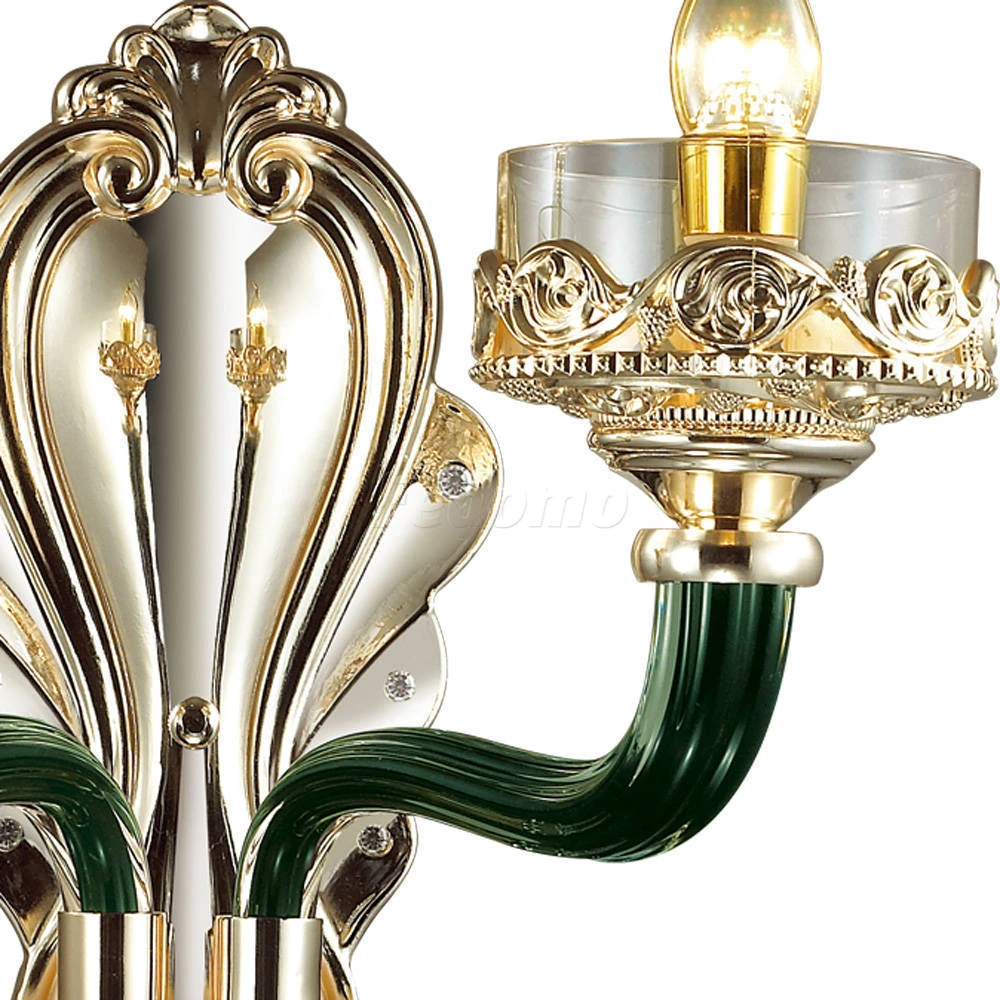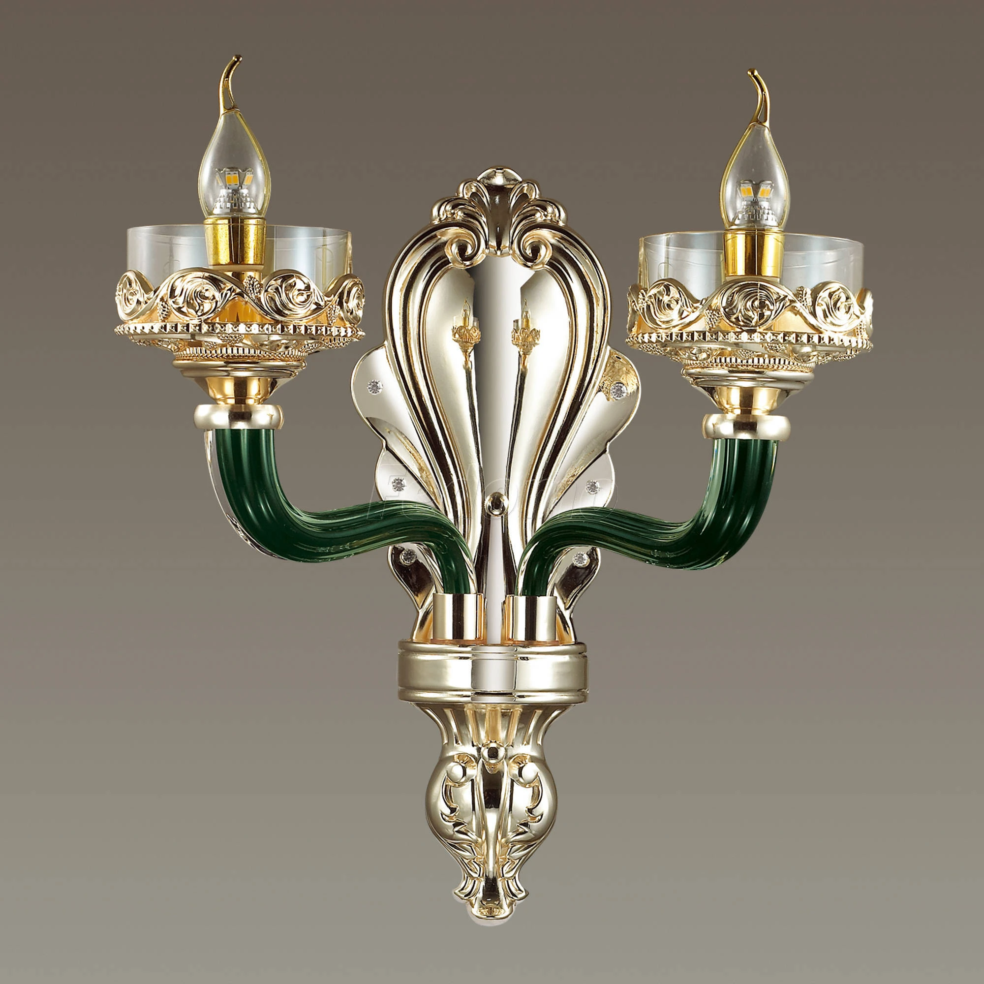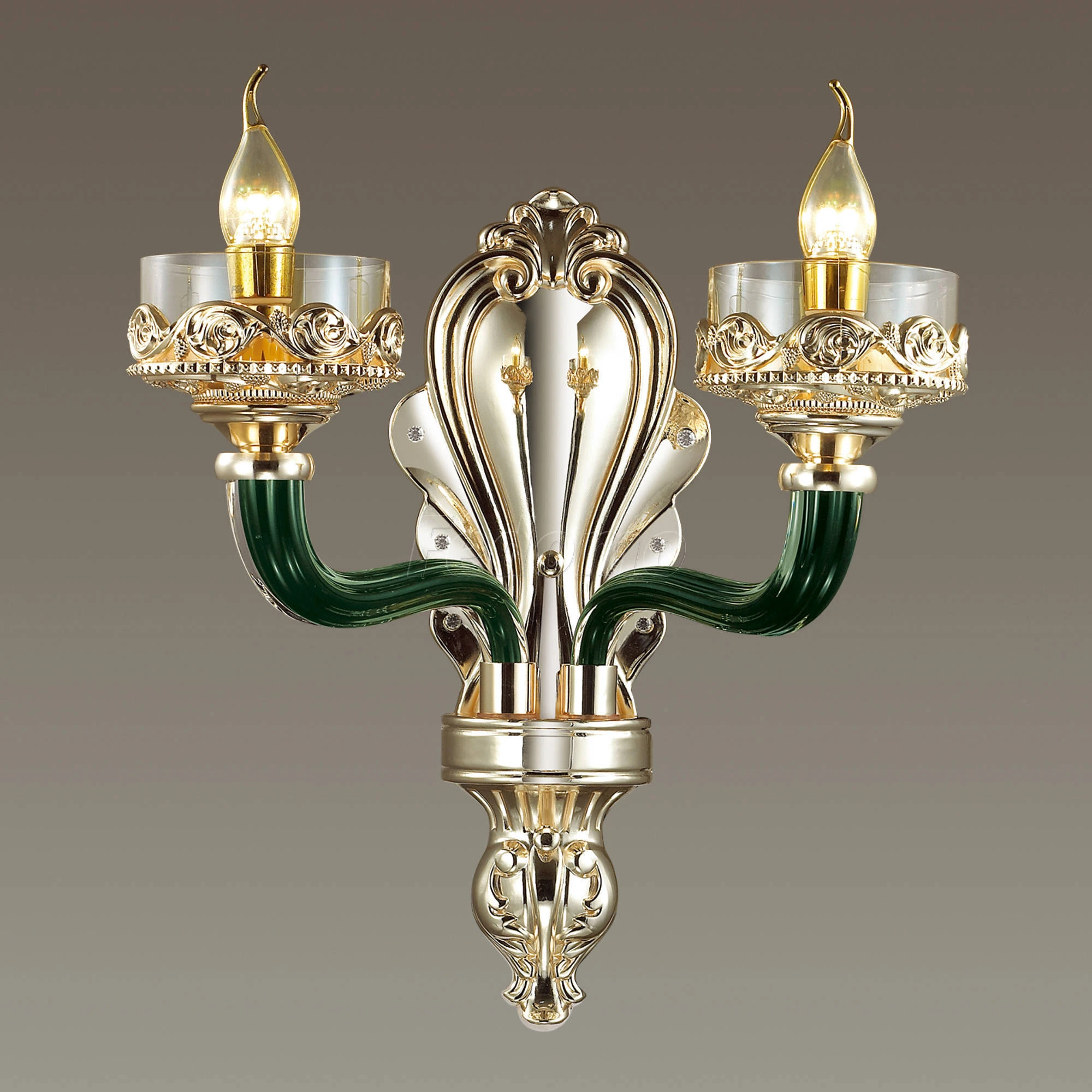 Материалы исполнения арматура, декор: металл, стекло; плафон: стекло. Цвет арматуры разноцветный. Особенность: для использования со скрытой проводкой. Бра 4001/2W серии Barclay отличает красота и безупречность. Выполненное из стекла изумрудного оттенка в сочетании с цветом "шампань", бра наполняет помещение изысканным шармом и благородным сиянием. Невероятно красивый светильник, сочетающий в себе простоту и великолепие цветов и материалов, послужит прекрасным источником света и роскошным предметом интерьера. Цоколь E14. Мощность 2*40W. Нет ламп в комплекте. Наименование 4001/2W ODL18 285 зол/темно-зел/шампань Бра IP20 E14 2*40W 220V BARCLAY.