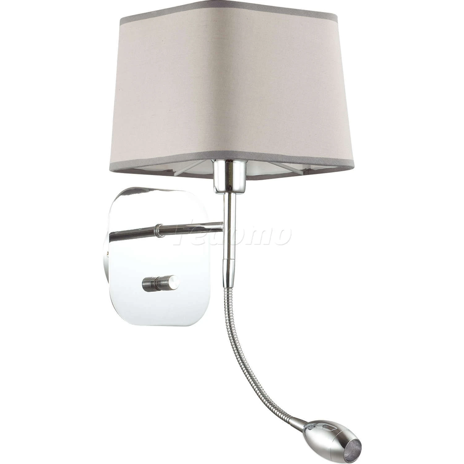 Материалы исполнения арматура: металл; абажур: ткань. Цвет арматуры хром. Плафон в цвете: серый. Серия Edis выполнена из металла цвета хром и дополнена текстильным абажуром приятного оттенка. В модели используется лампа накаливания и светодиодная подсветка на гибкой ножке, с помощью которой можно легко регулировать направление светового потока и тем самым обеспечить комфортное чтение и отдых. Современный дизайн и практичная конструкция подойдут для освещения самых разных зон интерьера и создадут в ней особую уютную атмосферу. Наименование 4115/2W ODL19 222 хром/серый Бра E14, LED 1*40W, 3W EDIS.
