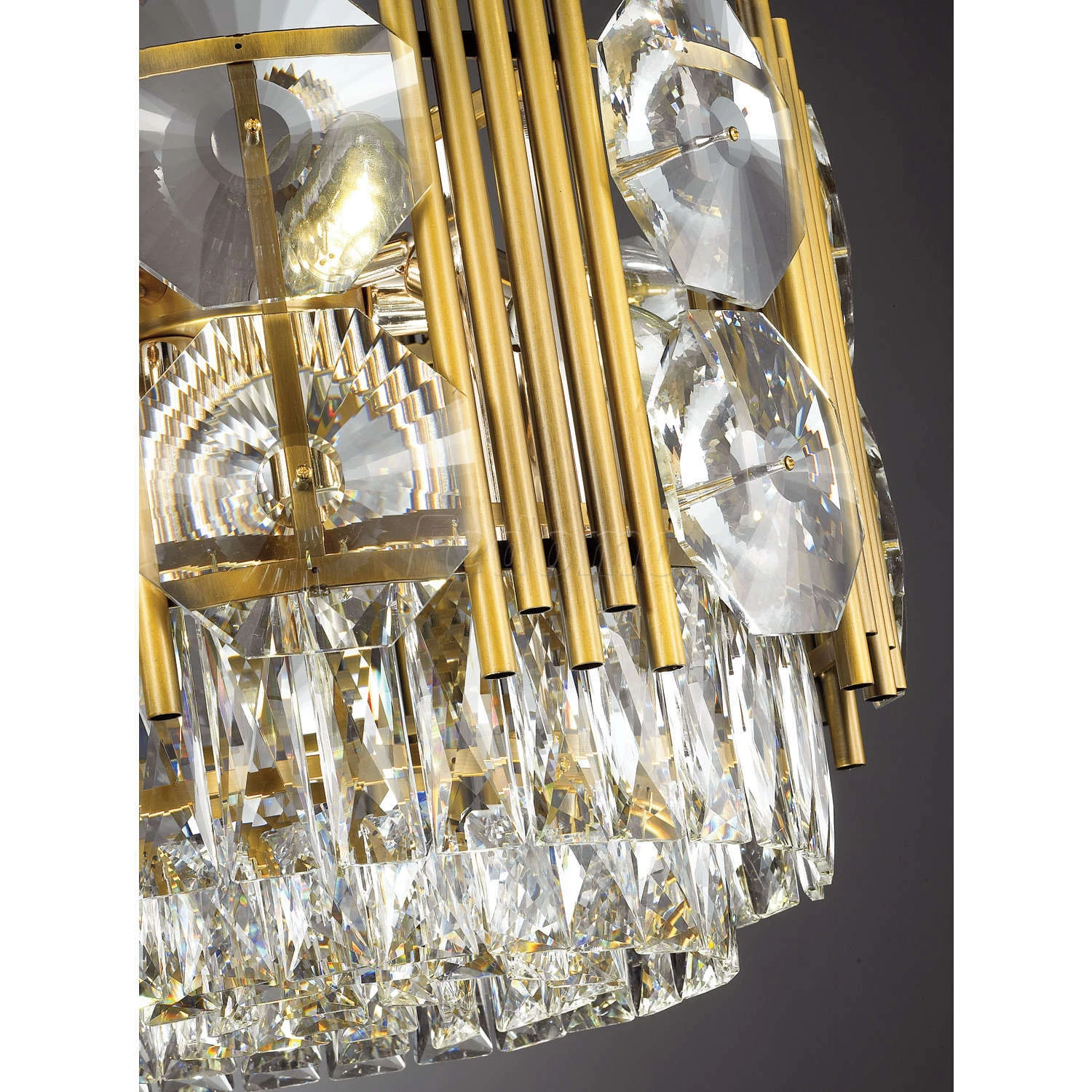 Люстра подвесная хрустальная 4120/10 из серии Pallada от компании Odeon Light регулируется по высоте и устанавливается на металлический крюк. Классическая люстра украшена хрустальными подвесками и прекрасно подойдет в качестве источника основного света для гостиной, над обеденным столом, над кухонным островом, оформленных в стиле арт-деко, американский винтаж. Основной цвет модели - золото, материал арматуры - металл. Люстра имеет 1 декоративный плафон со свечением вниз, материал изготовления - глянцевый хрусталь, металл. Модель оснащена цоколем E14 (10xE14), имеет 10 лампочек с общей мощностью 400W и напряжением 220V. Светильник поддерживает подключение диммера. Габариты: длина - 450 мм, ширина - 450 мм, высота - 650 мм, диаметр - 450 мм. Лампочки в комплект не входят. Лучшая цена и условия доставки на Odeon Light 4120/10 в интернет-магазине Fedomo.ru.