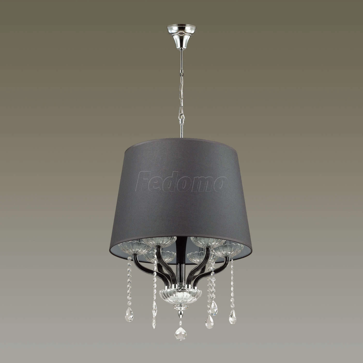 Материалы исполнения арматура, декор: металл, хрусталь; абажур: ткань. Цвет арматуры хром. Плафон в цвете: черный. Декор подвеска, материал декора хрусталь, цвет прозрачный. Люстра Teona состоит из стеклянного основания и обьемного текстильного абажура с теплым, приятным оттенком, обьединяющего несколько стеклянных рожков. Блестящий хром и стекло придают изысканность данному светильнику и прекрасно отражают свет. А форма абажура равномерно освещает как большое пространство комнаты, так и небольшую зону, становясь ее основным декоративным акцентом. Наименование 4194/6 ODL19 276 хром/хрусталь/черный Люстра E14 6*40W TEONA.