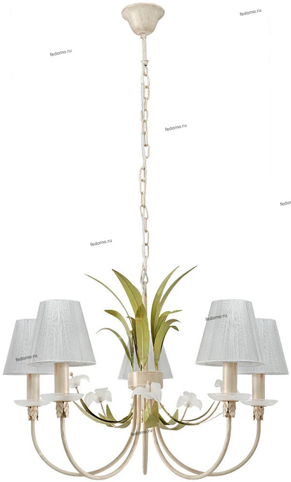 Люстра подвесная 421010705 из серии Букет от компании MW-Light устанавливается на металлический крюк. Классическая люстра с листьями прекрасно подойдет в качестве источника основного света для гостиной, спальни, кухни, оформленных в стиле флористика, прованс. Основной цвет модели - белый, материал арматуры - металл, стекло. Люстра имеет 5 абажуров со свечением вверх, материал изготовления - матовая рельефная ткань. Модель оснащена цоколем E14 (5хE14), имеет 5 лампочек с общей мощностью 300W и напряжением 220V. Светильник поддерживает подключение диммера. Габариты: высота - 800 мм, диаметр - 620 мм. Лампочки в комплект не входят. Лучшая цена и условия доставки на MW-Light 421010705 в интернет-магазине Fedomo.ru.