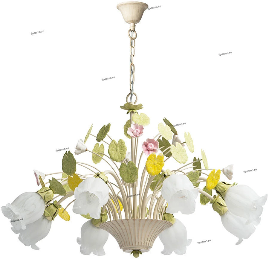 Люстра подвесная 421013208 из серии Букет от компании MW-Light регулируется по высоте и устанавливается на металлический крюк. Люстра с цветами и листьями прекрасно подойдет в качестве источника основного света для гостиной, спальни, кухни, оформленных в стиле флористика, прованс. Основной цвет модели - белый, материал арматуры - металл, керамика. Люстра имеет 8 плафонов со свечением вниз, материал изготовления - матовое стекло. Модель оснащена цоколем E14 (8хE14), имеет 8 лампочек с общей мощностью 320W и напряжением 220V. Светильник поддерживает подключение диммера. Габариты: высота - 1150 мм, диаметр - 720 мм, длина подвеса - 500 мм. Лампочки в комплект не входят. Лучшая цена и условия доставки на MW-Light 421013208 в интернет-магазине Fedomo.ru.