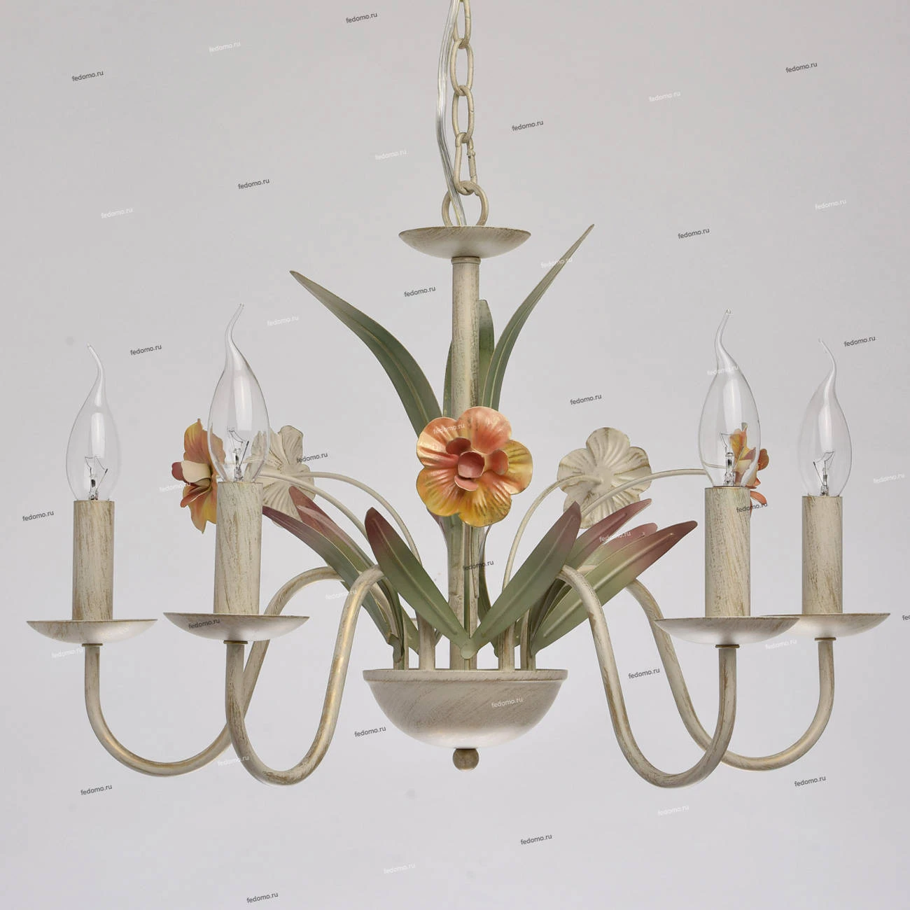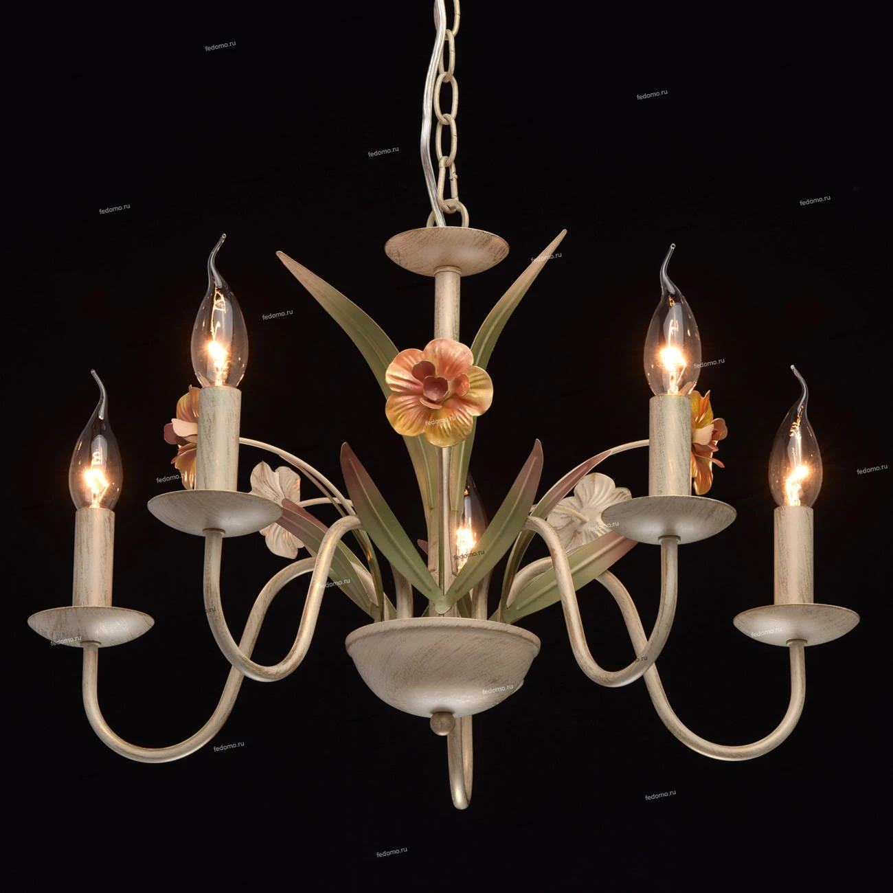 Люстра подвесная 421015505 из серии Букет от компании MW-Light регулируется по высоте и устанавливается на металлический крюк. Классическая люстра в виде подсвечника с цветами и листьями прекрасно подойдет в качестве источника основного света для гостиной, спальни, кухни, оформленных в стиле флористика, прованс. Основной цвет модели - белый, материал арматуры - металл. Модель оснащена цоколем E14 (5xE14), имеет 5 лампочек с общей мощностью 300W и напряжением 220V. Светильник поддерживает подключение диммера. Габариты: высота - 750 мм, диаметр - 560 мм, длина подвеса - 240 мм. Лучшая цена и условия доставки на MW-Light 421015505 в интернет-магазине Fedomo.ru.