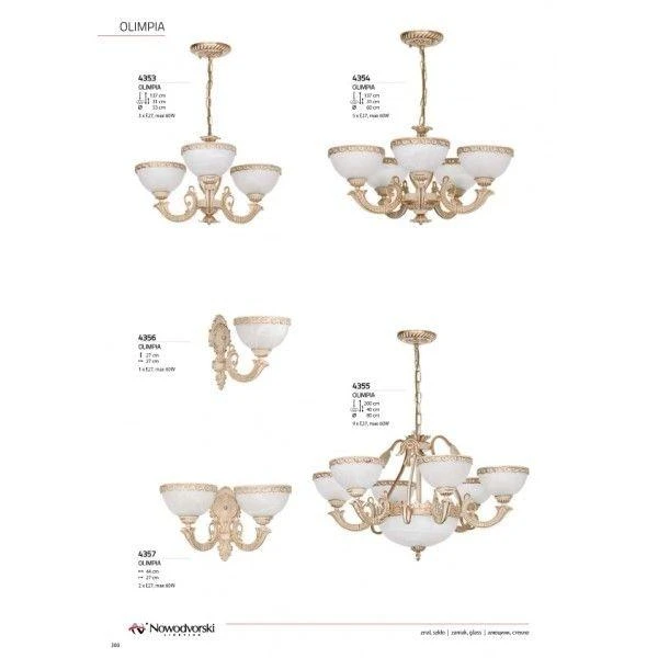 Люстра подвесная 4353 из серии Olimpia от компании Nowodvorski регулируется по высоте и устанавливается на монтажную пластину. Классическая люстра прекрасно подойдет в качестве источника основного света для гостиной, оформленной в стиле ампир. Основной цвет модели - белый, материал арматуры - металл. Люстра имеет 3 плафона со свечением вверх, материал изготовления - матовое стекло. Модель оснащена цоколем E27 (3xE27), имеет 3 лампочки с общей мощностью 180W и напряжением 220V. Светильник поддерживает подключение диммера. Габариты: диаметр - 530 мм. Лампочки в комплект не входят. Лучшая цена и условия доставки на Nowodvorski 4353 в интернет-магазине Fedomo.ru.