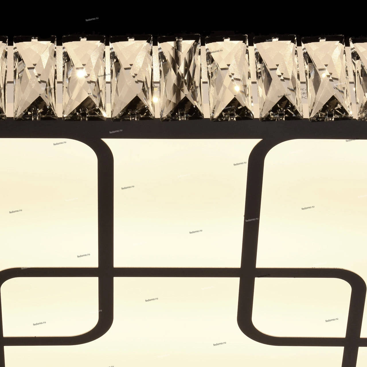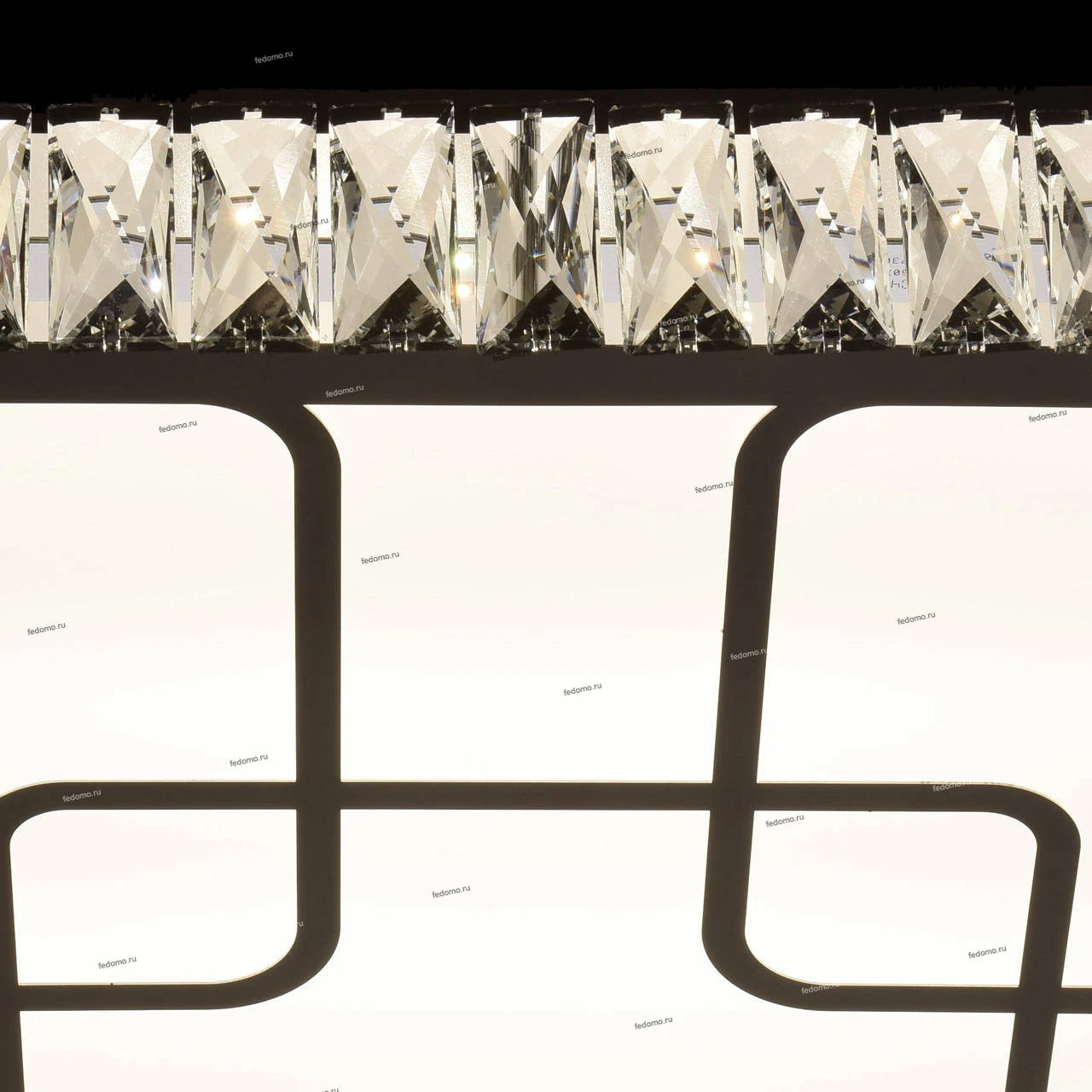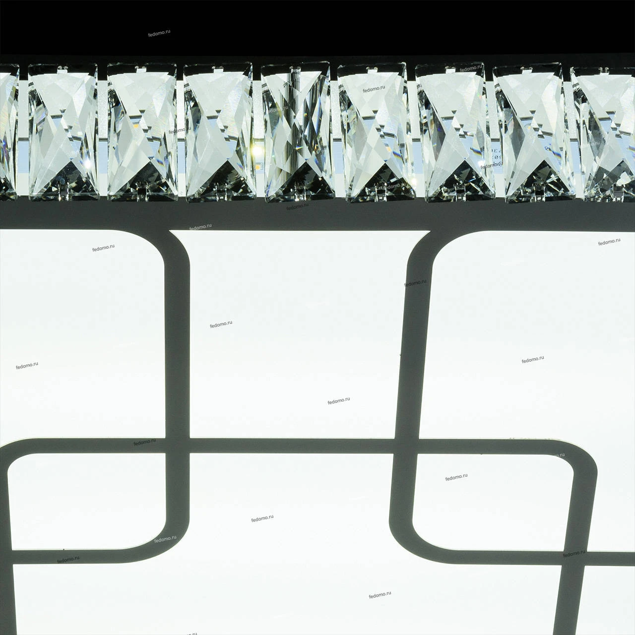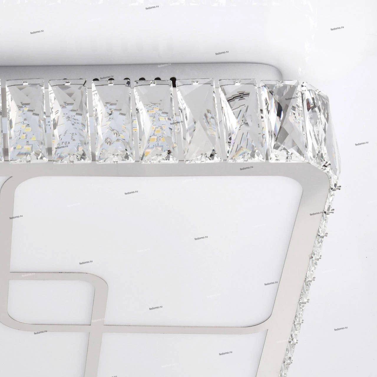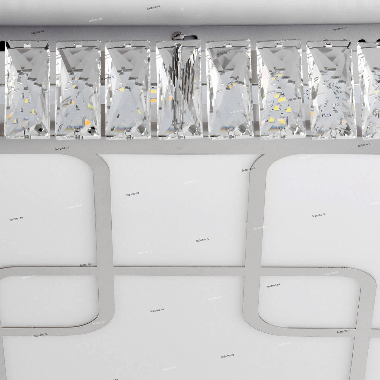 Основание светильника выполнен из сплава металла и окрашен в цвет серебра. Корпус выполнено из отполированной нержавеющей стали и декорировано элементами из хрусталя высотой 75 мм со множественными центрами схождения граней. Плафон светильника выполнен