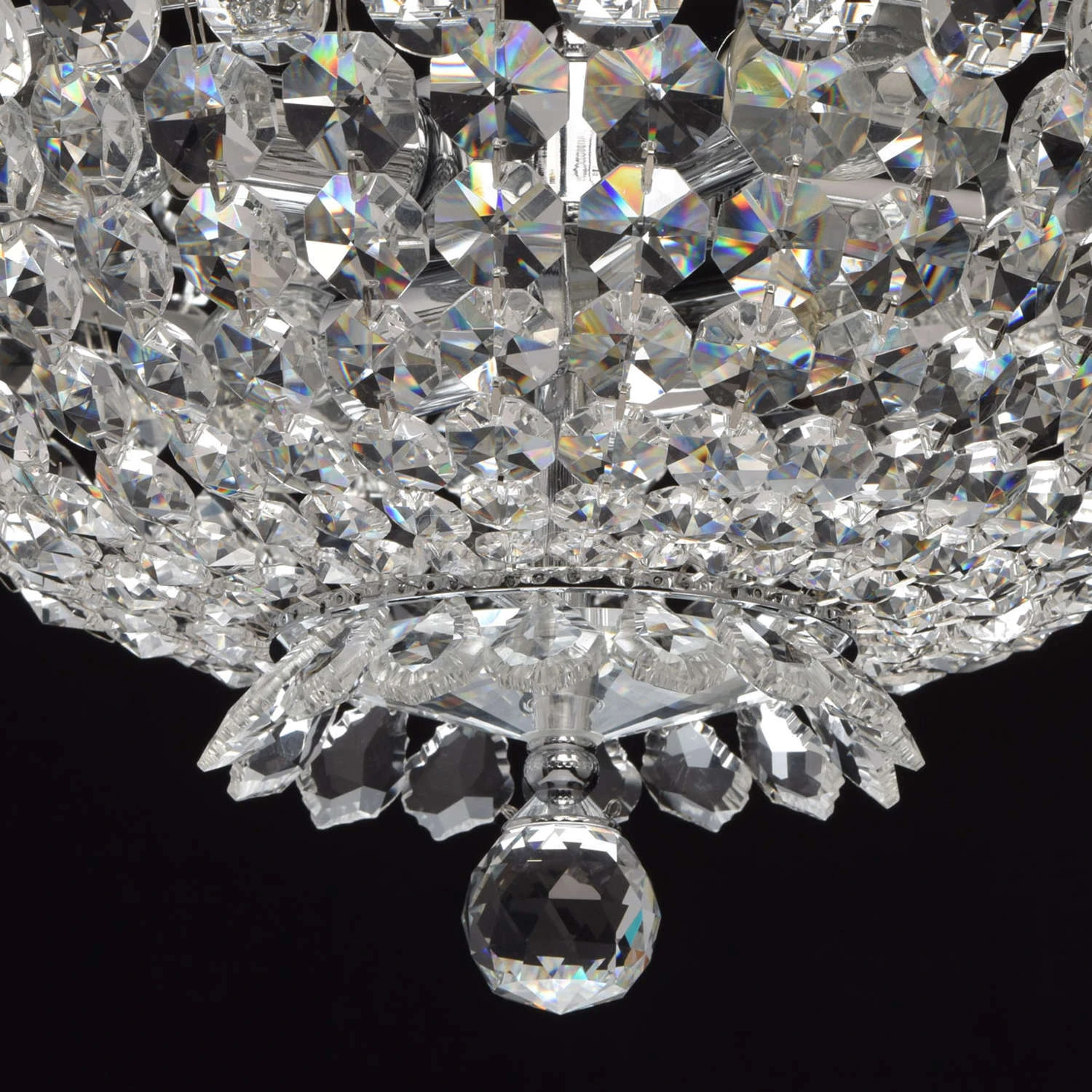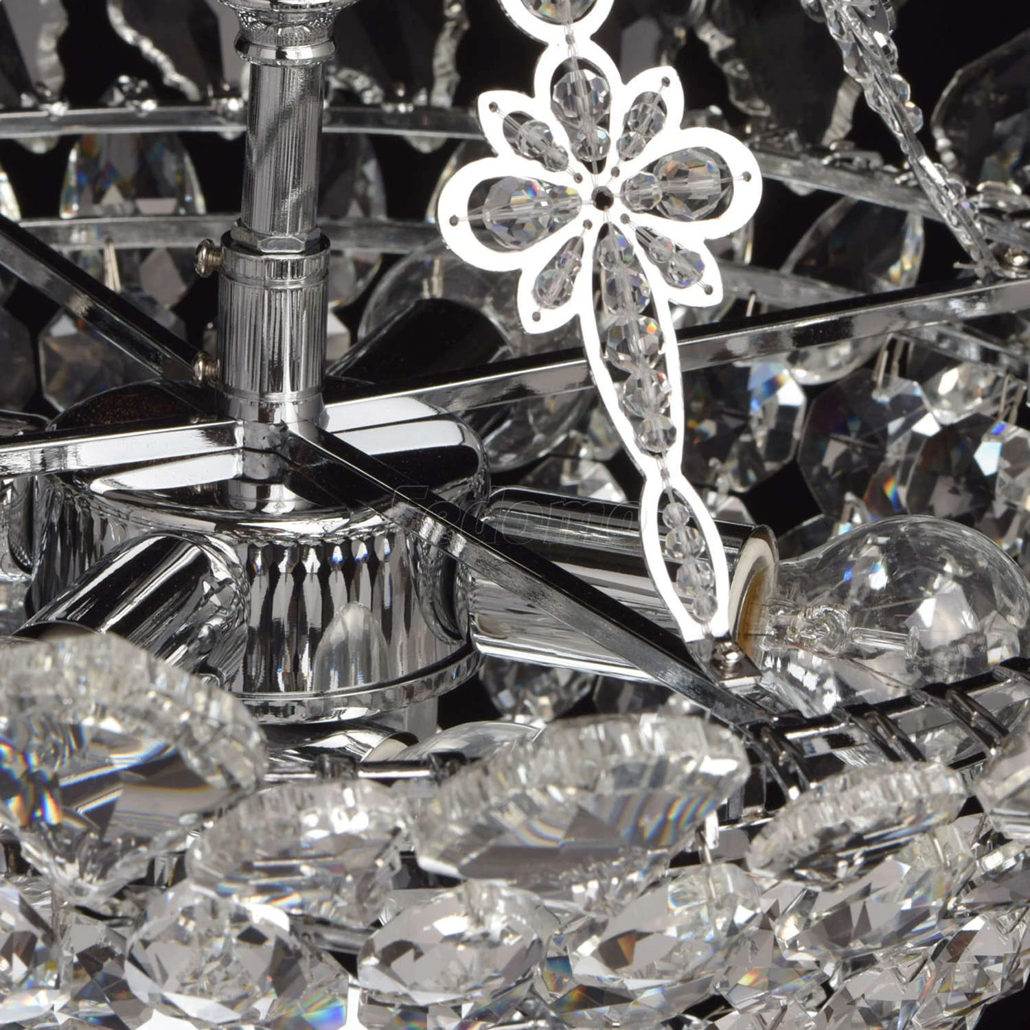 Люстра подвесная 447010306 из серии Патриция от компании MW-Light регулируется по высоте и устанавливается на металлический крюк. Классическая люстра прекрасно подойдет в качестве источника основного света для спальни, зала, оформленных в стиле арт-деко, барокко. Основной цвет модели - хром, материал арматуры - металл. Люстра имеет 1 декоративный плафон, материал изготовления - хрусталь. Модель оснащена цоколем E14 (6xE14), имеет 6 лампочек с общей мощностью 240W и напряжением 220V. Светильник имеет цветовую температуру 2700К и поддерживает подключение диммера. Габариты: высота - 1300 мм, диаметр - 480 мм, длина подвеса - 500 мм. Лампочки в комплект не входят. Лучшая цена и условия доставки на MW-Light 447010306 в интернет-магазине Fedomo.ru.