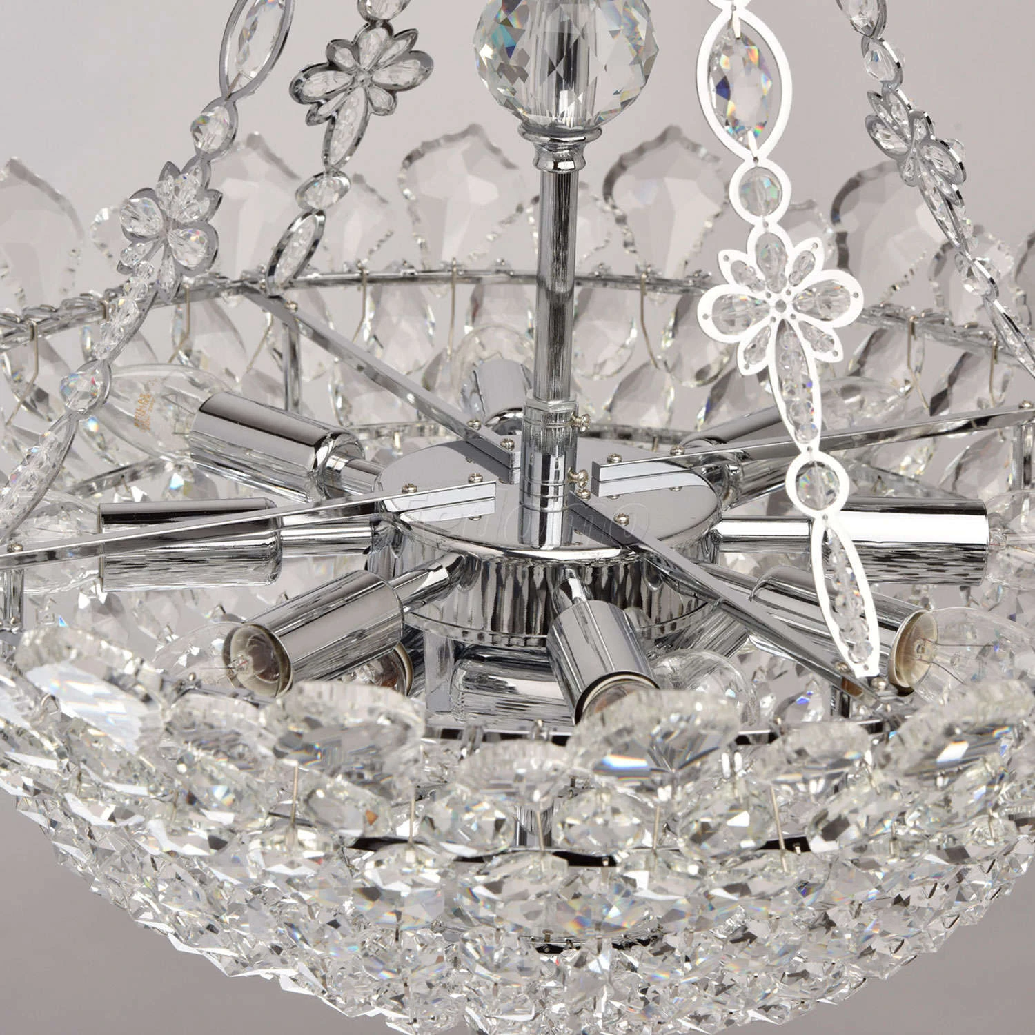 Люстра потолочная 447010912 из серии Патриция от компании MW-Light устанавливается на монтажную пластину. Классическая люстра прекрасно подойдет в качестве источника основного света для гостиной, спальни, зала, оформленных в стиле арт-деко, барокко. Основной цвет модели - хром, материал арматуры - металл. Люстра имеет 1 декоративный плафон, материал изготовления - хрусталь. Модель оснащена цоколем E14 (12xE14), имеет 12 лампочек с общей мощностью 480W и напряжением 220V. Светильник имеет цветовую температуру 2700К и поддерживает подключение диммера. Габариты: высота - 550 мм, диаметр - 600 мм. Лампочки в комплект не входят. Лучшая цена и условия доставки на MW-Light 447010912 в интернет-магазине Fedomo.ru.