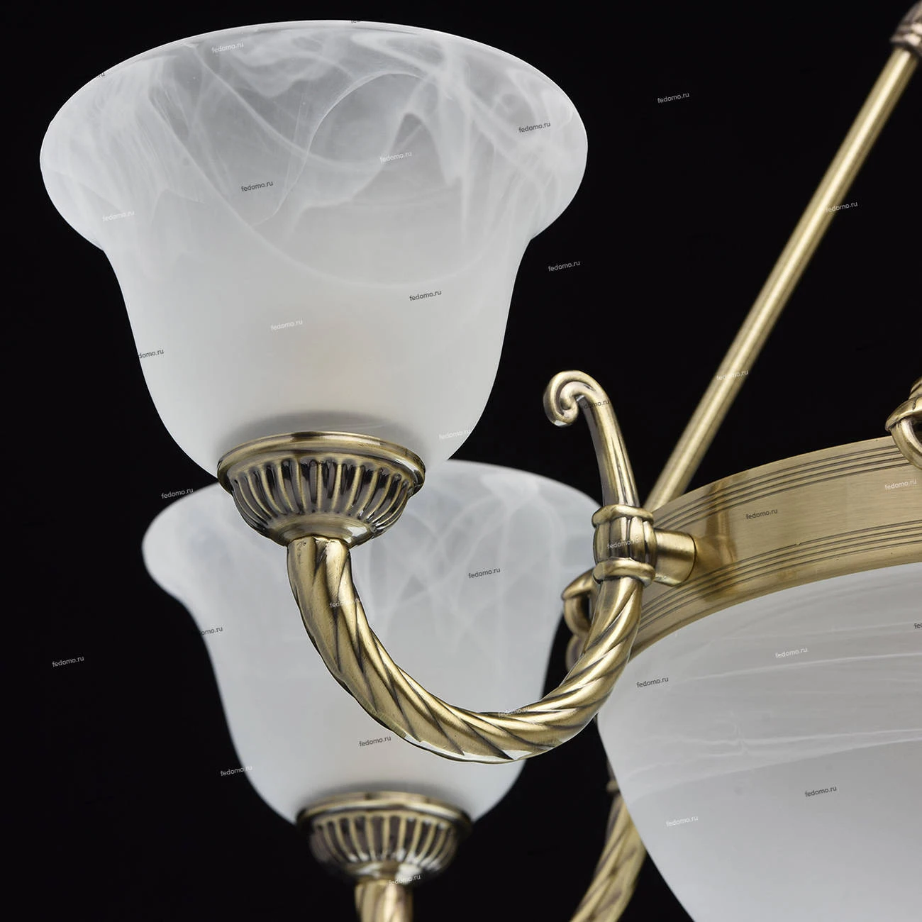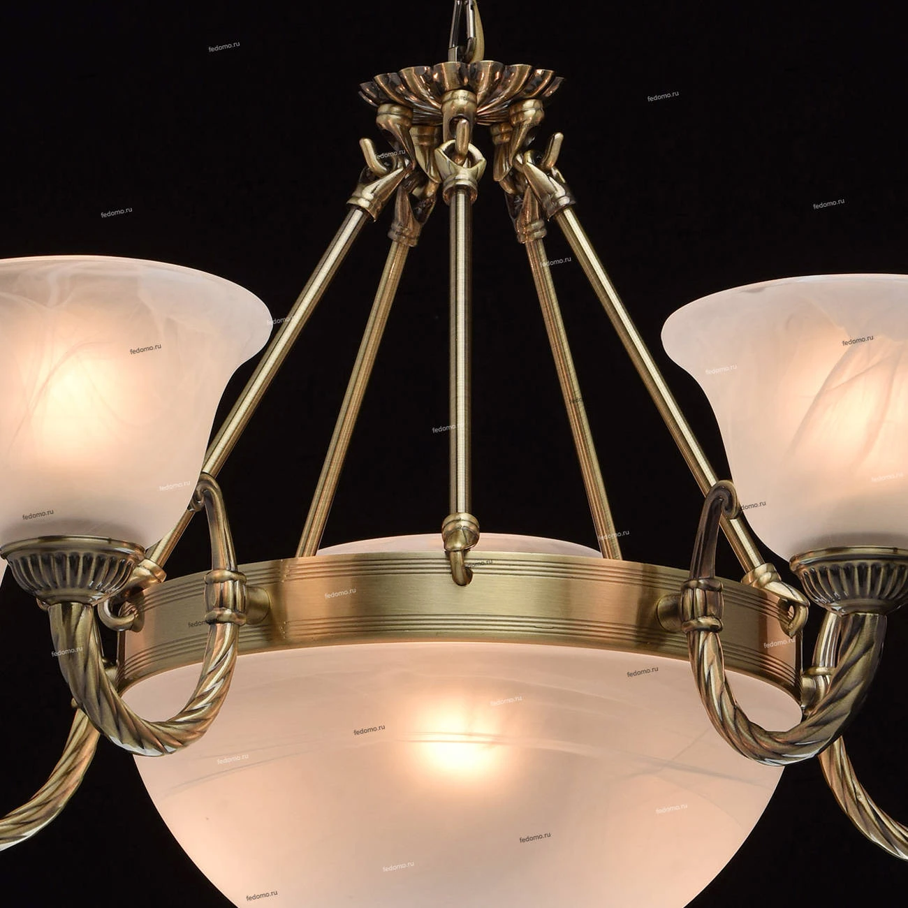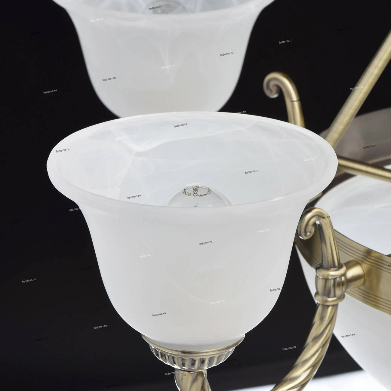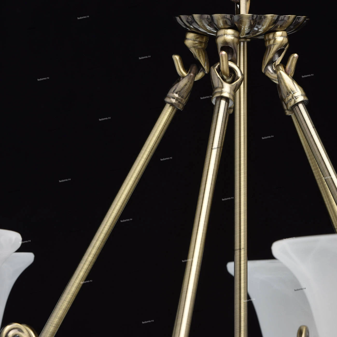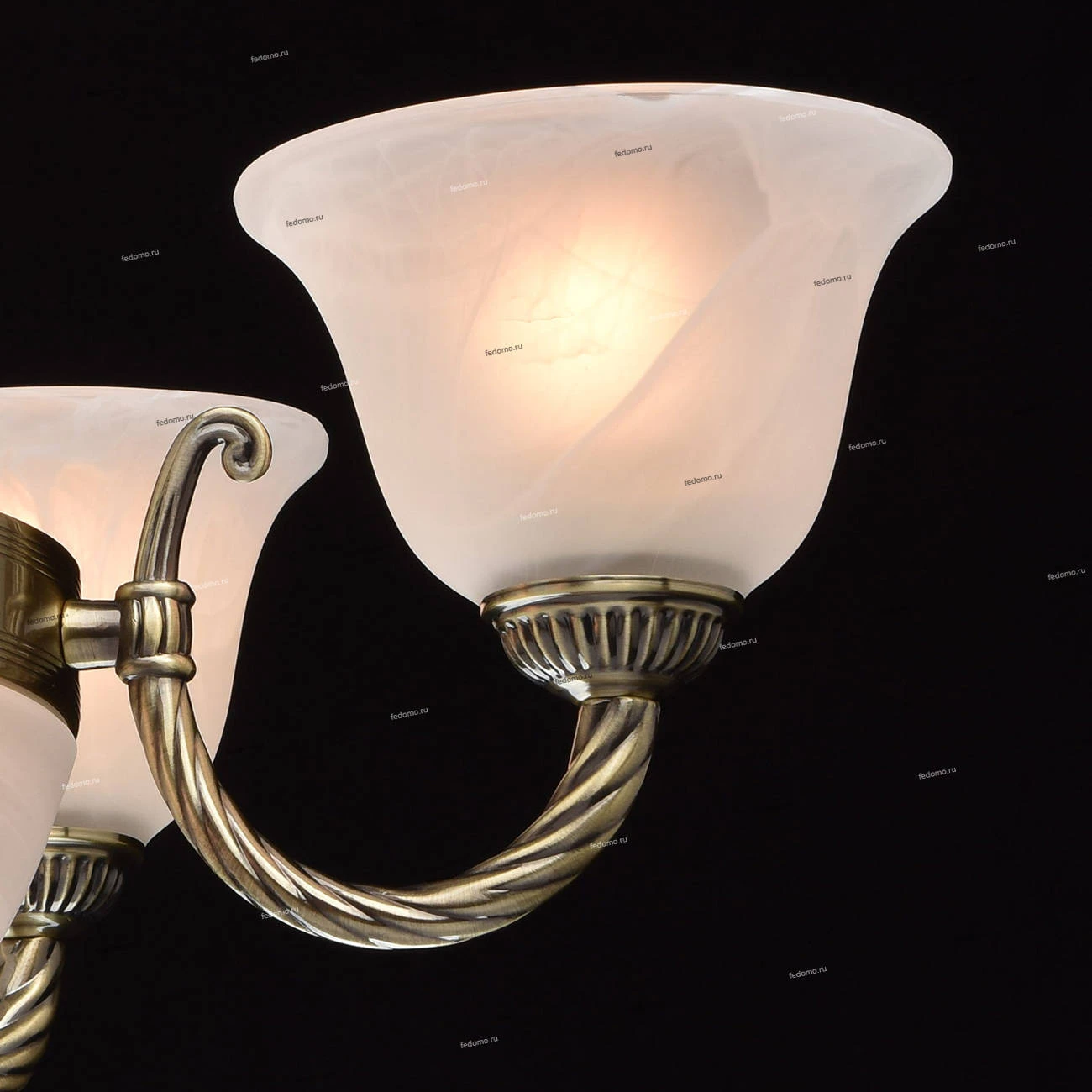 Металлическое основание цвета античной бронзы. Плафоны - опаловое стекло.