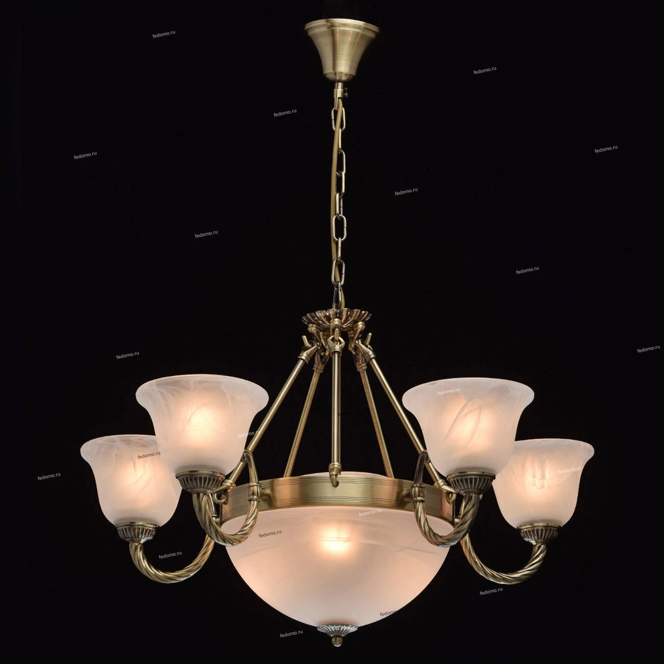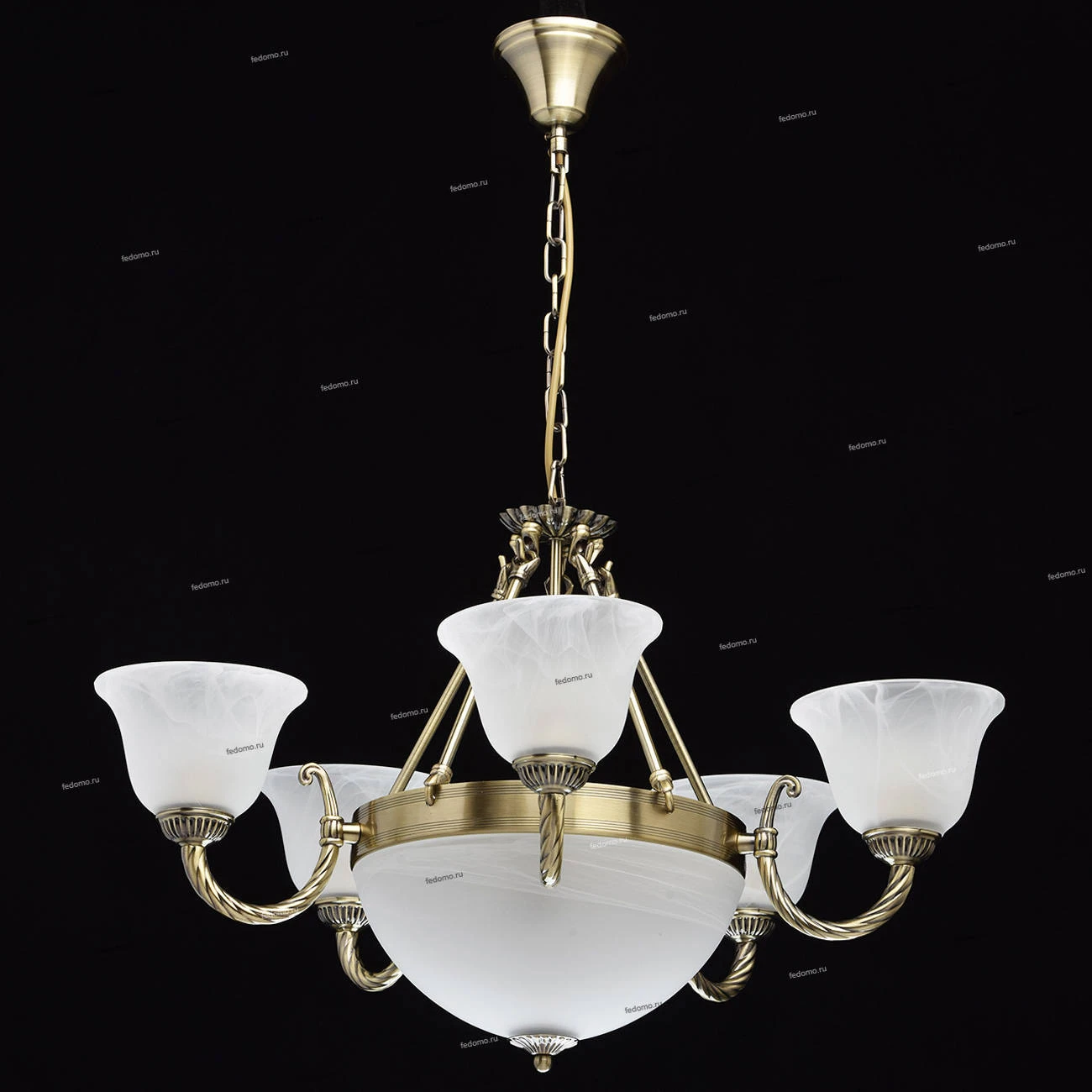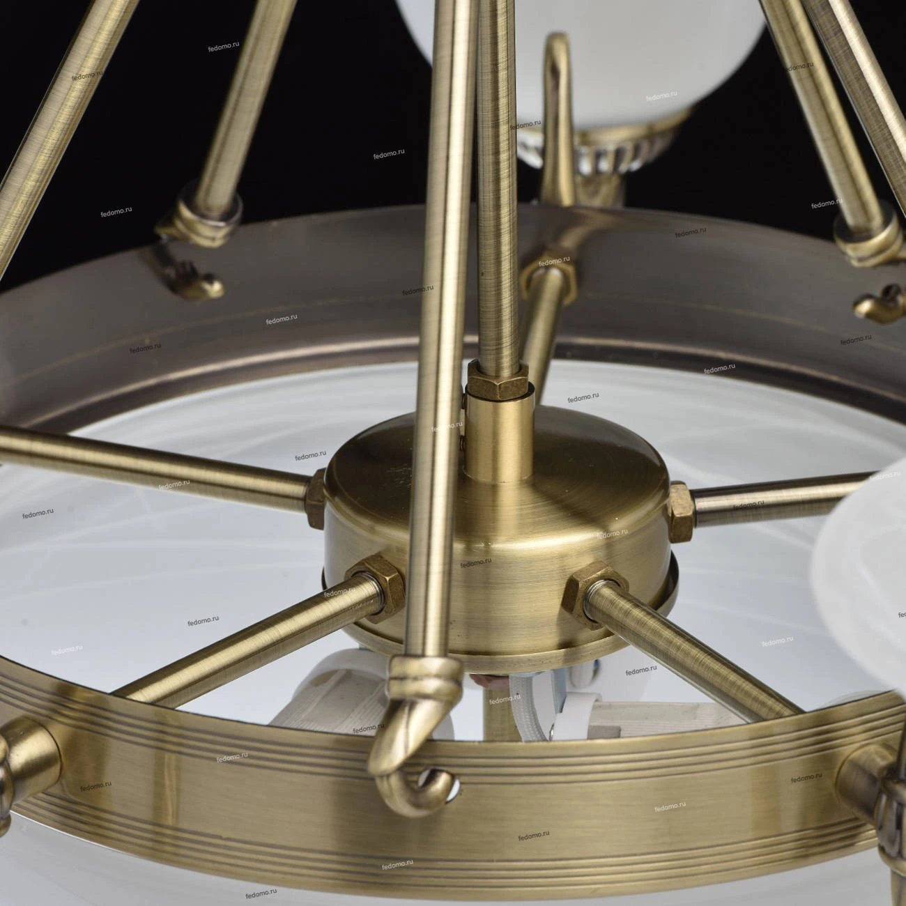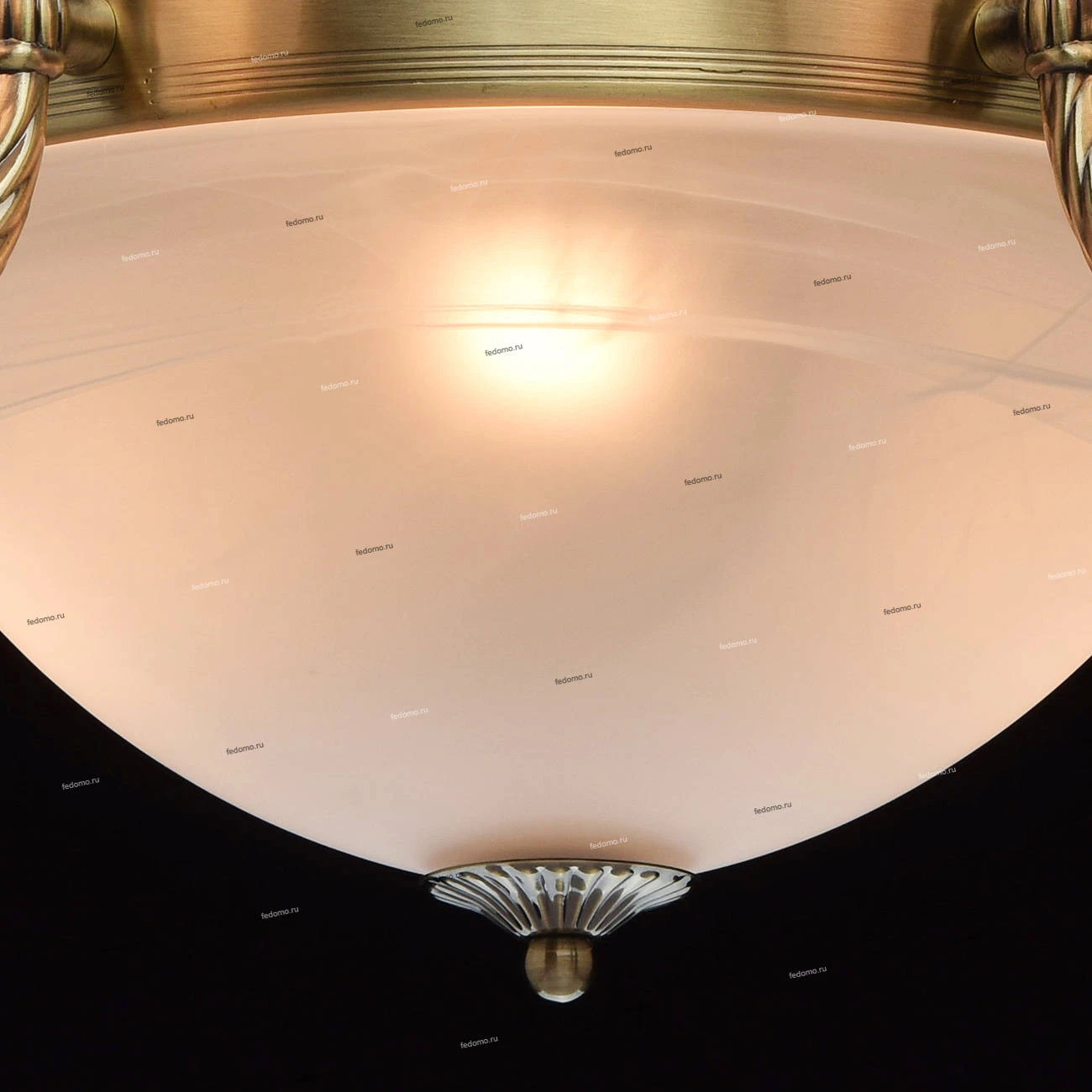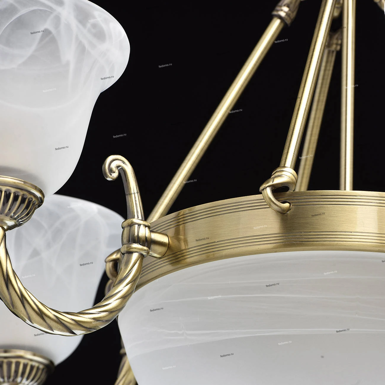 Металлическое основание цвета античной бронзы. Плафоны - опаловое стекло.
