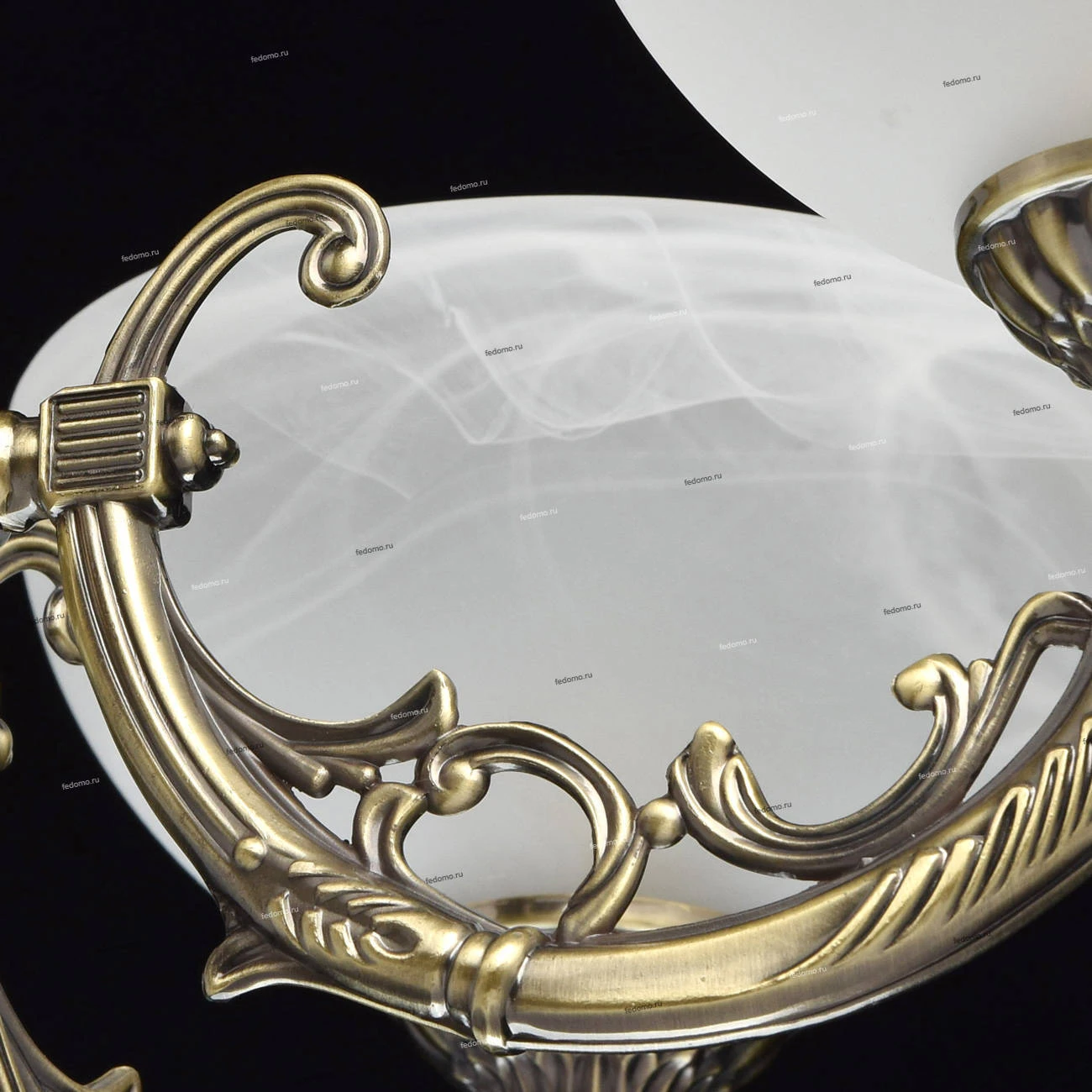 Металлическое основание цвета античной бронзы. Плафоны - опаловое стекло.