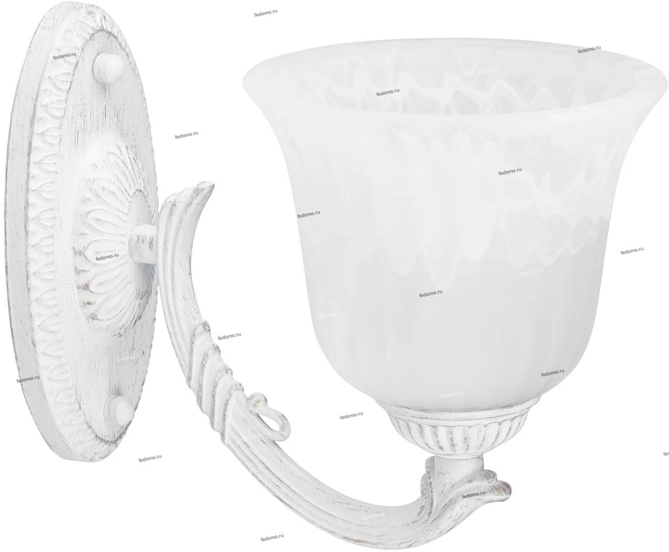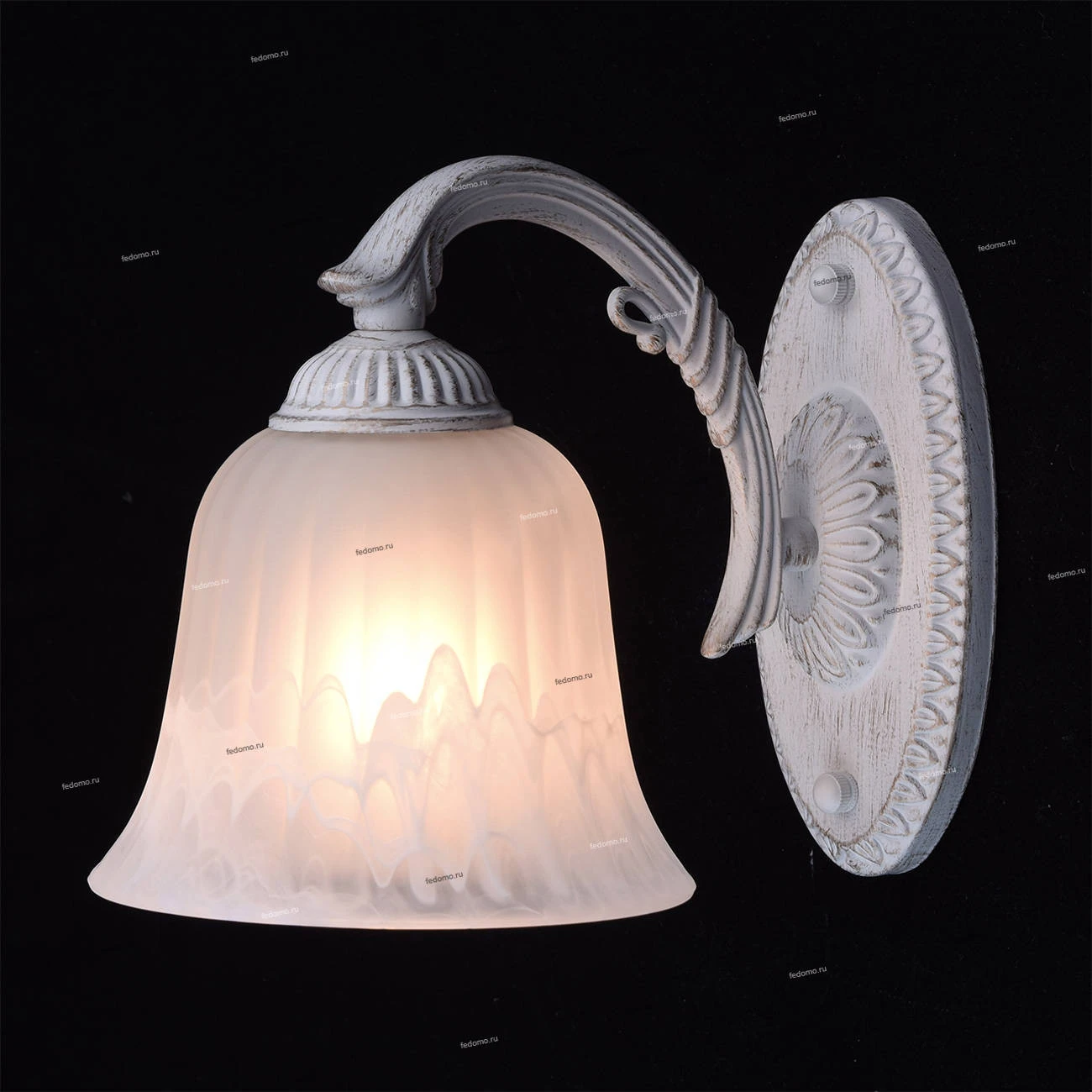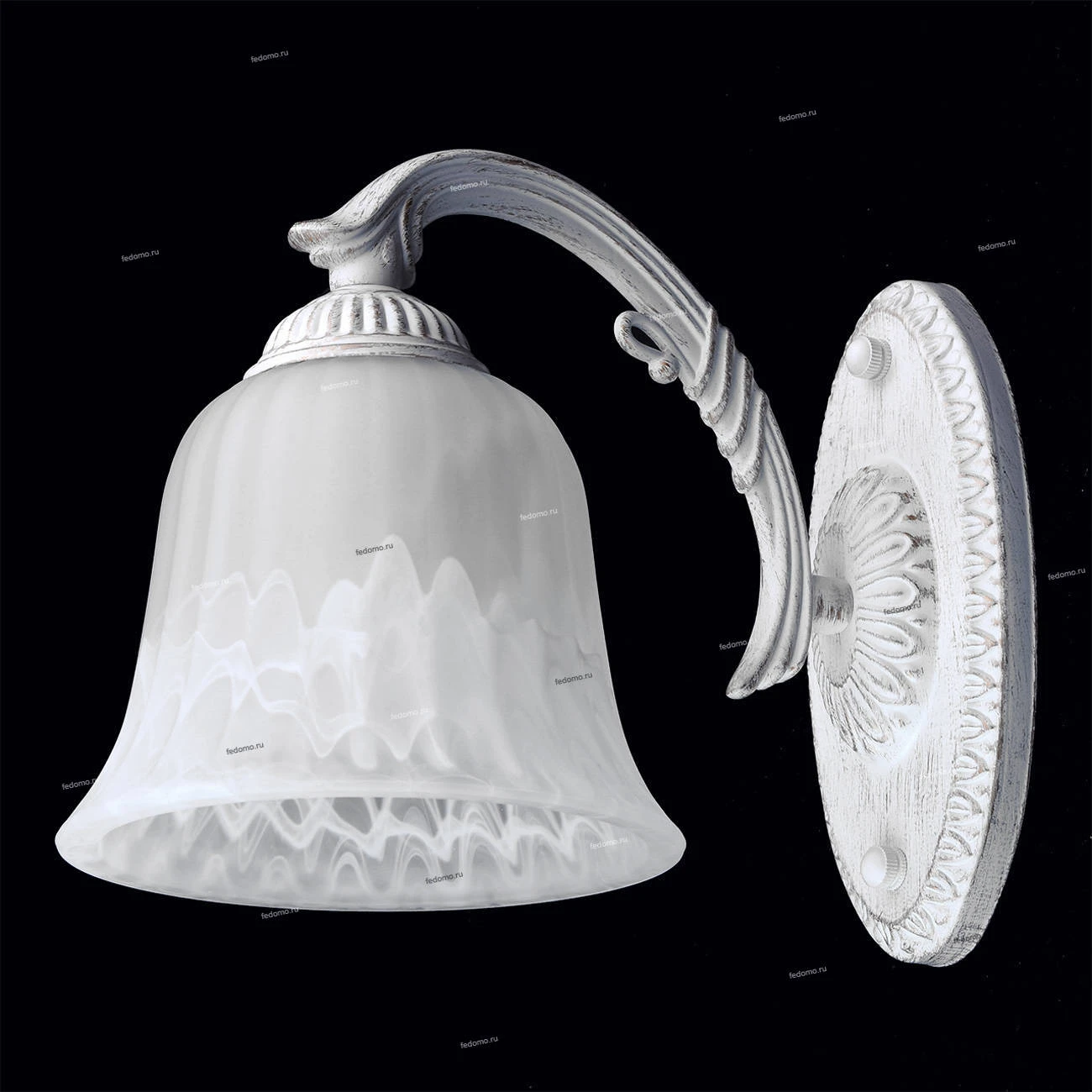 Арматура бра выполнена из комбинации сплавов металлов и обработана по технологии двойного окрашивания: основной цвет золота, декоративный слой - белый матовый с последующим затиранием. Основание выполнено из сплава железа по технологии прессования. Рожок