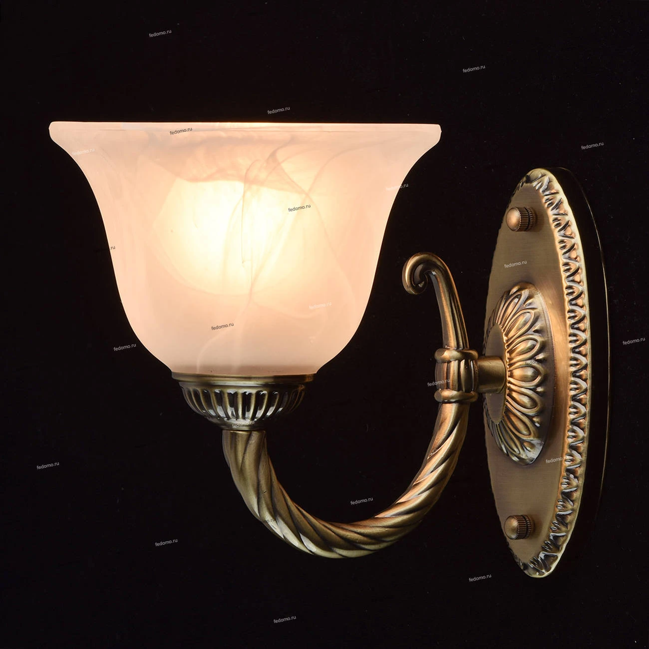 Металлическое основание цвета античной бронзы. Плафоны - опаловое стекло.