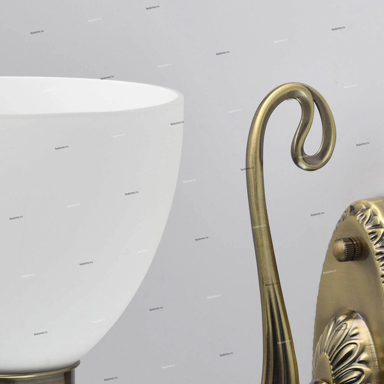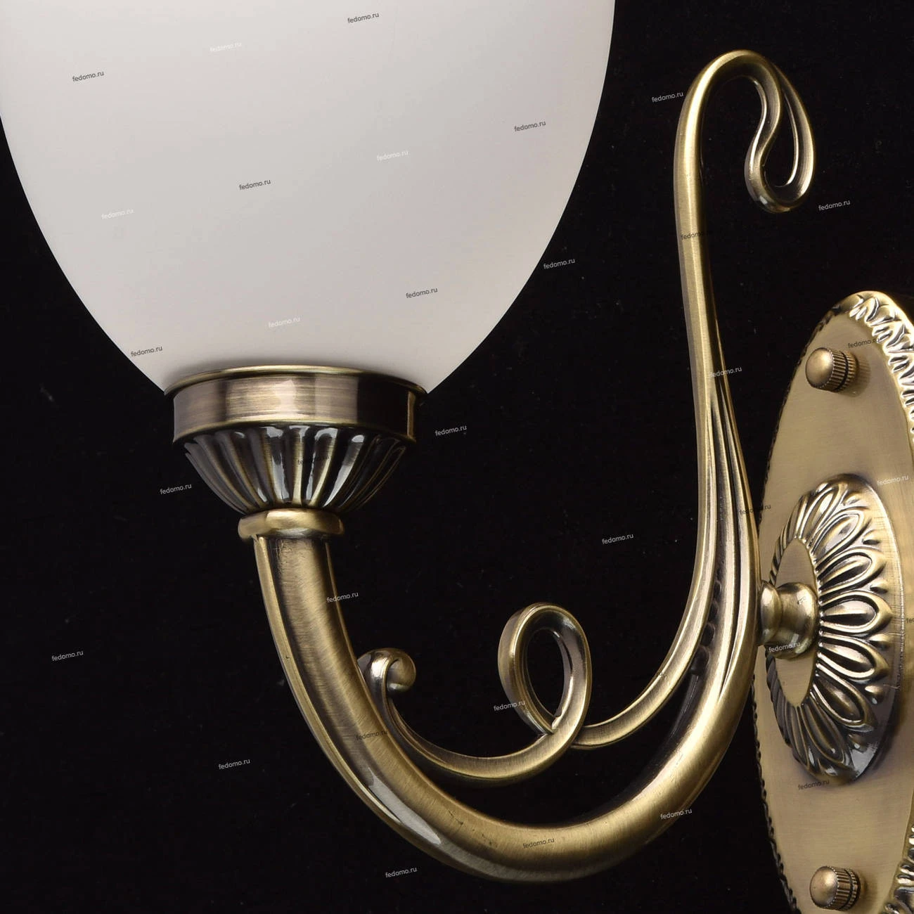 Металлическое основание цвета античной бронзы. Плафон - белое матовое стекло.