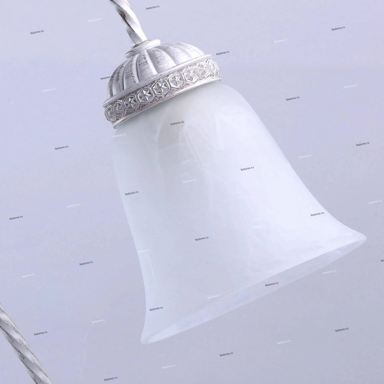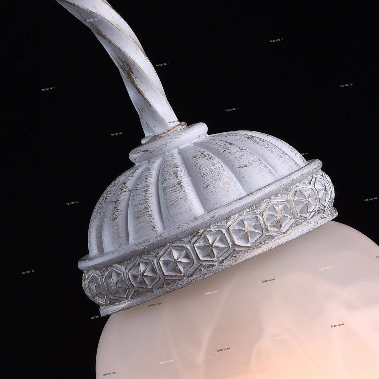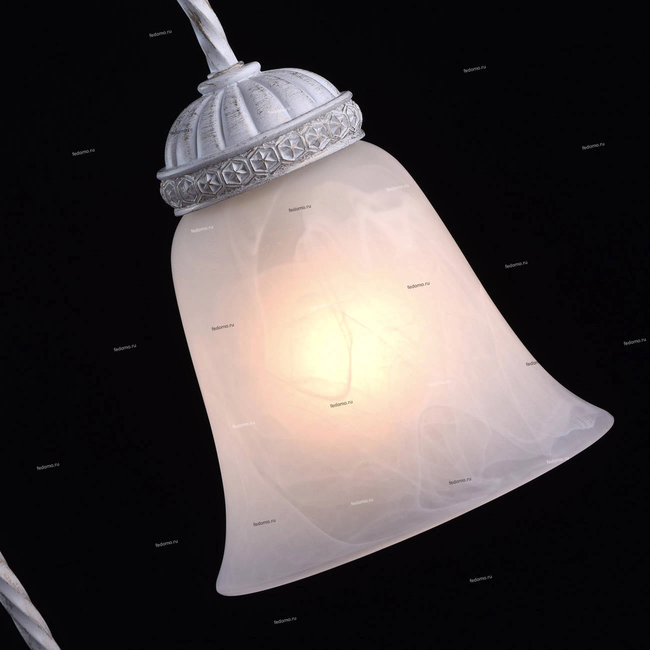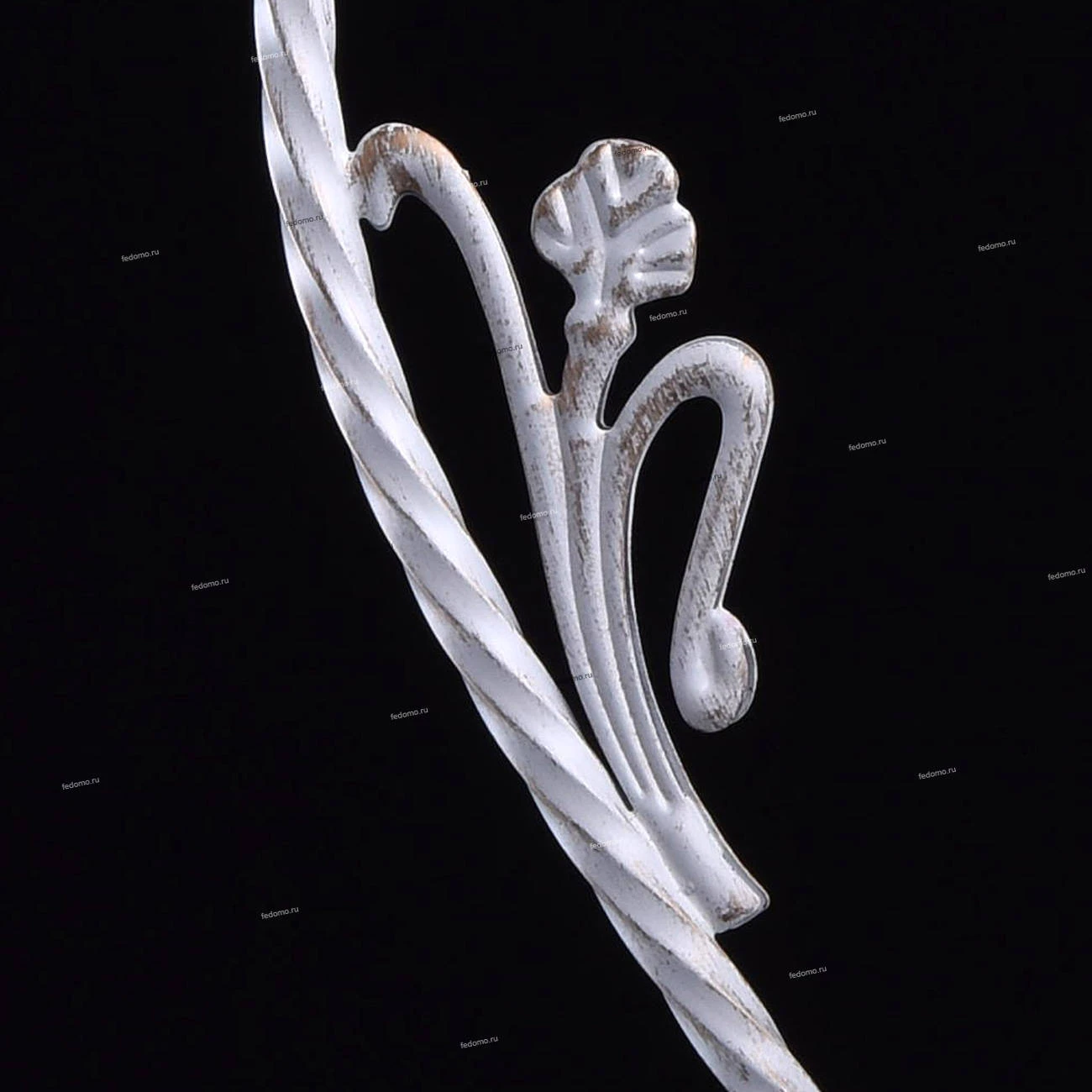 Арматура светильника выполнена из сплава железа и окрашена по технологии двойного окрашивания: основной защитный слой цвета золота, верхний декоративный слой белого цвета. Рожки выполнены по технологии твист, декоративные листики - по технологии прессо