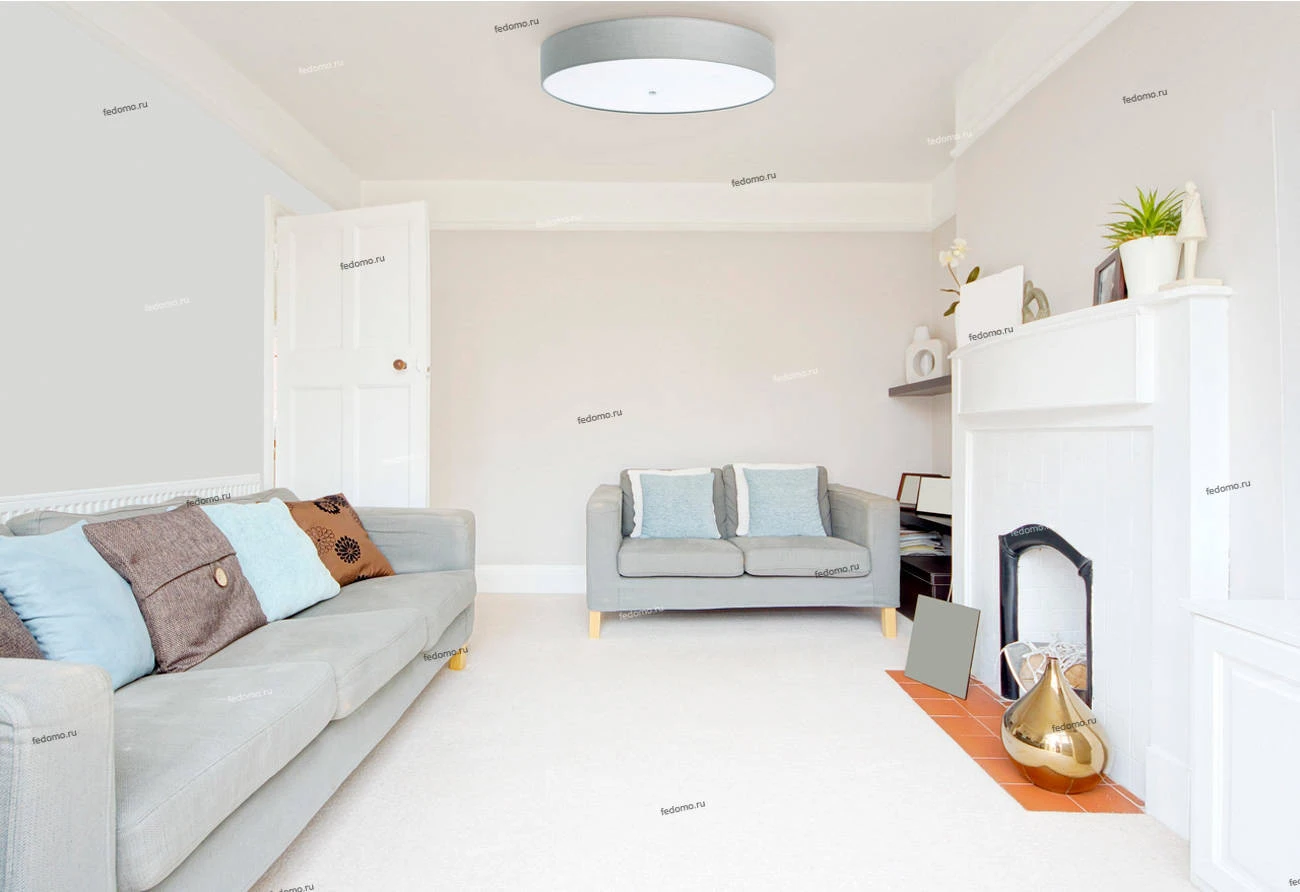 Стильный потолочный светильник из коллекции «Дафна» - идеальное решение для тех, кто хочет сэкономить пространство комнаты и подчеркнуть свой отменный вкус. Металлическое основание белого цвета дополнено серым текстильным абажуром. Округлые формы и спокой
