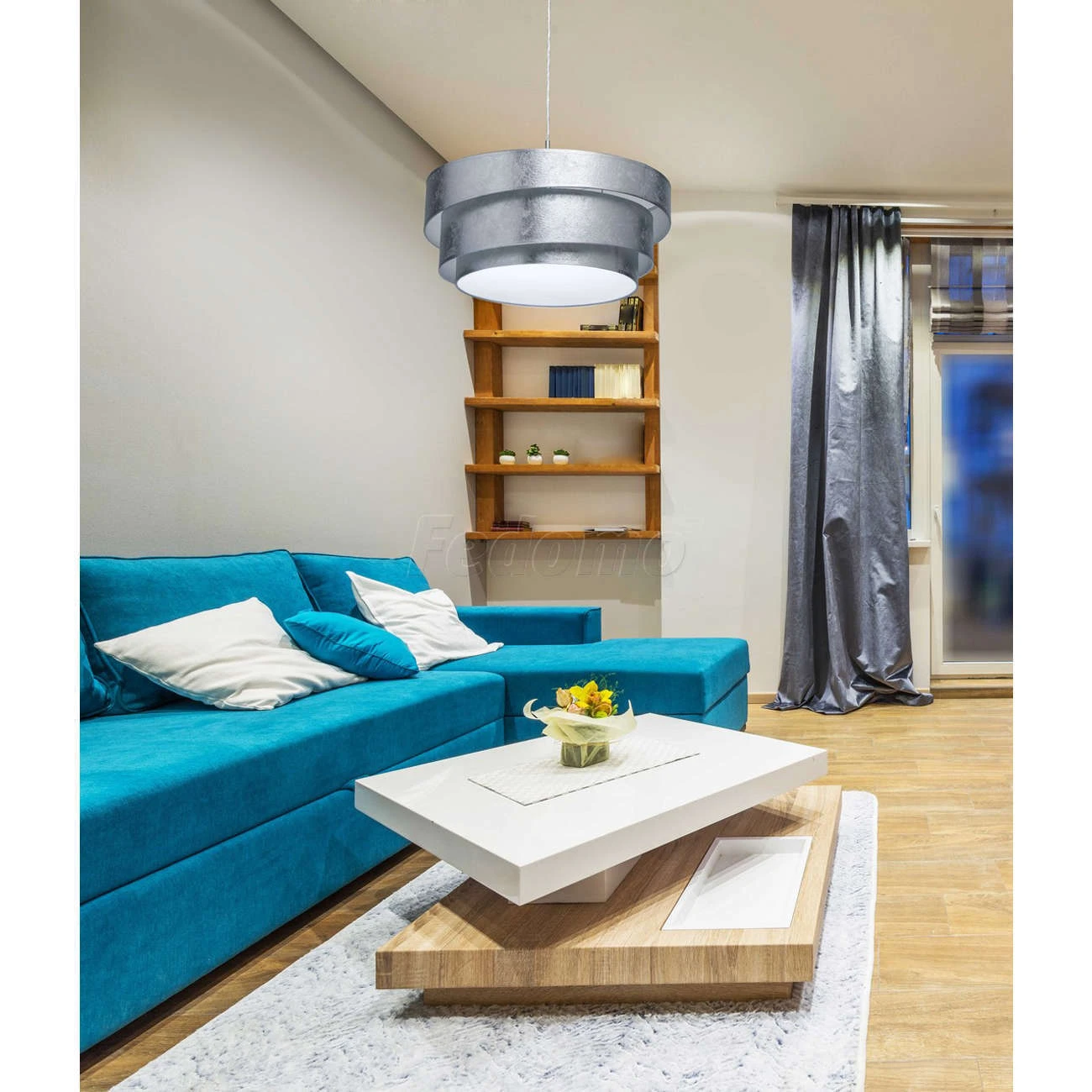 Эффектное золотое и серебряное покрытие абажуров выделяет светильник среди других подвесов.