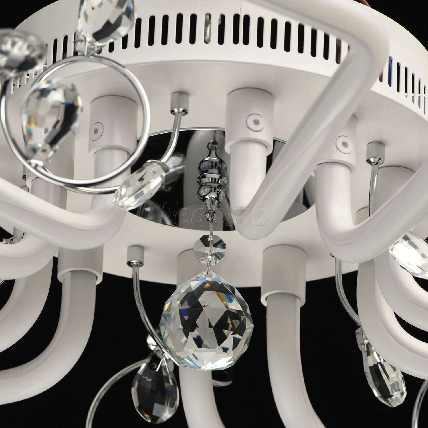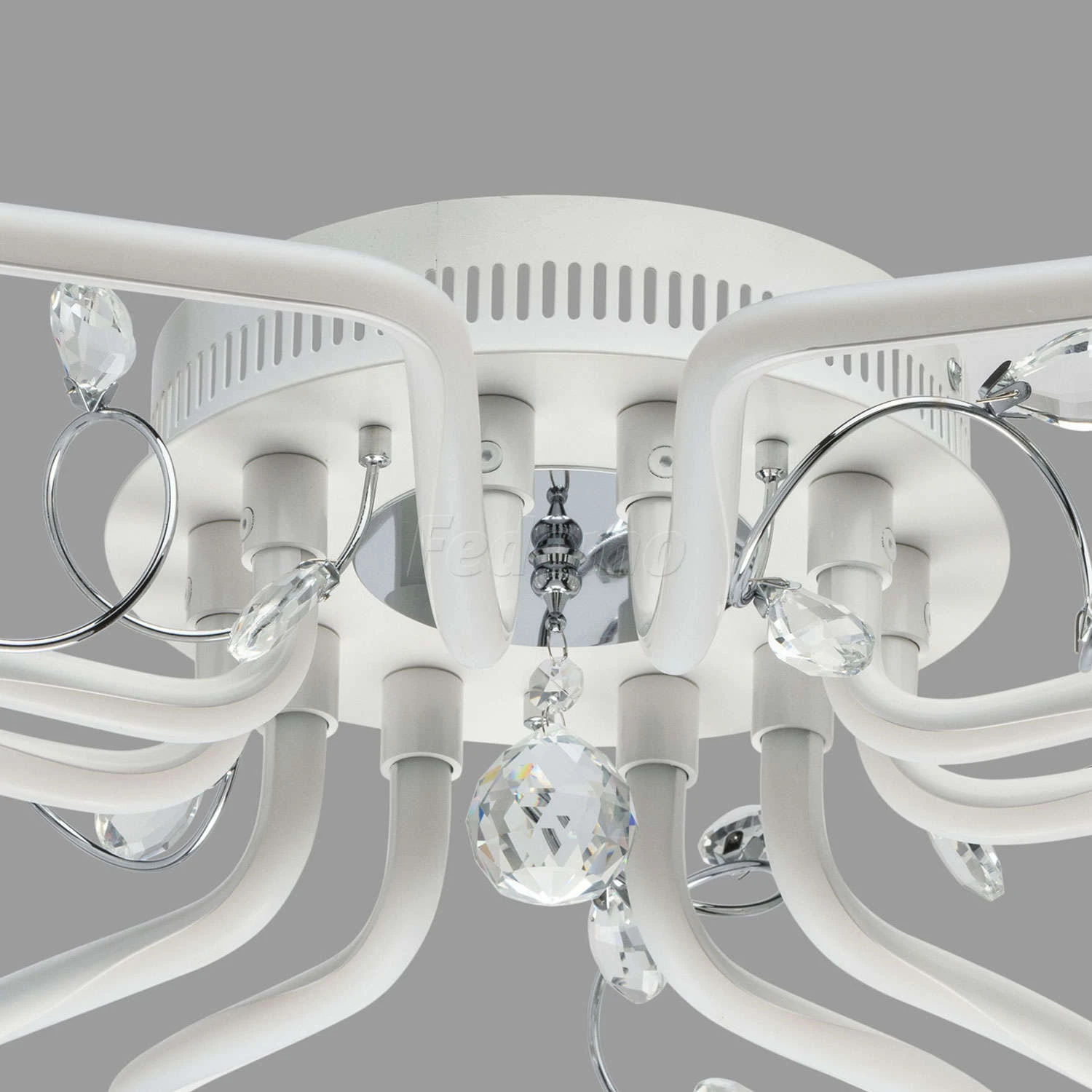Романтичная люстра из коллекции «Ивонна», выполненная в флористическом духе, идеально подойдет для комнат с невысоким потолком. Основание из металла выполнено в двух цветовых вариациях: хромированного и белого оттенка, каждый из которых практически нейтра