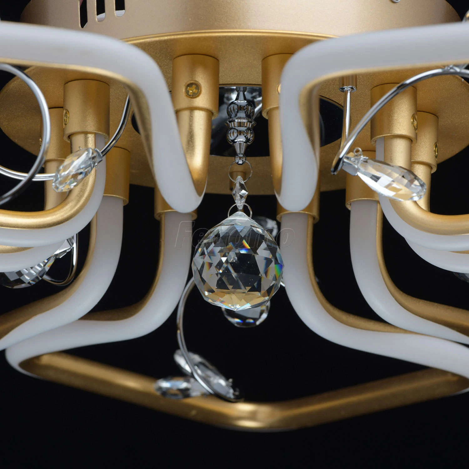 Романтичная люстра из коллекции «Ивонна», выполненная в флористическом духе, идеально подойдет для комнат с невысоким потолком. Основание из металла выполнено золотом цвете, который будет прекрасно смотреться в интерьерах с разным цветовым решением. По фо